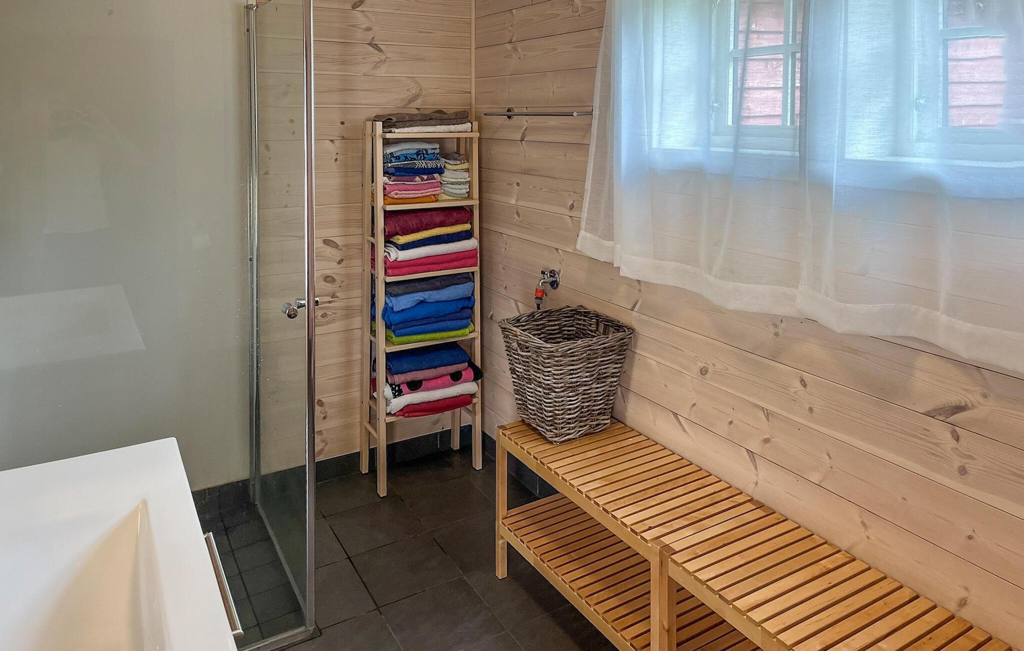 I dette hyggelige feriehus vil I blive mødt af en varm og indbydende atmosfære, så snart I træder ind i huset. Dette forstærkes yderligere af de velindrettede træelementer og den klassiske stil. Opholdsområdet lægger op til afslappende stunder med sine komfortable siddepladser og hyggelige pejs. Her kan I trække jer tilbage med en god bog eller nyde udsigten til den funklende sø gennem de store vinduer. Køkkenets rustikke charme passer flot ind i husets atmosfære. Her kan I hygge jer med madlavningen og derefter nyde jeres måltider i spiseområdet med en vidunderlig udsigt over søen.
