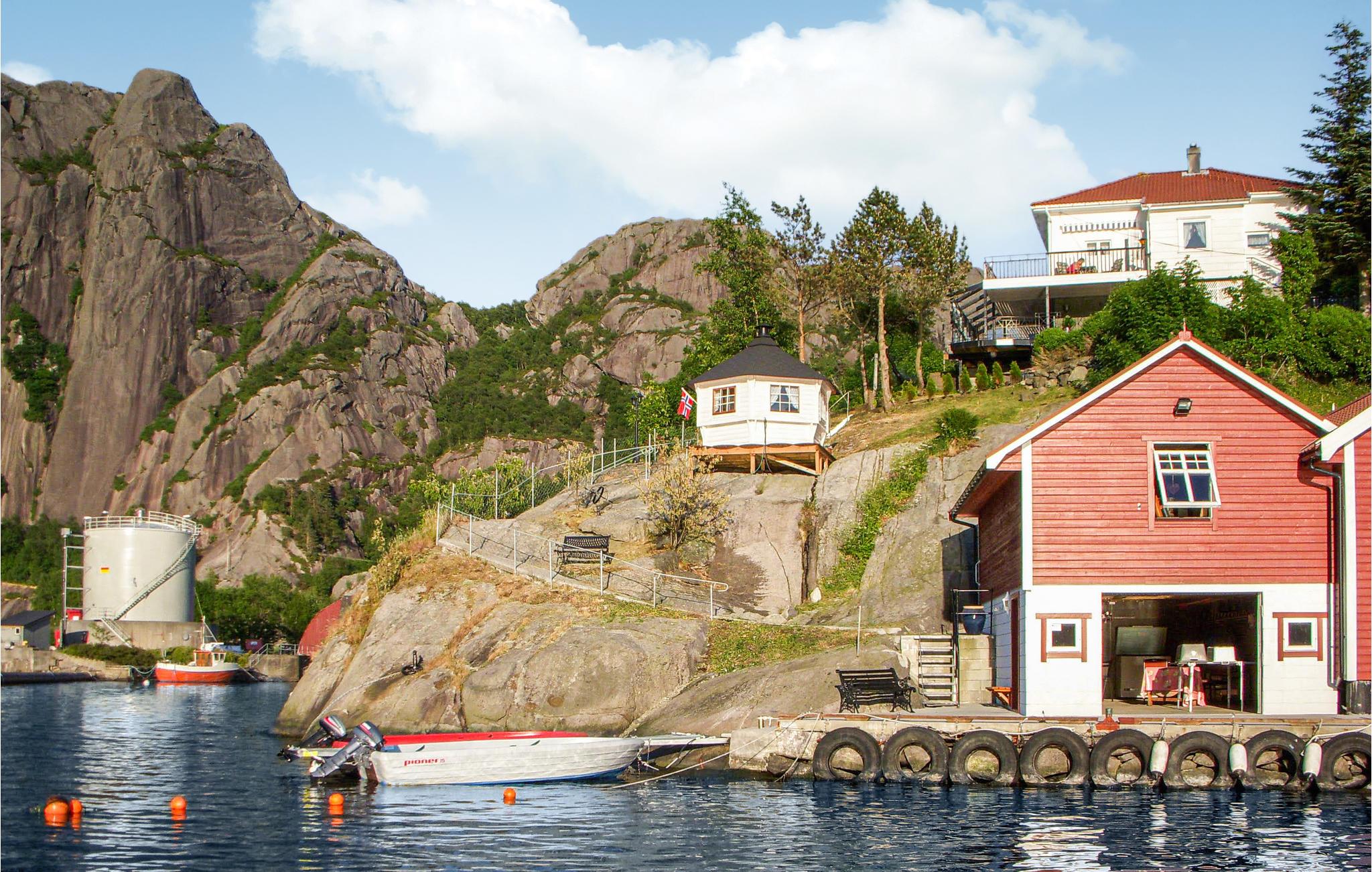 Den nærmeste by er Hauge i Dalane, 15 km væk, hvor I finder restauranter og supermarkeder. Huset ligger ikke langt fra fjorden, så der er kun 200 meter til en dejlig lokation, hvor I kan bade og fiske.