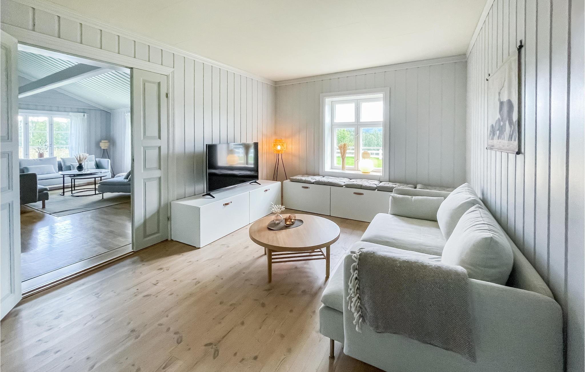 Skønt feriehus i herregård nær Koppang. Beliggende i hjertet af Stor-Elvdal, i provinsen Innlandet, er dette indbydende hus omgivet af skov og enge på "Nordstu Gård". Find jer godt til rette sammen i de lyse, charmerende møblerede værelser. Om aftenen inviterer køkkenbænken til en lang snak, eller I kan sætte jer ned i siddeområdet og nyde den hyggelige varme fra brændeovnen. På Nordstu bor en stor flok Angus-køer.