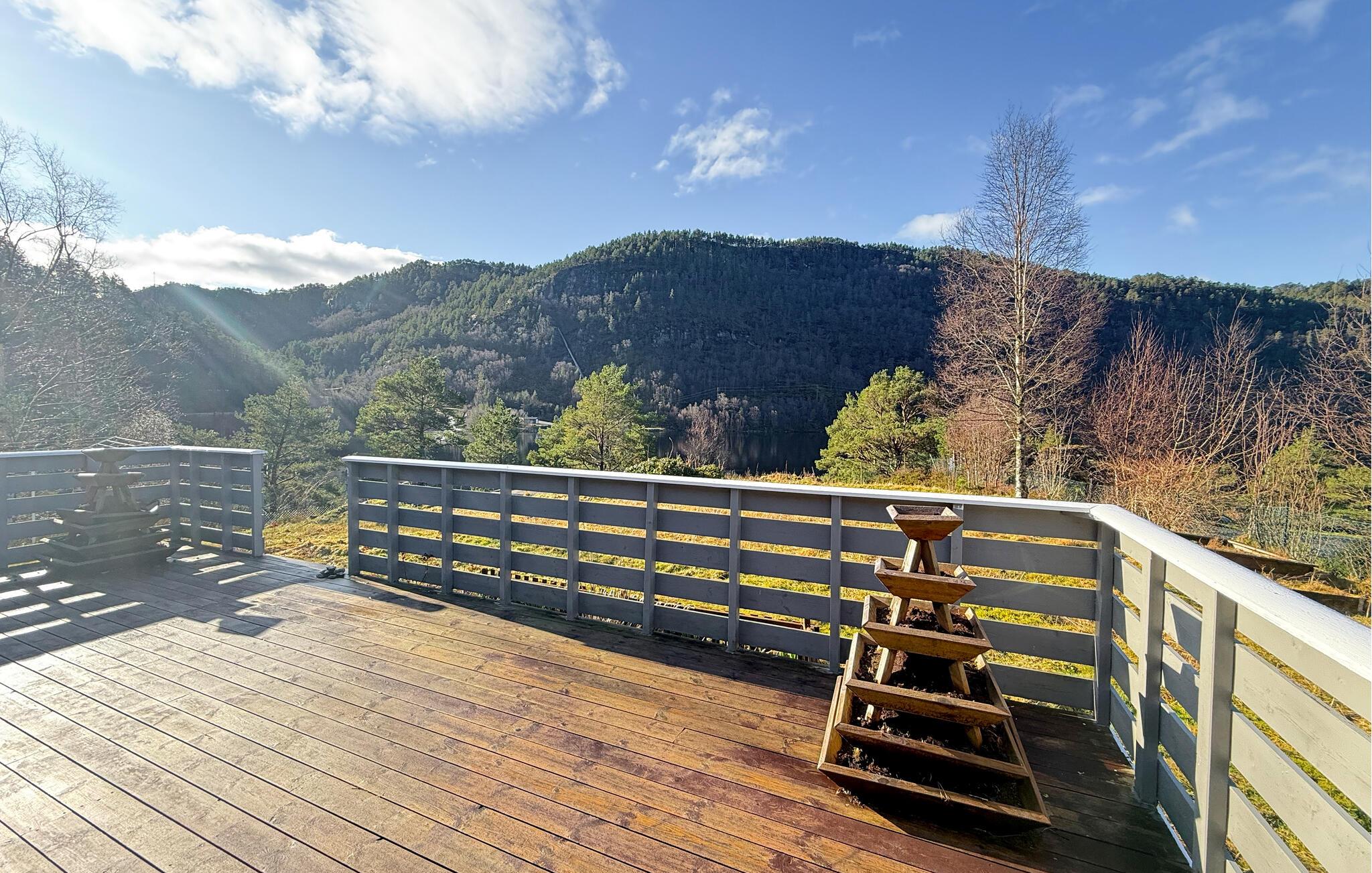 Træd ud på terrassen med jeres morgenkaffe og nyd den smukke udsigt over bjerglandskabet. Spis en afslappet morgenmad og slentre ned til vandet, hvor I kan svømme og fiske. Om aftenen kan I tænde op i grillen og tilberede et lækkert måltid til jer selv og familien med friskfanget fisk.