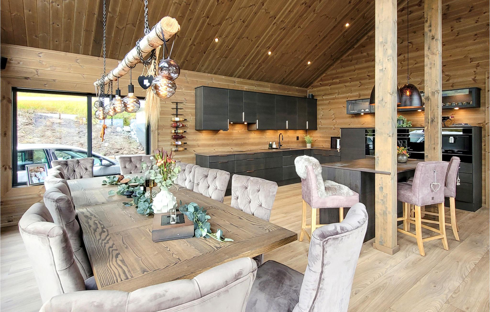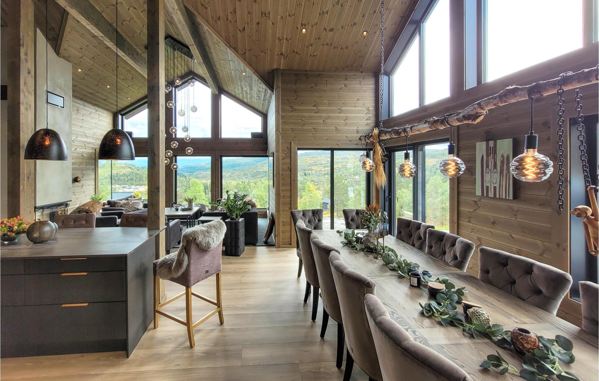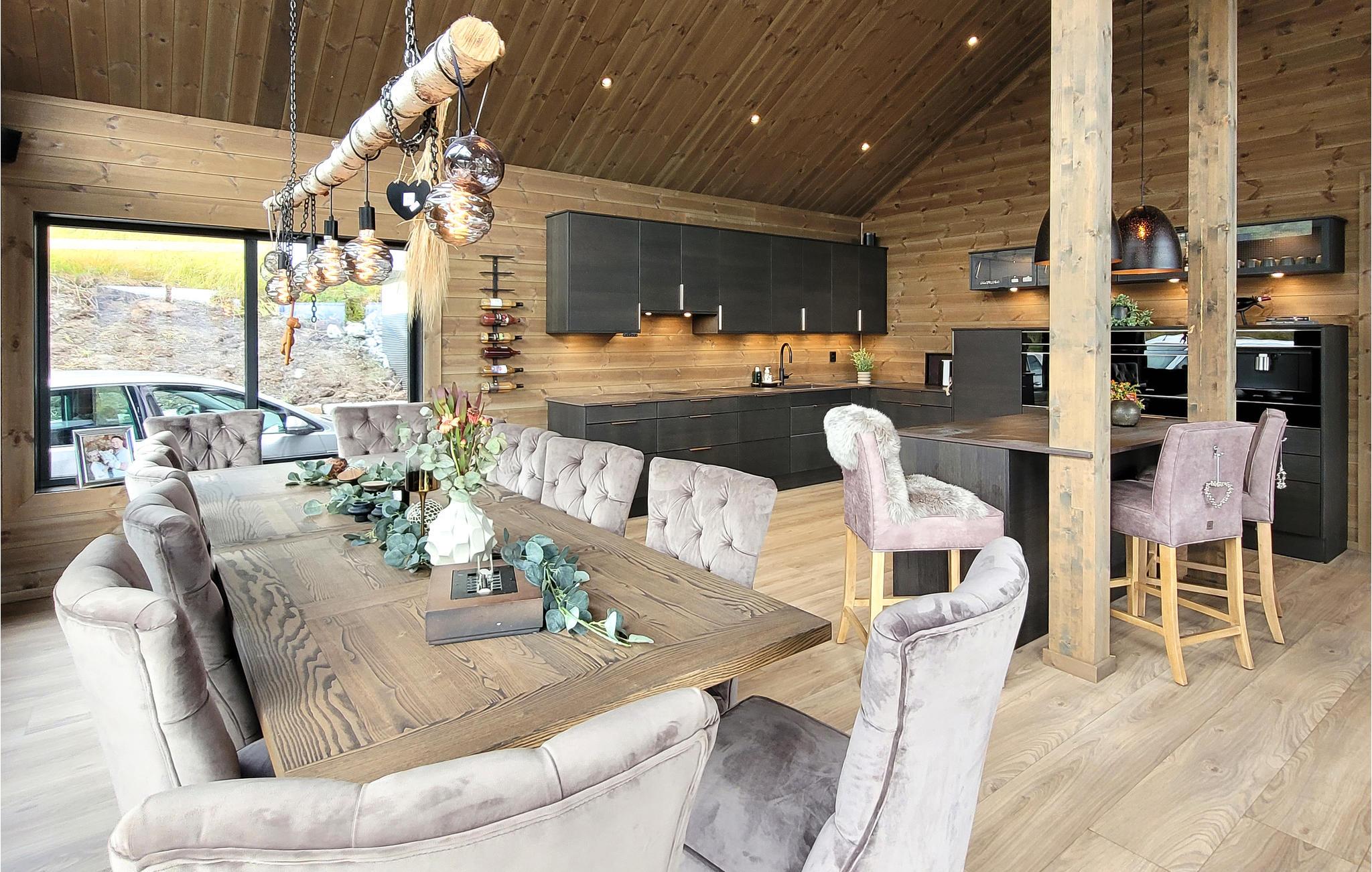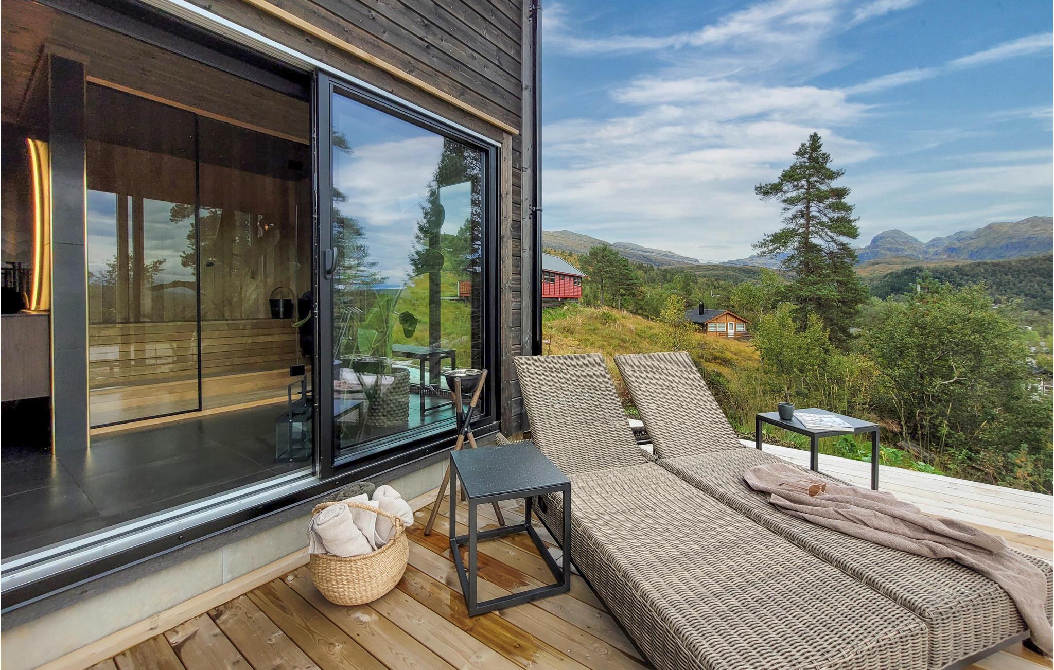 Dette eksklusive, rummelige feriehus med udendørs pool, whirlpool og sauna ved Kvamskogen byder jer velkommen. Her bor I i et hus som taget ud af et boligmagasin. Huset kombinerer det elegante, det moderne og det rustikke for at skabe et tidløst sted for rekreation og afslapning. De varme jordfarver er et blikfang i sig selv og skaber en behagelig atmosfære. Hold en sjov spilleaften ved det lange spisebord og lav uimodståelige søde sager sammen med jeres børn. Mens I laver mad i det veludstyrede køkken, kan børnene dykke ned i poolen. Læn jer tilbage i de komfortable loungemøbler på den skønne terrasse og nyd det næsten uvirkelige natursceneri. Slap af på liggestolen eller nip til en sundowner i whirlpoolen. Dette hus byder på optimal velvære.