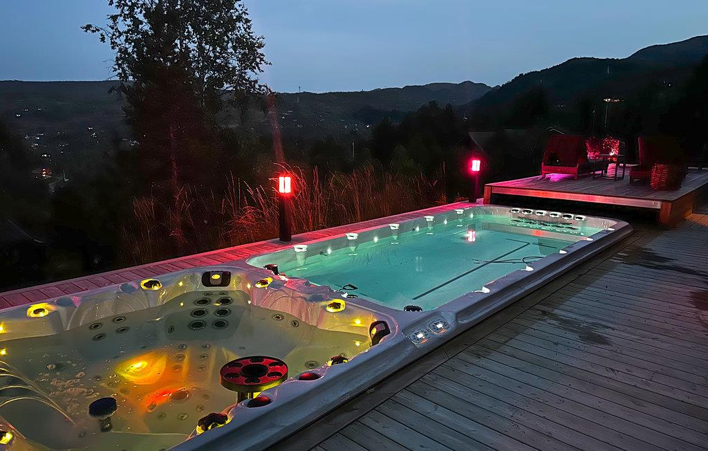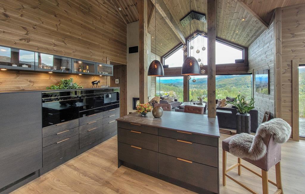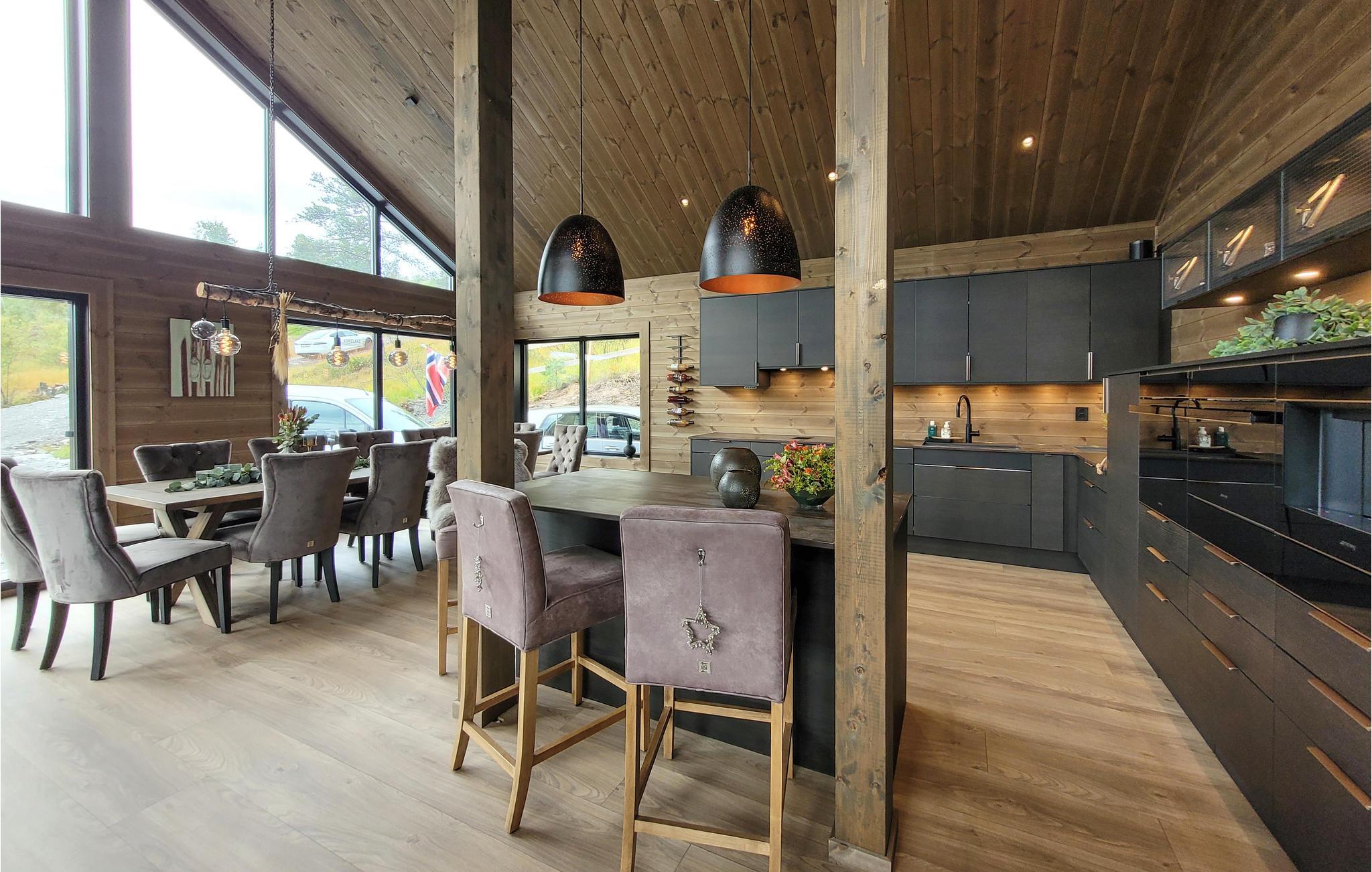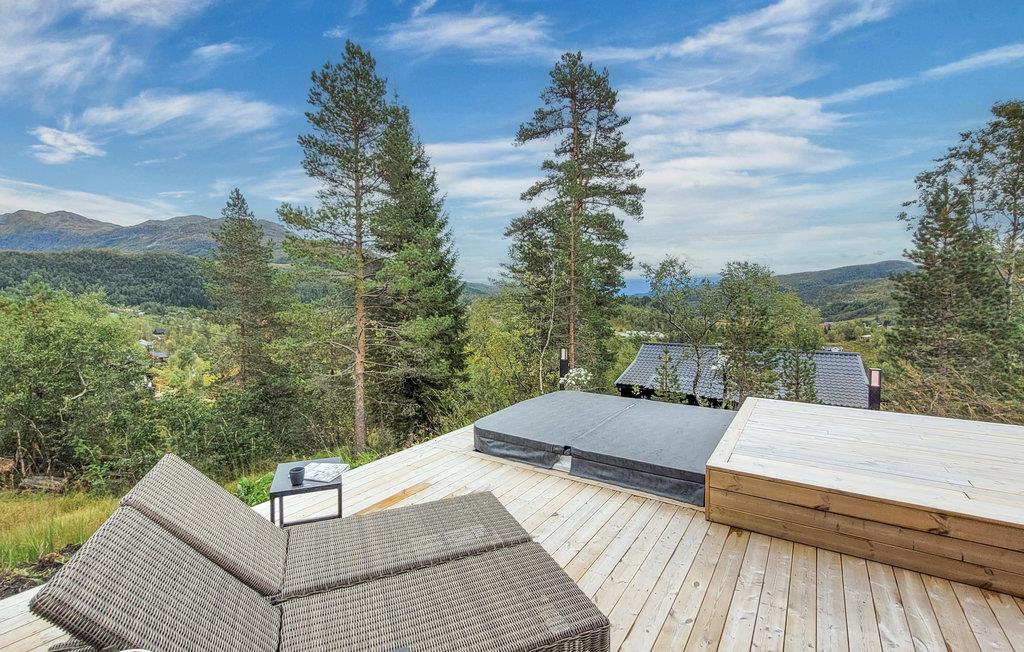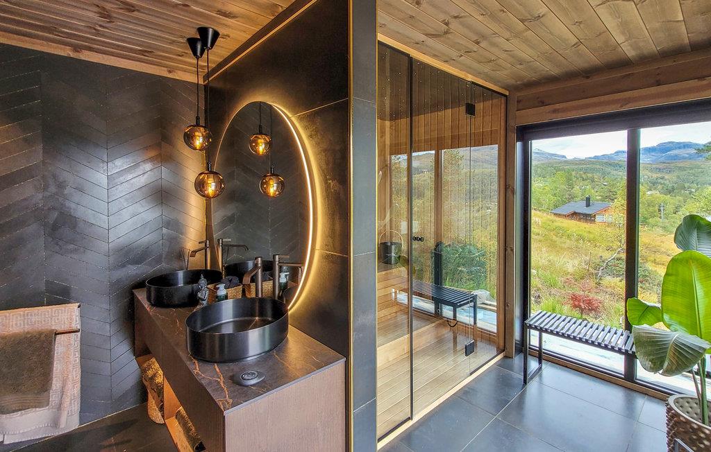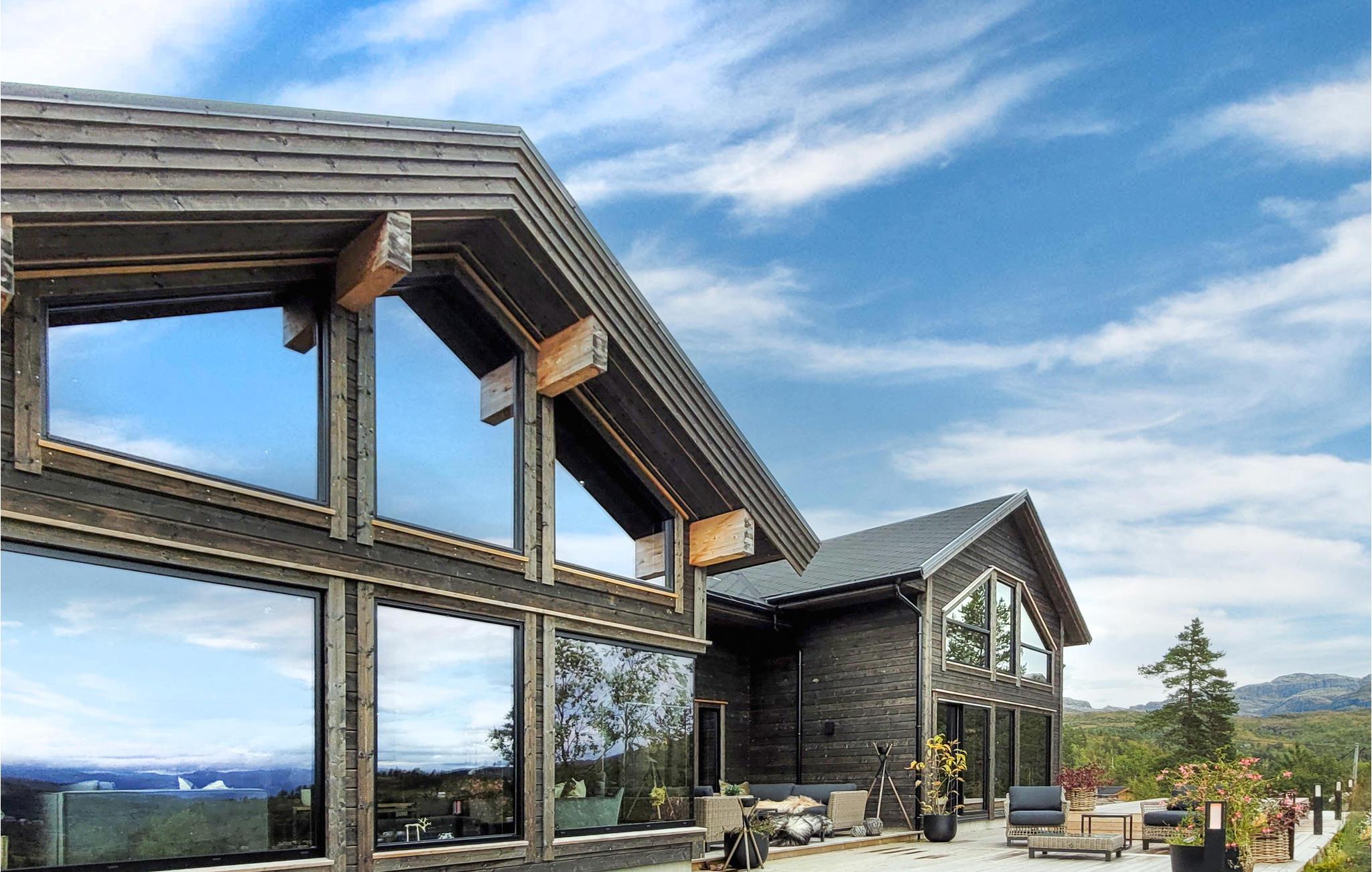 Dette eksklusive, rummelige feriehus med udendørs pool, whirlpool og sauna ved Kvamskogen byder jer velkommen. Her bor I i et hus som taget ud af et boligmagasin. Huset kombinerer det elegante, det moderne og det rustikke for at skabe et tidløst sted for rekreation og afslapning. De varme jordfarver er et blikfang i sig selv og skaber en behagelig atmosfære. Hold en sjov spilleaften ved det lange spisebord og lav uimodståelige søde sager sammen med jeres børn. Mens I laver mad i det veludstyrede køkken, kan børnene dykke ned i poolen. Læn jer tilbage i de komfortable loungemøbler på den skønne terrasse og nyd det næsten uvirkelige natursceneri. Slap af på liggestolen eller nip til en sundowner i whirlpoolen. Dette hus byder på optimal velvære.
