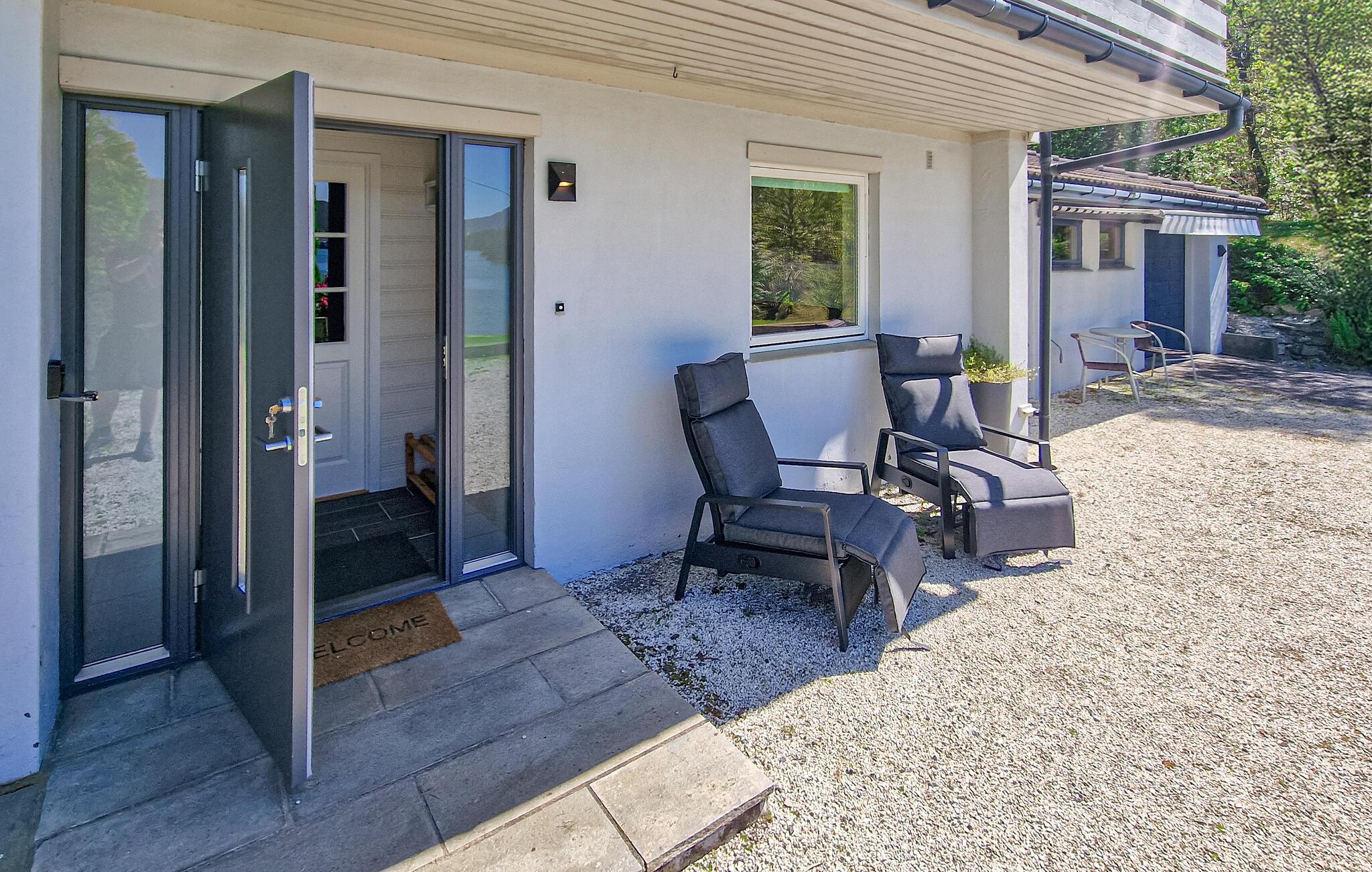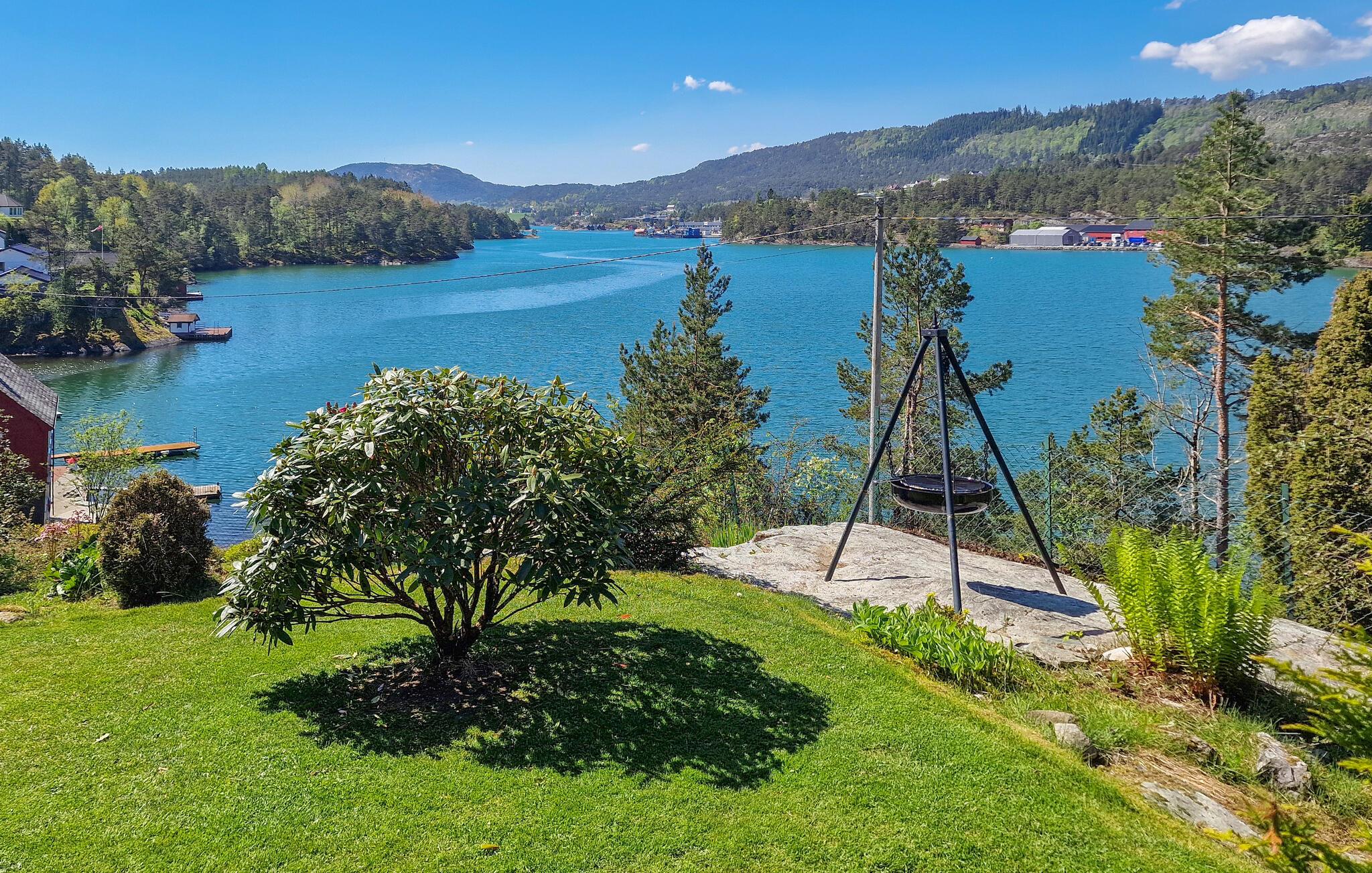 Tilbring en afslappende ferie i jeres feriehus i Aasen, i den idylliske kommune Kvinnherad, som byder på en betagende udsigt over den funklende fjord. Det store velanlagte udendørsområde lægger op til at slappe af og have det rart. Find jer godt til rette i den store have og se bådene på fjorden. Se, om I fanger noget direkte fra jeres egen anløbsbro. Det fredelige miljø og de mange forskellige fisk tilbyder optimale forhold for lystfiskere. I kan også tage på lange vandreture på de godt afmærkede stier i området og opleve det varierede landskab. Uanset om det er i fladlandet eller på bjergene, finder I altid den rigtige rute her.
