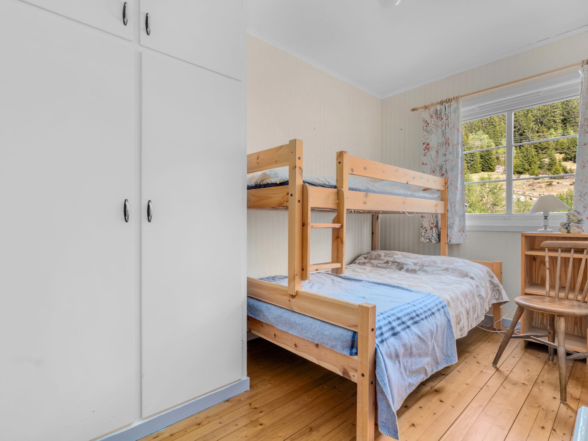 House "Olavbu", 467 m a.s.l.. 8 km from the centre of Ljosland, 93 km from the centre of Mandal, 99 km from the centre of Kristiansand, 150 m from the lake, 10 km from the skiing area. Private: property 1'800 m2 (fenced), meadow. Terrace (16 m2), garden furniture, barbecue. Available: boat. Parking on the premises. Shop 14 km, bus stop "Sveindal" 33 km, railway station "Audnedal" 58 km, ferry "Kristiansand" 99 km, sandy beach 700 m. Slopes 10 km, cross country ski track 8 km. Well-known ski regions can easily be reached: Ljosland 10 km. Please note: fishing [permit required].