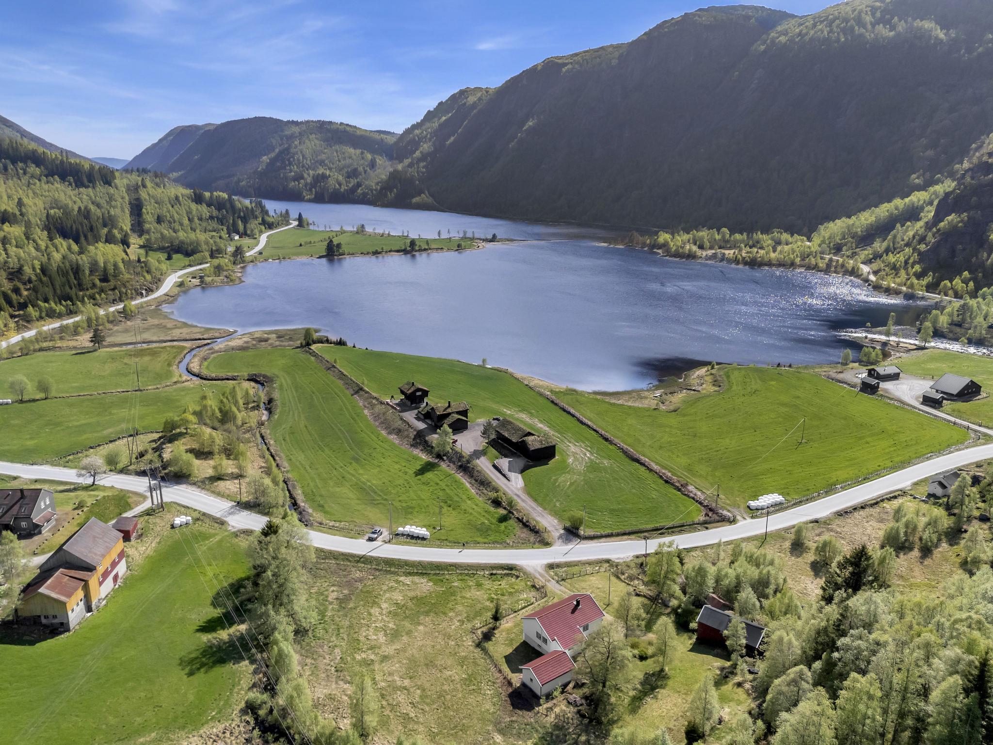 "Olavbu", 4-room house 85 m2. Rustic furnishings: living/dining room with Scandinavian wood stove, dining table, satellite TV and DVD. Exit to the terrace. 1 room with 1 double bed (180 cm, length 200 cm). 1 room with 1 bed (90 cm, length 200 cm). 1 room with 3 sleeping facilities. Kitchen (4 hot plates, oven, dishwasher, microwave, freezer, electric coffee machine). Shower/WC. Electric heating. View of the lake. Facilities: washing machine, children's high chair, baby cot. Internet (WiFi, free). Please note: non-smoking house. Smoke alarm, fire extinguisher. 924531169
