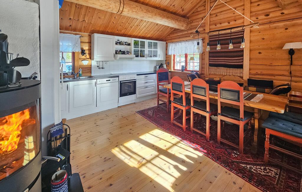 Der er lagt op til en ferie med fred, ro og masser af flot natur i dette charmerende træhus, hvor I får godt med kvadratmeter og sovepladser nok til en ferie med den udvidede familie. Indretningen fremtræder virkelig varmt og hyggeligt med træpaneler, komfortable møbler og en brændeovn, der skaber ekstra varme og atmosfære på de lidt køligere dage. Køkkenet er veludstyret, så gør madlavningen til et sjovt fællesprojekt og nyd måltiderne ved spisebordet. Senere kan I trække ind i de bløde gemakker og finde jer godt til rette i sofaerne med brætspil eller en god film.