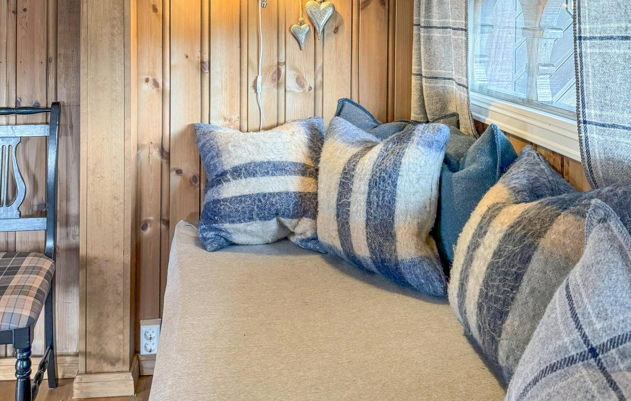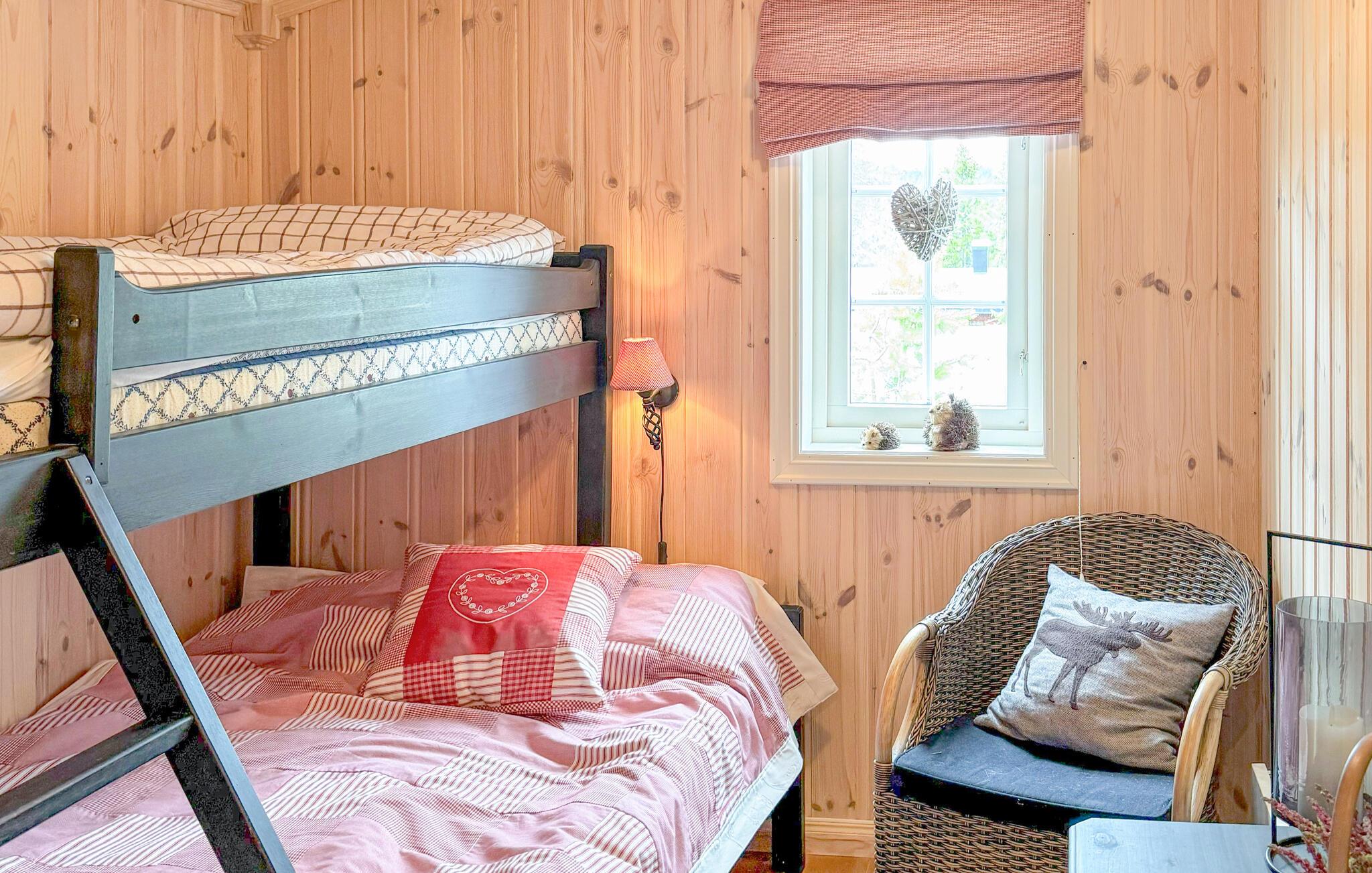 Beliggende i et fortryllende landskab, der lægger op til uforglemmelige naturoplevelser året rundt, byder denne rummelige hytte jer velkommen med rustik charme. Glæd jer til hyggelige madlavningsaftener i det åbne køkken og solide måltider ved det indbydende spisebord. Forkæl jer selv med hyggelige stunder i saunaen og lyt til den knitrende pejs, mens I har stimulerende samtaler i den rummelige stue.