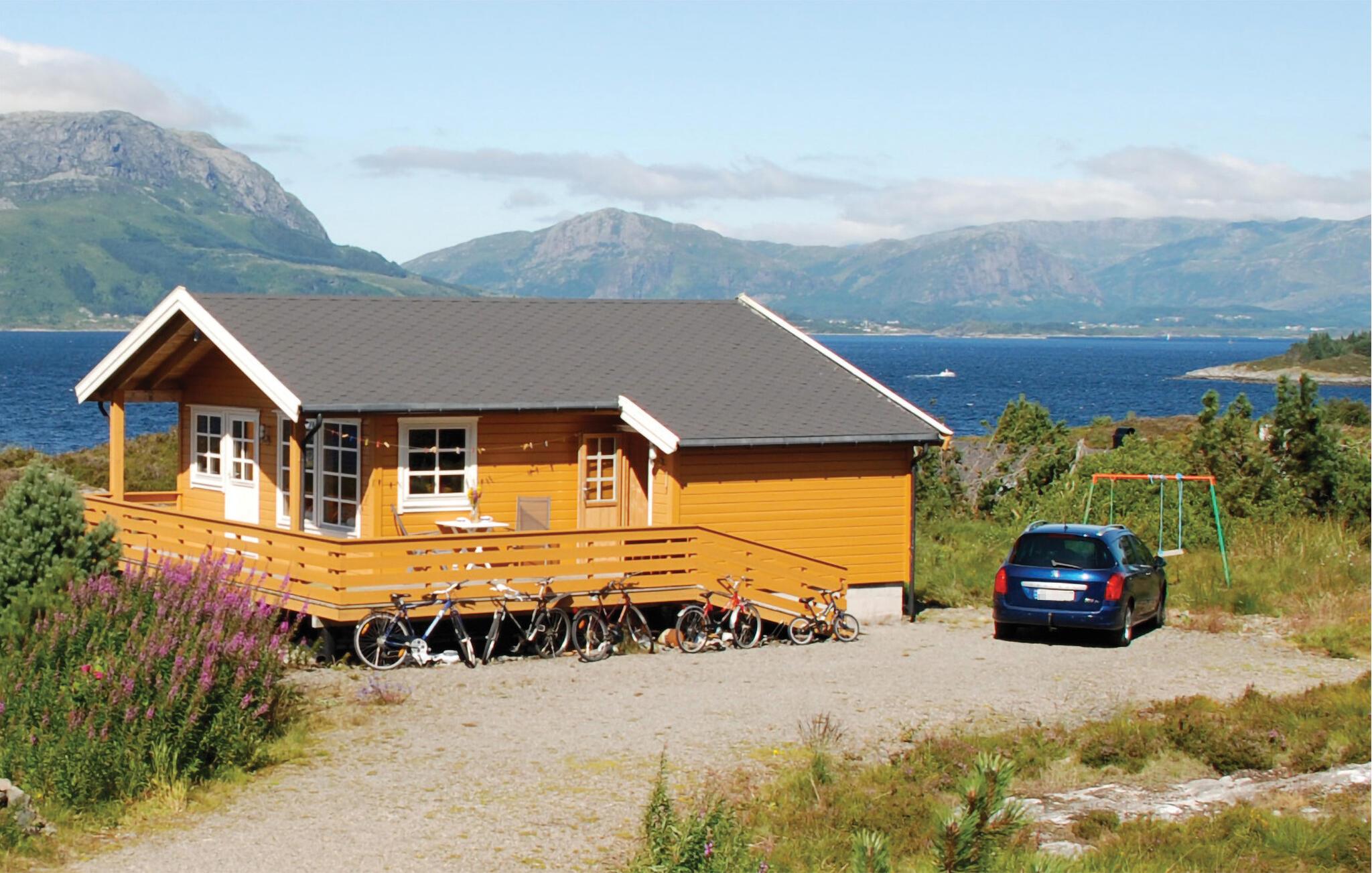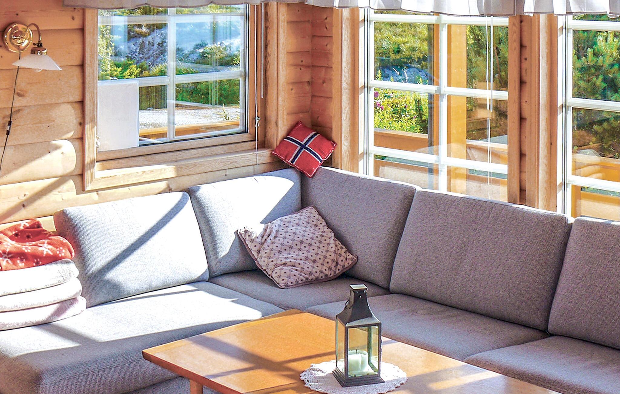 Udenfor er der en rummelig terrasse med siddepladser, hvorfra man har en imponerende udsigt over den omkringliggende natur. Slap af i den friske luft, lyt til naturens lyde eller nyd blot omgivelserne. Takket være husets høje beliggenhed har I en vid udsigt over fjordlandskabet. Der er også adskillige vandrestier i det omkringliggende område, som I kan udforske til fods eller på cykel.