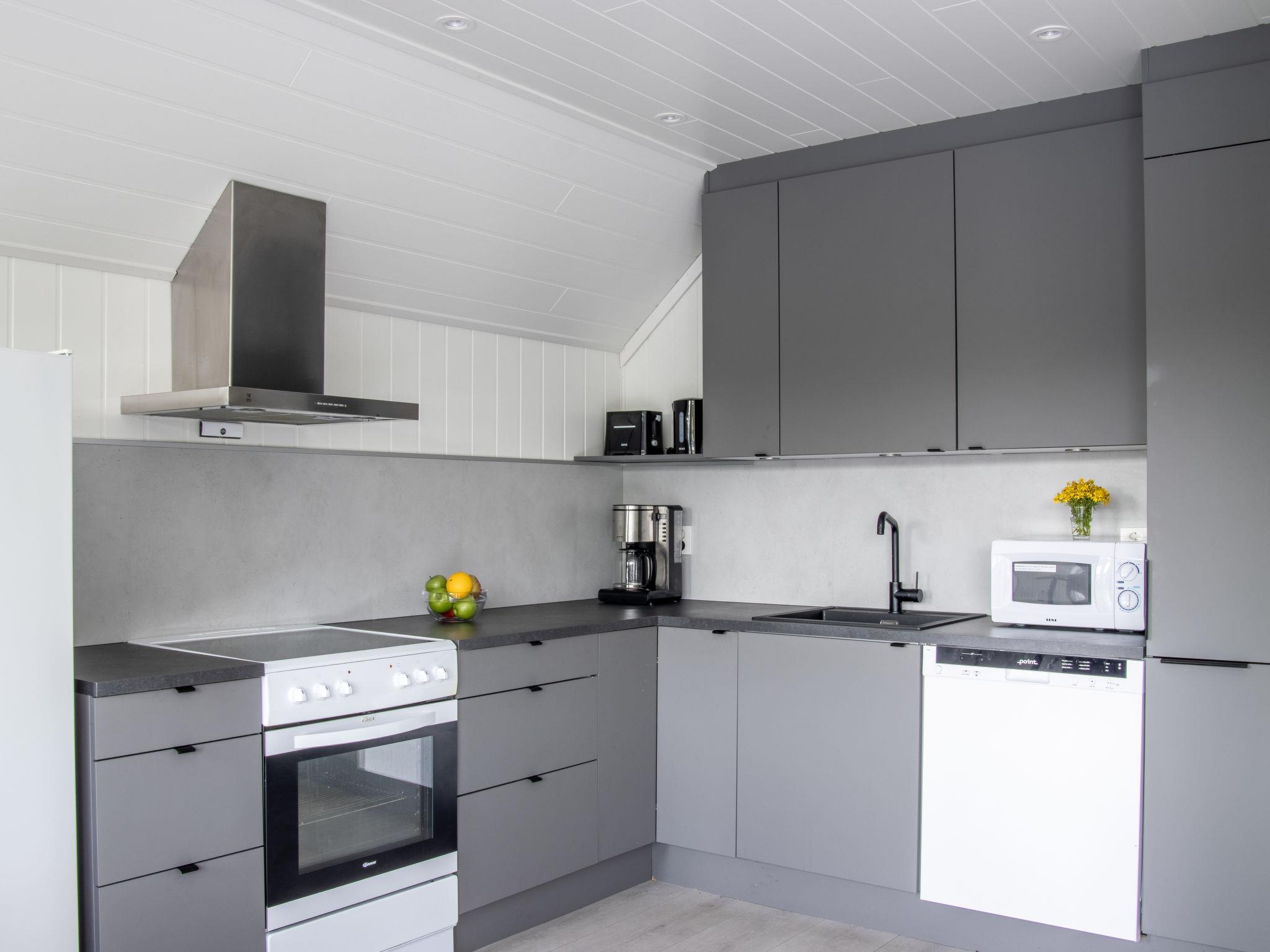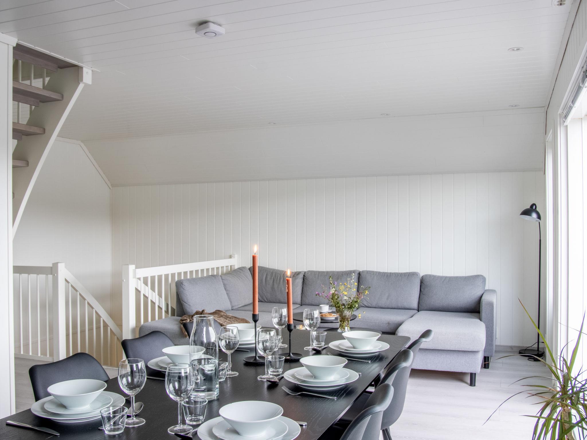 "Brosme", 7-room semi-detached house 100 m2 on 3 levels. Modern and cosy furnishings: living room with cable TV (flat screen), radio and CD-player. Exit to the terrace. 2 rooms, each room with 1 bed (90 cm, length 200 cm). Shower/WC. Underfloor heating. Upper floor: living/dining room with dining table. Exit to the balcony. 1 room with 2 beds (90 cm, length 200 cm). Open kitchen (oven, dishwasher, 4 ceramic glass hob hotplates, toaster, kettle, microwave, freezer, electric coffee machine). Shower/WC. Electric heating. 2nd upper floor: 2 rooms with sloping ceilings, each room with 2 beds (90 cm, length 200 cm). Wooden floors. Balcony 12 m2, terrace roofed. Terrace furniture, barbecue (portable). Beautiful view of the sea. Facilities: washing machine, dryer, children's high chair, baby cot. Internet (WiFi, free). Please note: non-smoking house. Smoke alarm, fire extinguisher. Freezer approx. 300 l. 924531169