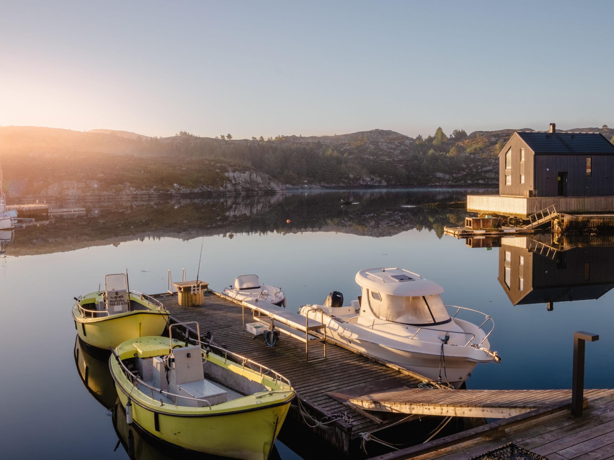 Beautiful certified fishing house "Torsk", 3 m a.s.l., built in 2020. In the district of Kallavåg 2 km from the centre of Langevåg, 34 km from the centre of Haugesund, 47 km from the centre of Leirvik, 5 m from the sea, direct access to the beach, in a cul-de-sac. For shared use: natural state property 5 ha. Barbecue house, bathing jetty bathing place, fish-processing table. Motor boat (on order), parking on the premises. Shop 2 km, bus stop "Kåso" 2 km, railway station "Stavanger" 117 km, ferry "Stavanger" 117 km, sandy beach 15 m (small). Fishing possibilities 5 m. Nearby attractions: Espevær 4 km, Vikingmuseum Avaldsnes 40 km. The house is located directly next to the sea in a very popular fishing area.