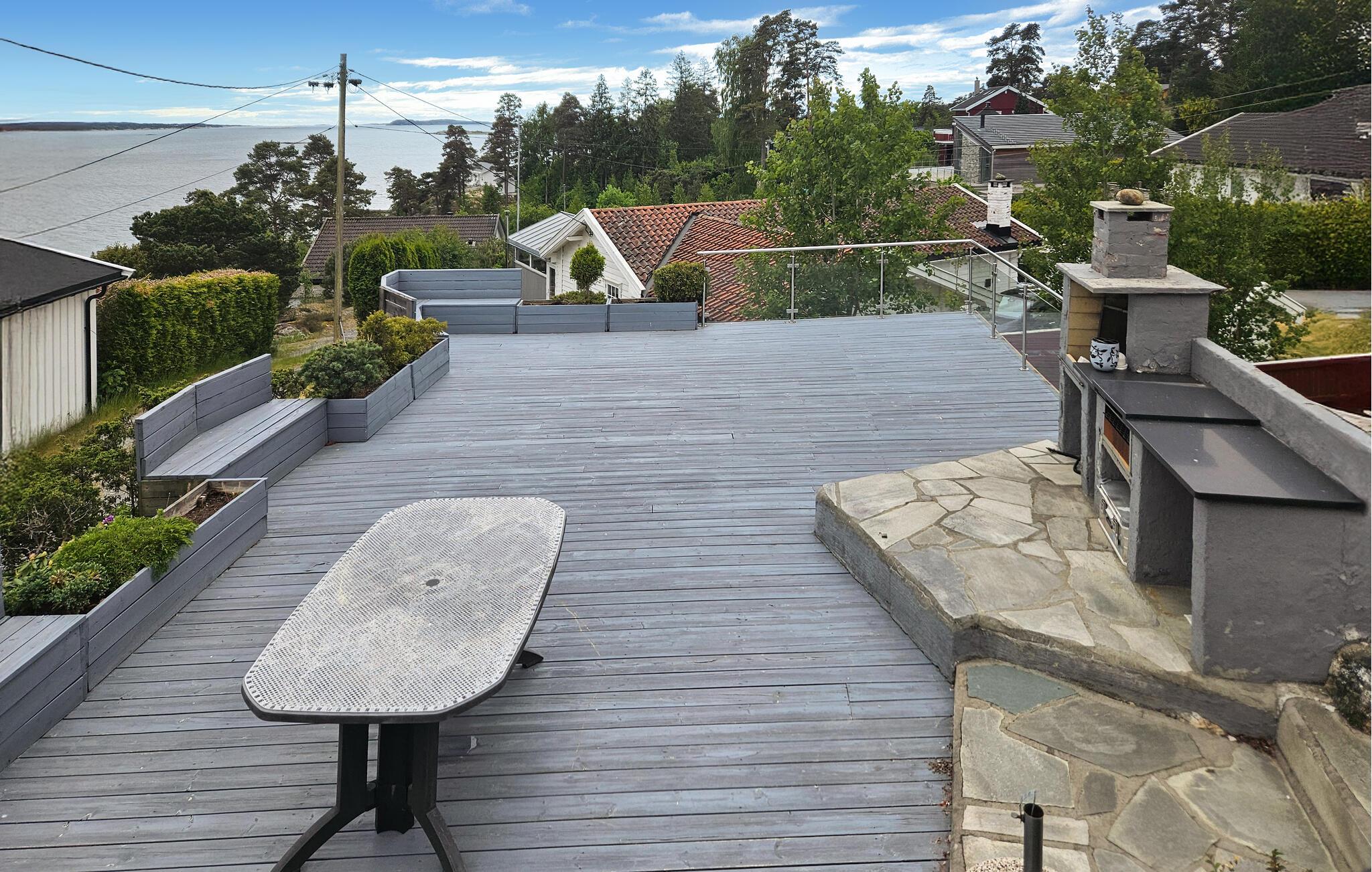 Udnyt den store terrasse i flere niveauer, der er designet til sommerdage med et integreret udendørs køkkenområde og komfortable siddepladser. Solbad, grill under åben himmel eller afslut aftenen med udsigt over bugten. En kærligt vedligeholdt have og beskyttet adgang til ejendommen sikrer en privat atmosfære.