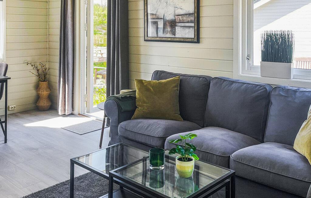Dette indbydende og praktiske hus inviterer jer til en afslappende ferie. Masser af træ, en komfortabel sofa og gennemtænkte detaljer skaber en hyggelig atmosfære, hvor I kan læse eller lytte til musik. Tilbered lækre måltider i det moderne køkken og nyd dem med udsigt over fjorden og de omkringliggende bjerge.