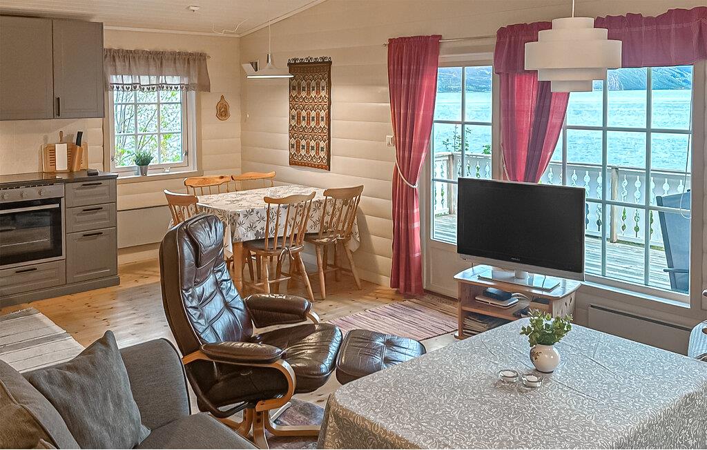Feriehus med panoramaudsigt over Sognefjorden og de majestætiske omgivende fjelde. På feriehusets sydvendte terrasser kan udsigten og morgenmaden nydes samtidig. Dette hjørne af Norge er der mange dejlige udflugtsmål. 300 m til den private bådebro, hvor der ligger både klar til en tur ud på fjorden. En 25 HK bådmotor kan også lejes. Lej på med fører til længere ture ud på det åbne hav, hvor de store fisk venter. Pris aftales med husets ejer. Her kan I nyde feriedagene ugenert og i rolige omgivelser, ikke langt fra fjorden hvor I kan bade og fiske og omgivet af de fantastiske fjelde. Nærmeste nabo: N21044 – 30 m.