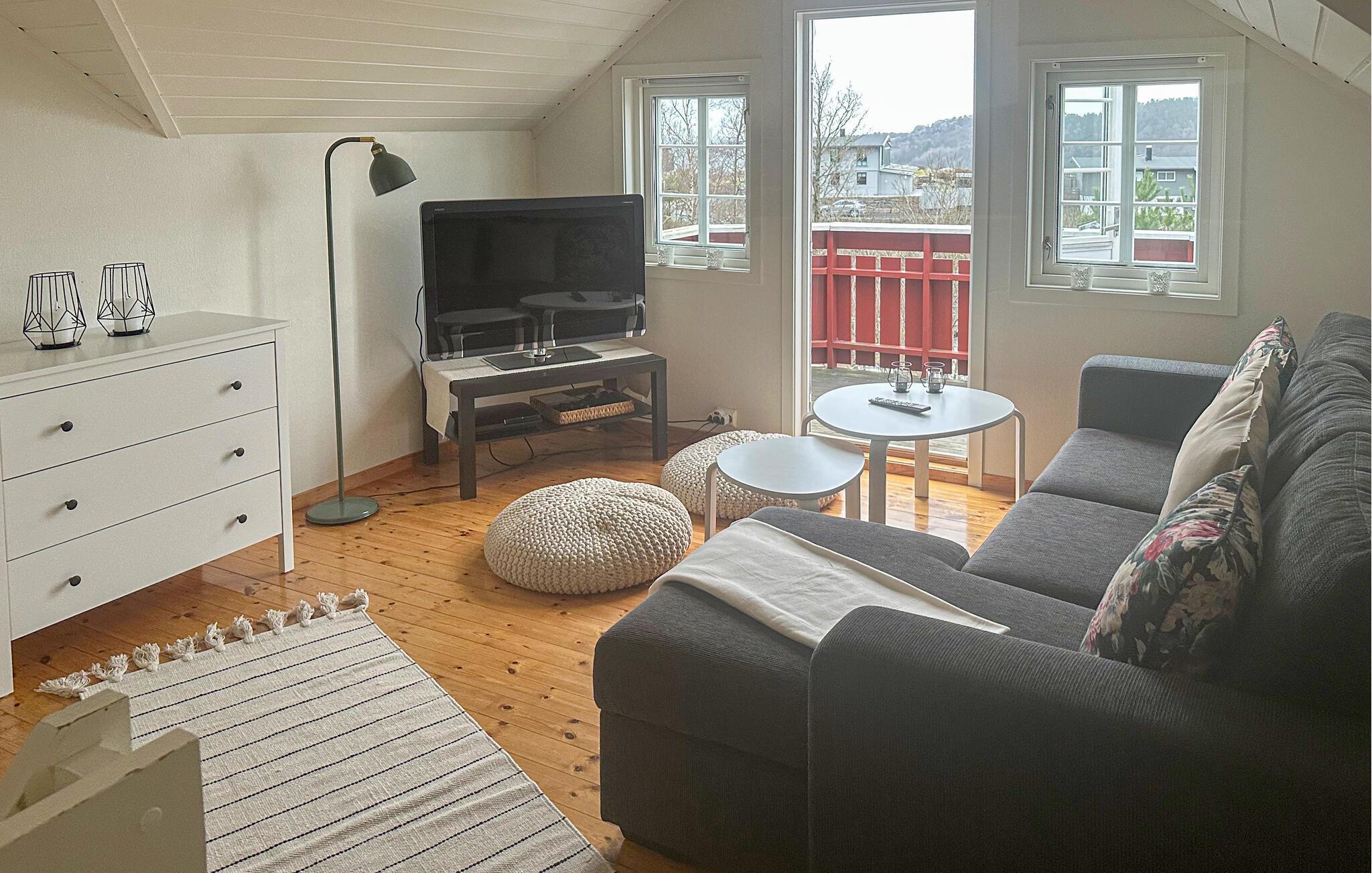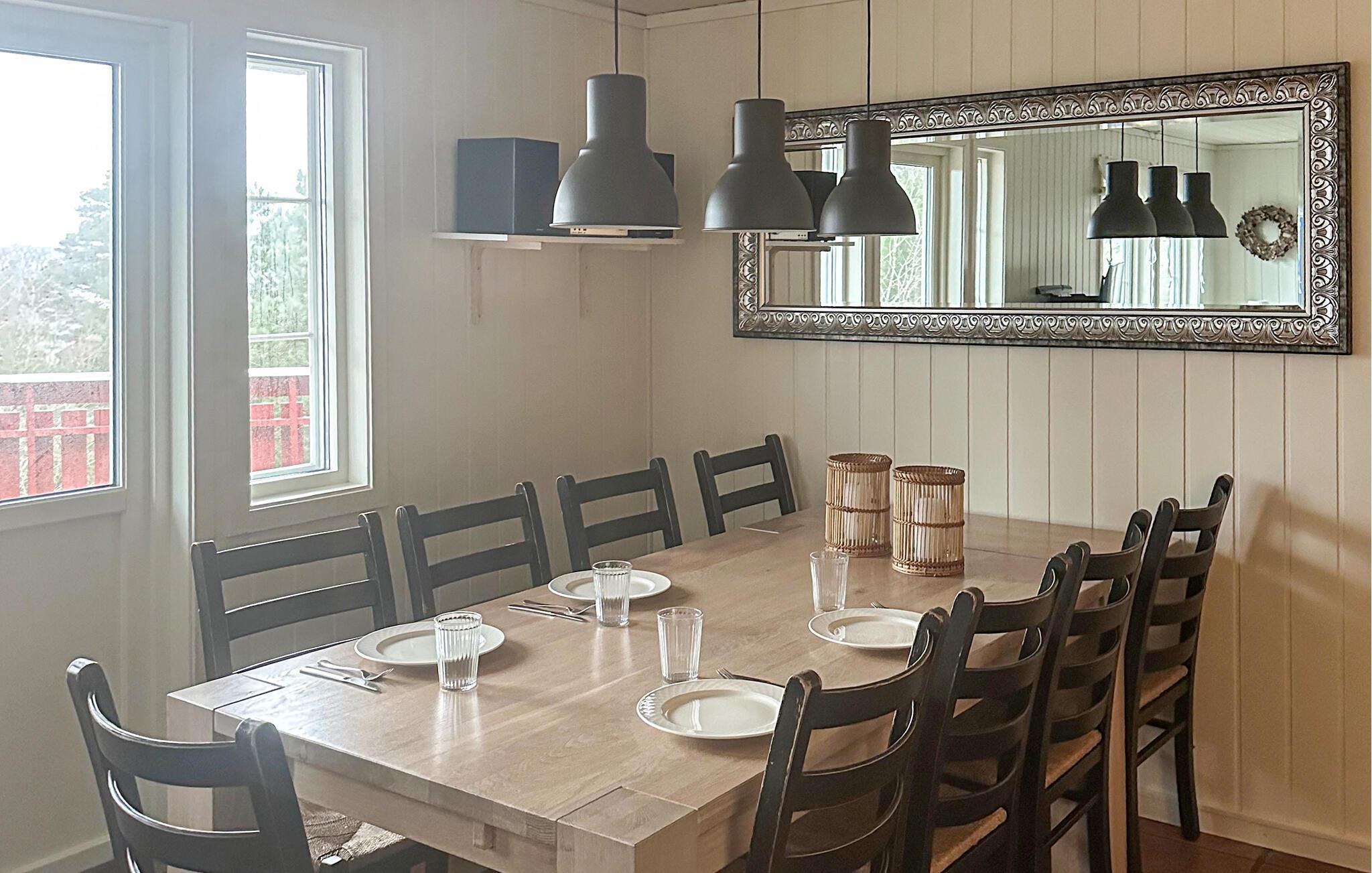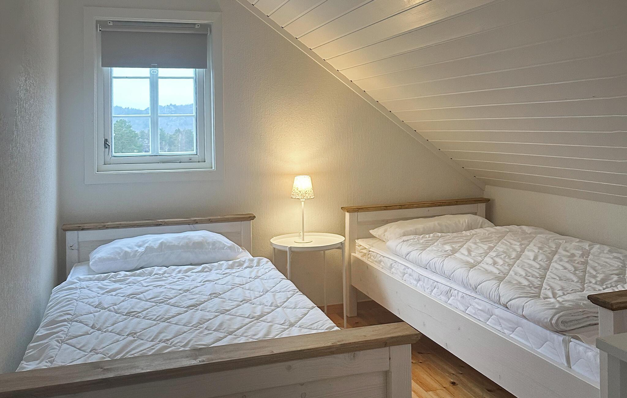 Imponerende feriehus med flot beliggenhed i nærheden av Lindesnes, fastlands-Norges sydligste punkt. Feriehuset ligger på en bakke, med flot udsigt over omgivelser. Det ligger ikke langt fra vandet, så begynd dagen med en frisk svømmetur – eller stå op sammen med fiskene og prøv lykken med fiskestangen. Her kan I virkelig læne jer tilbage og bare nyde ferien 100 %. Omegnen omkring Lindesnes har meget at byde på. Besøg Lindesnes Fyr som i dag er et museum. Gå en tur op i fyren og nyd udsigten over havet, besøg galleriet, museumsbutikken og cafeen. Den lille bygd Vigeland er også interessant. Her kan I se flere værker af den kendt norske kunstner Gustav Vigeland.