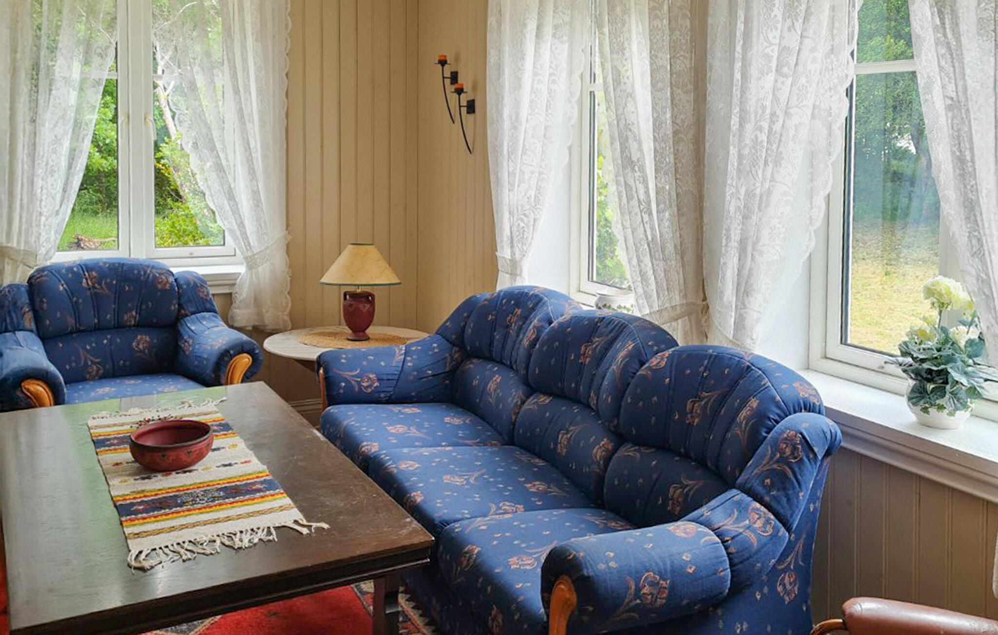 Dette hyggelige hus har alt, hvad I skal bruge til en problemfri ferie. Varmt træ, komfortable polstrede lænestole og gennemtænkte detaljer gør stuen til et sted, hvor I hurtigt kan slappe af. Slap af, mens I snakker eller tilbered lækre måltider til jer selv og familien i det praktiske køkken.