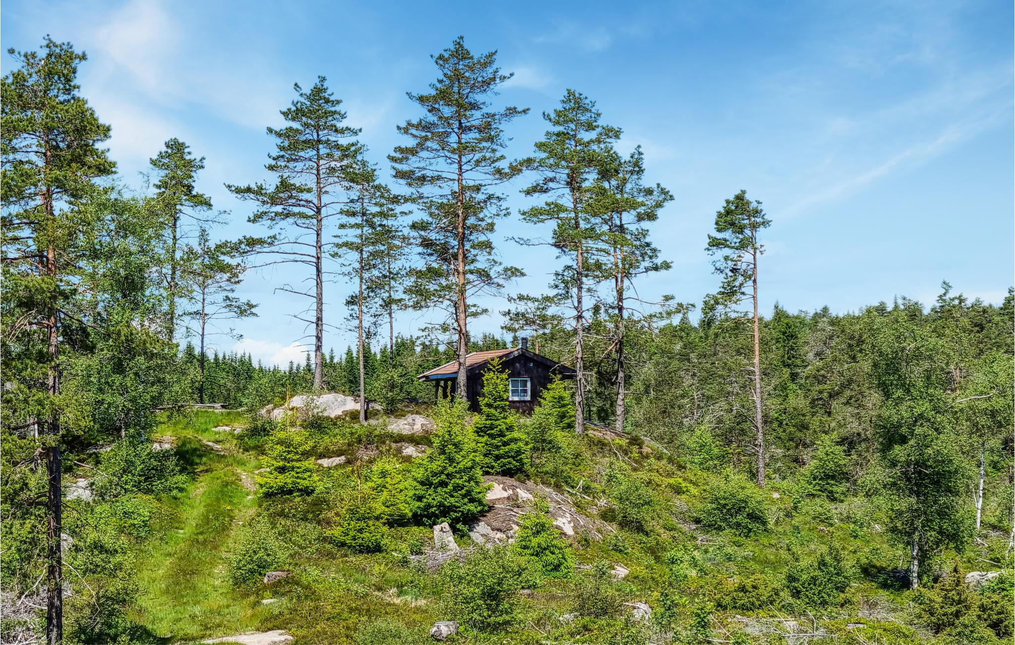 Der er et jagthytte på grunden (den brune hytte på billedet), som kan benyttes efter aftale med ejeren.