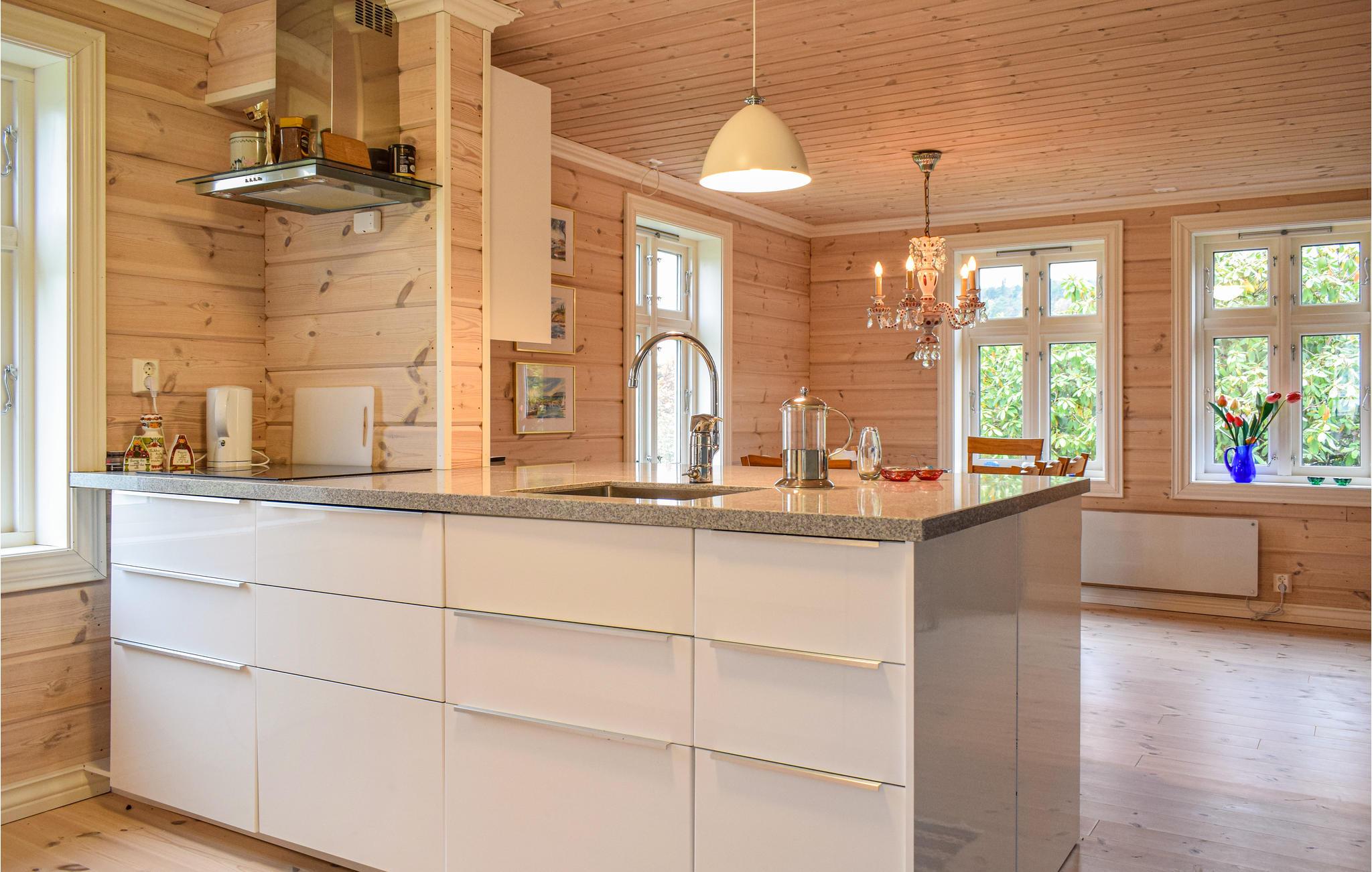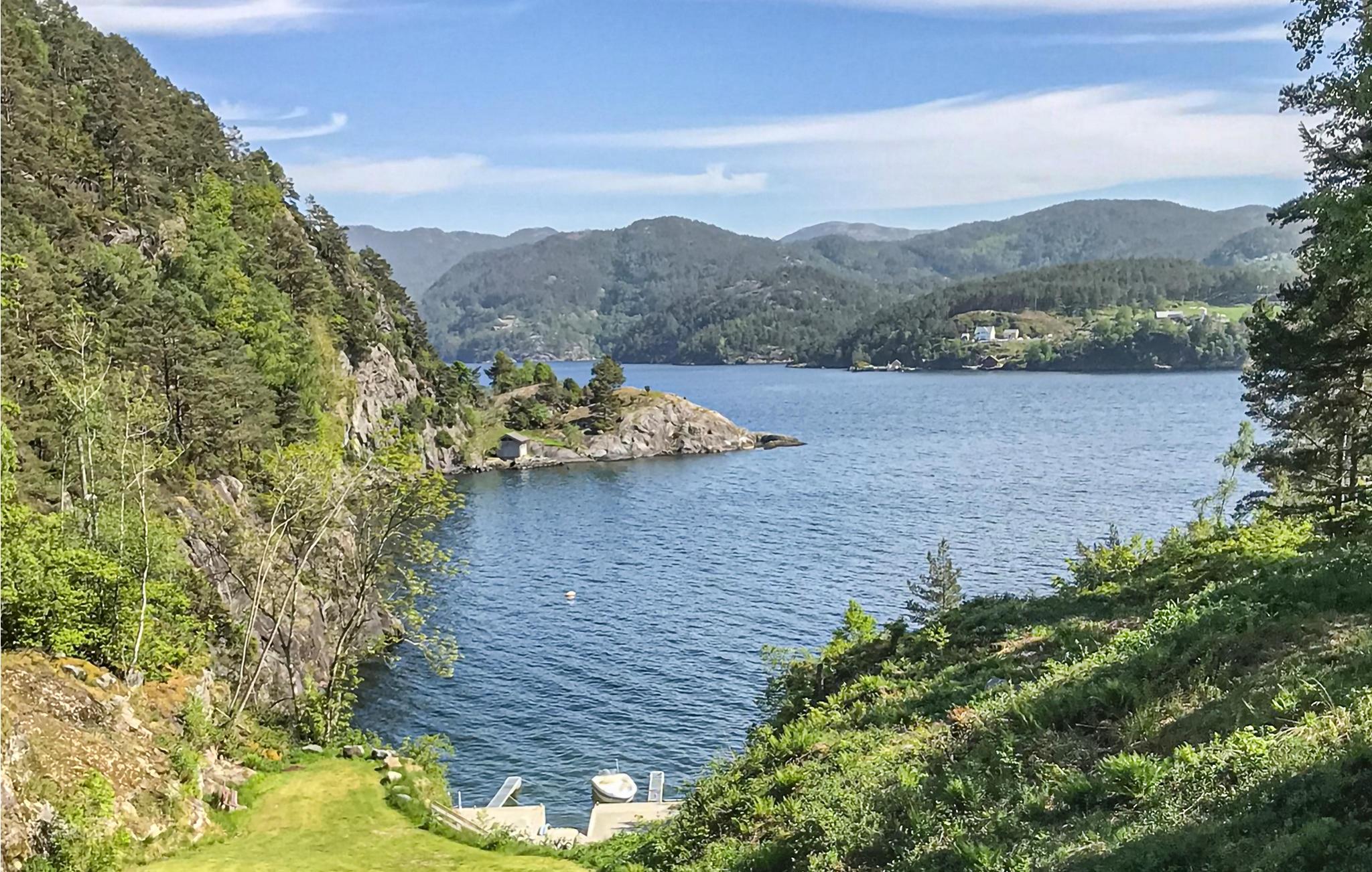 Et charmerende sommerhus med et dejligt udendørs område og kort afstand til Sandsfjorden. Bryggeområdet med bådplads ligger i nærheden, hvor der også er dejlige bademuligheder med en udendørs bruser. Her er det også muligt at gå ud på fjorden for at prøve fiskelykken i løbet af ferien. Hvis du hellere vil prøve at fiske efter den vilde bjergørreder i bjergfarvande, er der mange muligheder for at prøve det. Der er også laksefloder som Suldalslågen og Vikedalselva, som begge ligger kun en kort køretur fra feriehuset (husk fiskerilicenser). Anbefalede ture er Fjetlandsnuten og Grytenuten, hvor der er en 360 graders kikkert med spektakulær udsigt hele vejen til Stavanger og Folgefonna. Tag ture på de nationale ruter i Ryfylke og besøg Sand med butikker og seværdigheder som Ryfylkemuseet, Salmon Studio og Sandsfossen. Dagsture til Lysefjord, Preikestolen og Trolltunga er mulige fra sommerhuset.