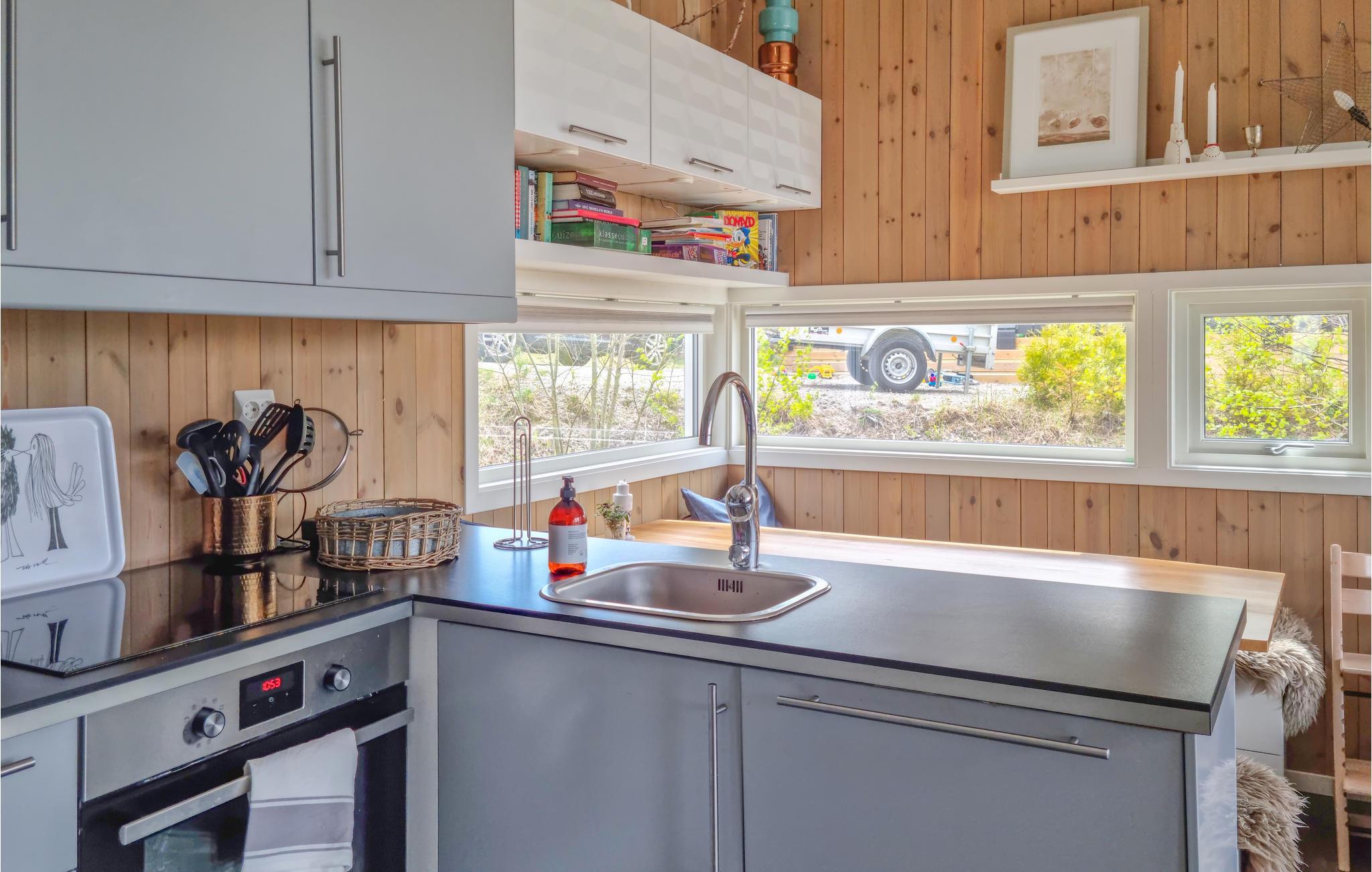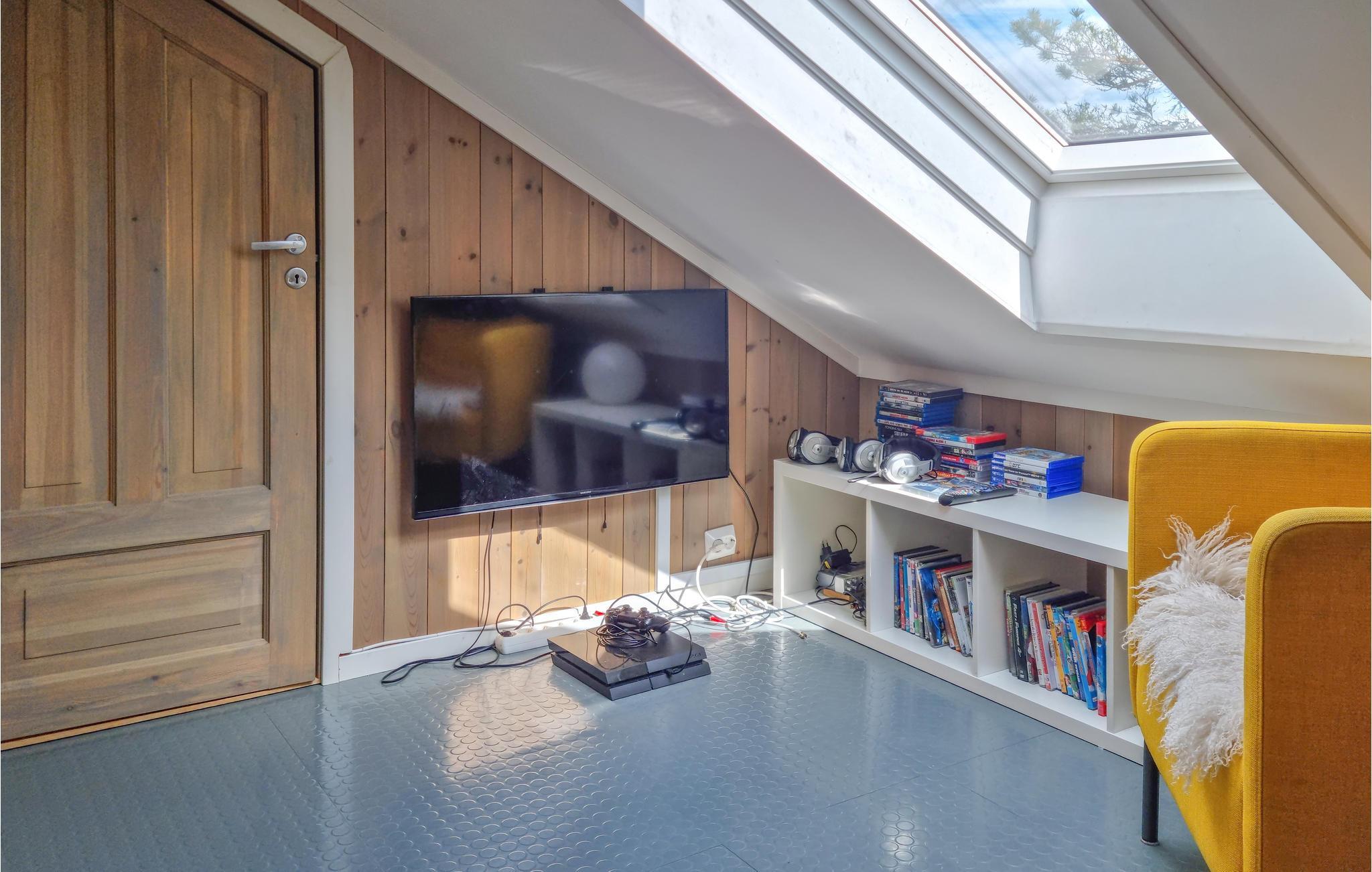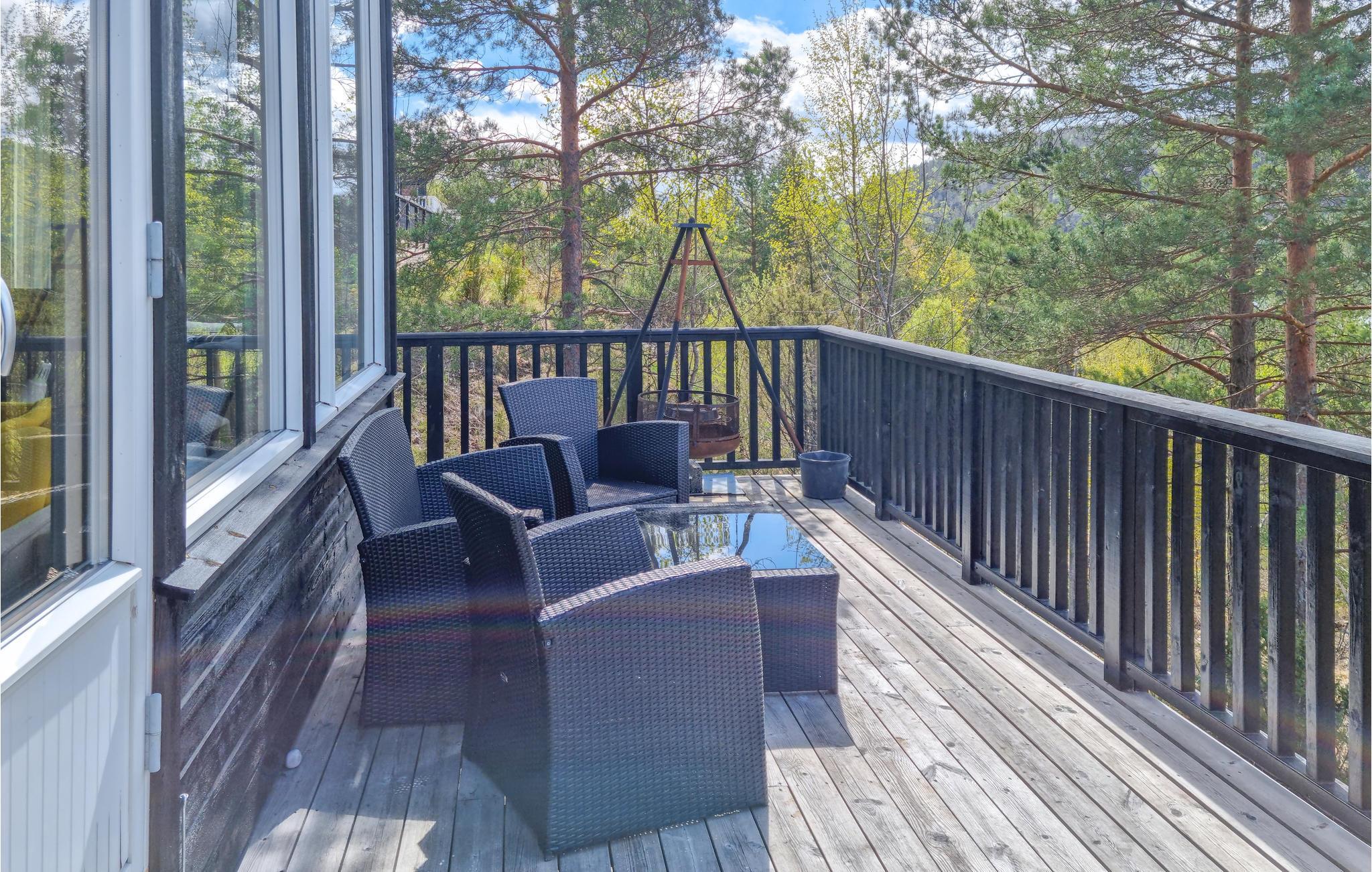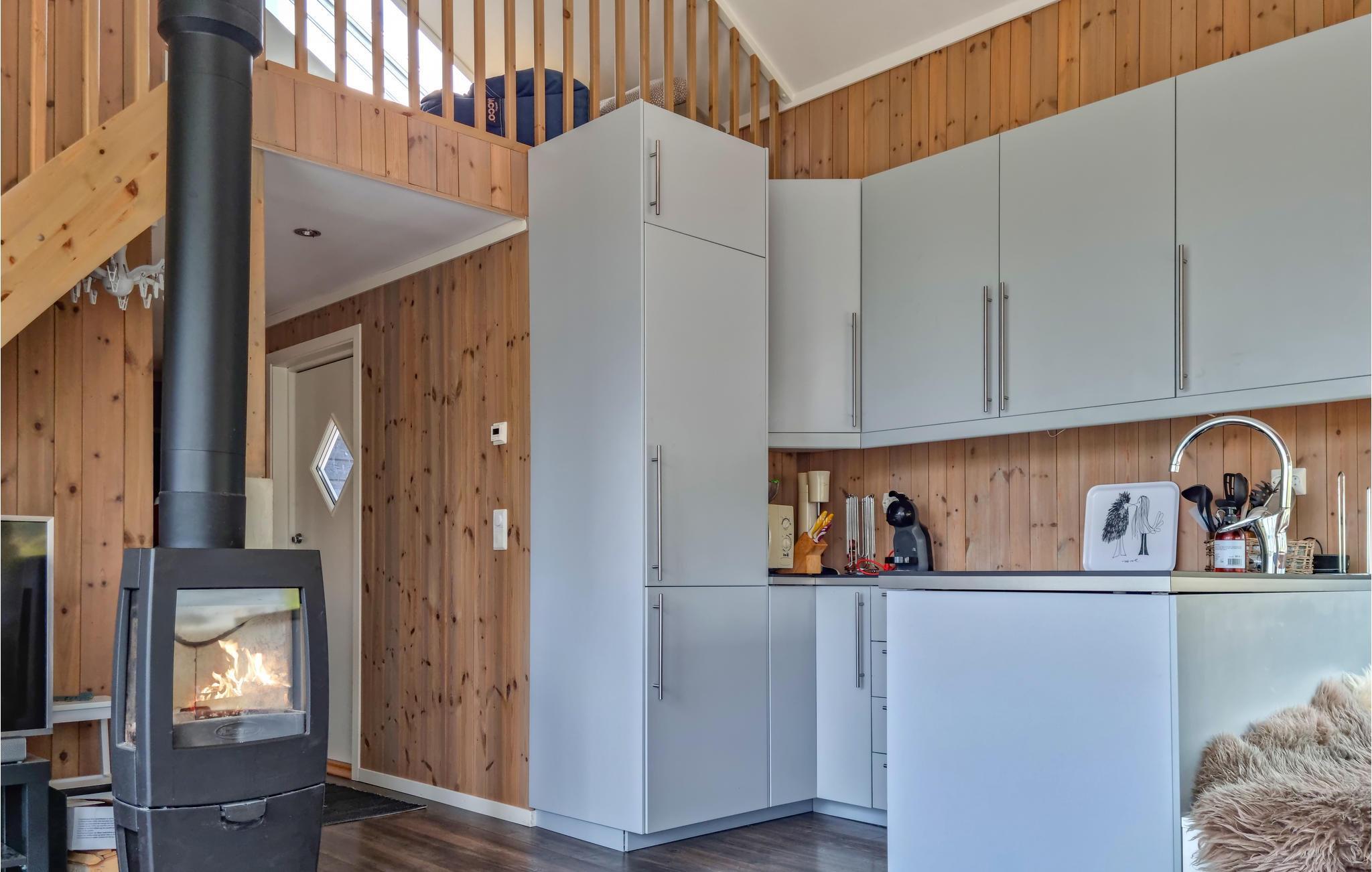 Her kan I opleve Norges skønhed i hyggelige rammer. Stuen har store glasfronter og lægger op til at dagdrømme og forundres over den unikke natur, mens ilden knitrer i brændeovnen. På terrassen kan I opleve den utrolige friskhed, som kendetegner den norske natur og slappe af i solen mellem jeres vandre- og fisketure.