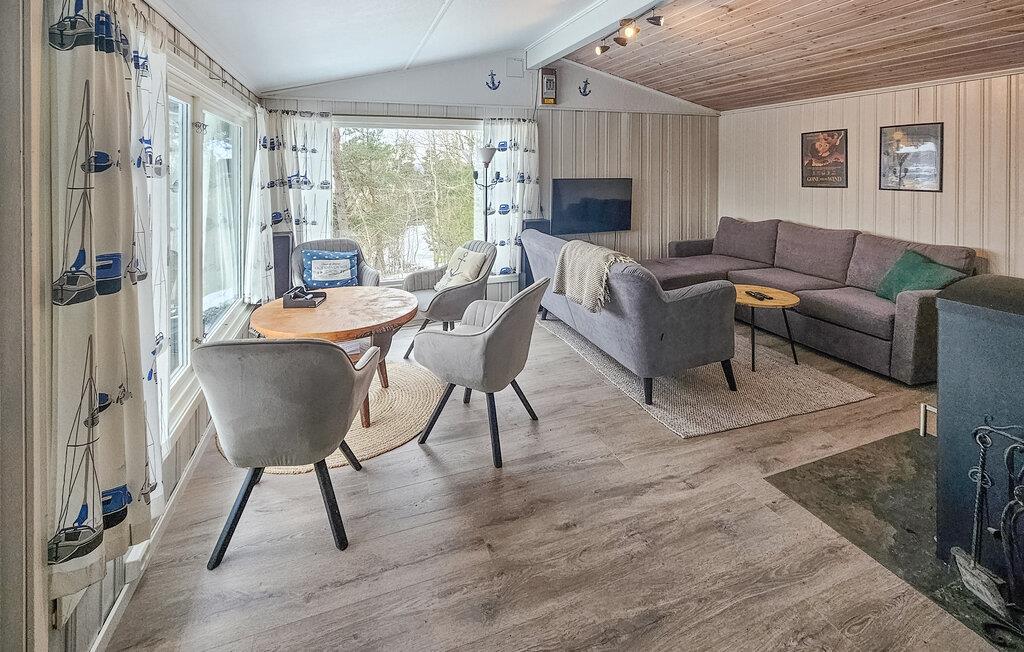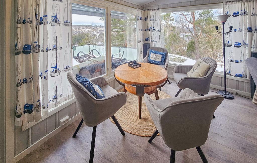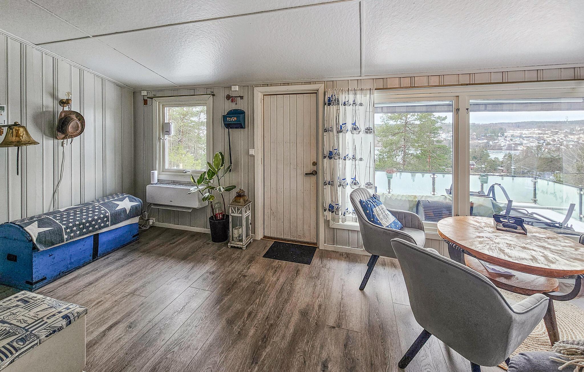 Forkæl jer selv med en pause i denne hyggelige hytte på Nøtterøy. Den rolige beliggenhed midt i naturen og nærheden til vandet giver de bedste betingelser for afslappende dage. Nyd den friske fjordluft, udforsk omgivelserne og læg hverdagen bag jer. Kabinens indre er komfortabelt og funktionelt indrettet. Slap af i det hyggelige sofahjørne i opholdsrummet, mens de store vinduespartier giver masser af naturligt lys og en smuk udsigt til det fri. brændeovnen giver hyggelig varme på kølige dage. Spis sammen i den tilstødende spiseplads og tilbered måltider i det praktiske køkken. Dekorative elementer giver ejendommen en charmerende, nordisk stil.