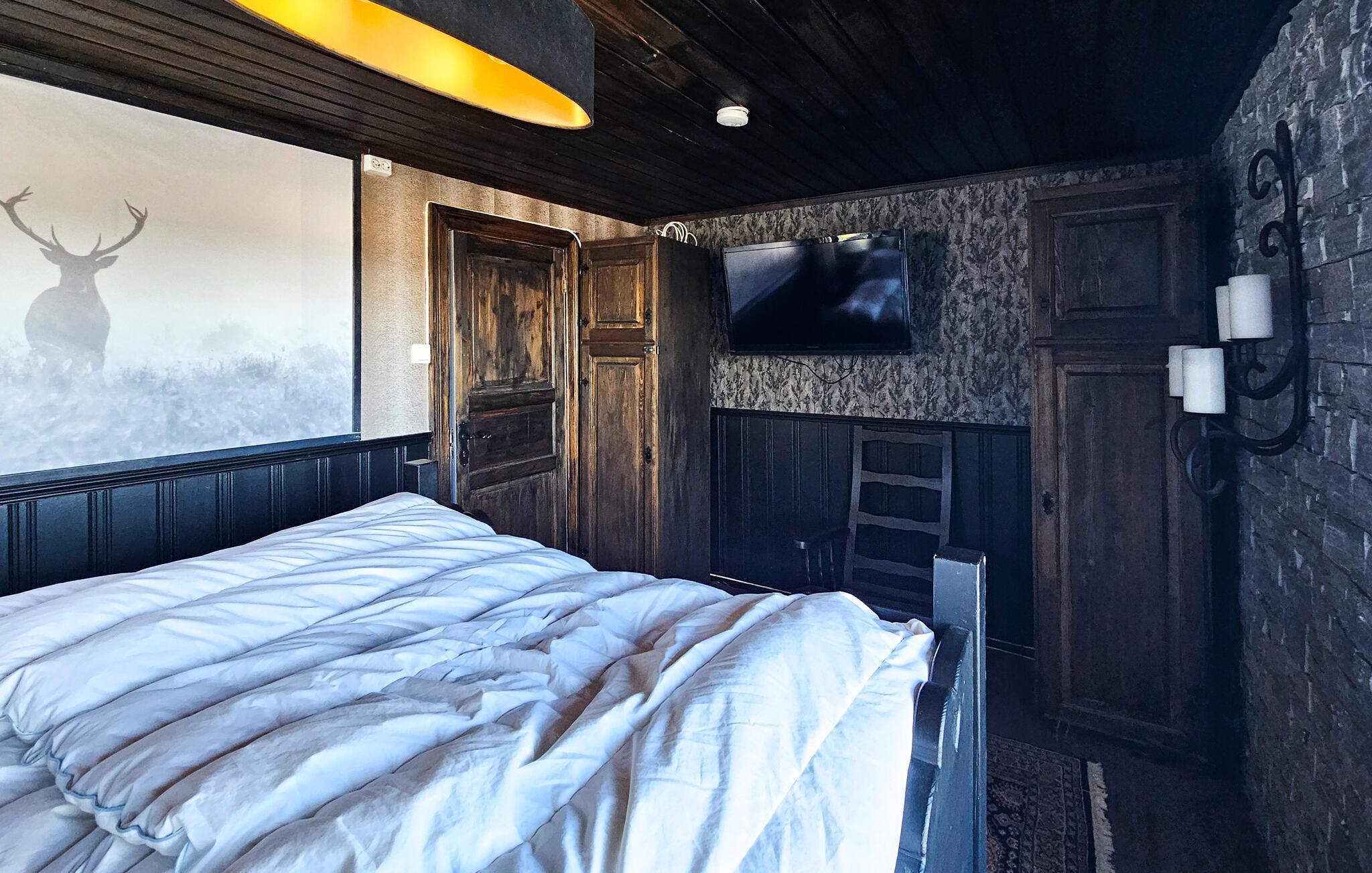 Denne rummelige hytte har komfortabelt og stilfulde værelser, hvor I også vil Finde jer godt til rette med en større familie eller gruppe af venner. Pisk solide retter op i det åbne køkken og glæd jer til hyggelige måltider ved det lange spisebord. Forkæl jer selv med beroligende stunder i saunaen, lyt til brændeovnens knitren, mens I læser en god bog eller nyd hyggelige spilleaftener i den indbydende stue.
