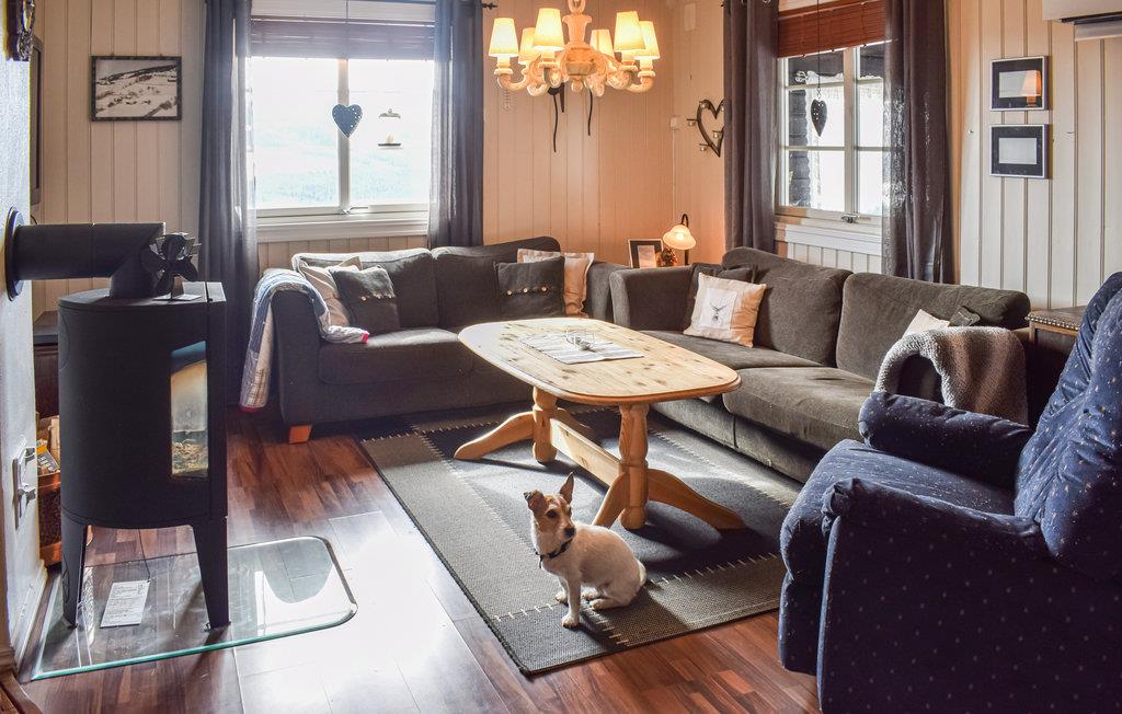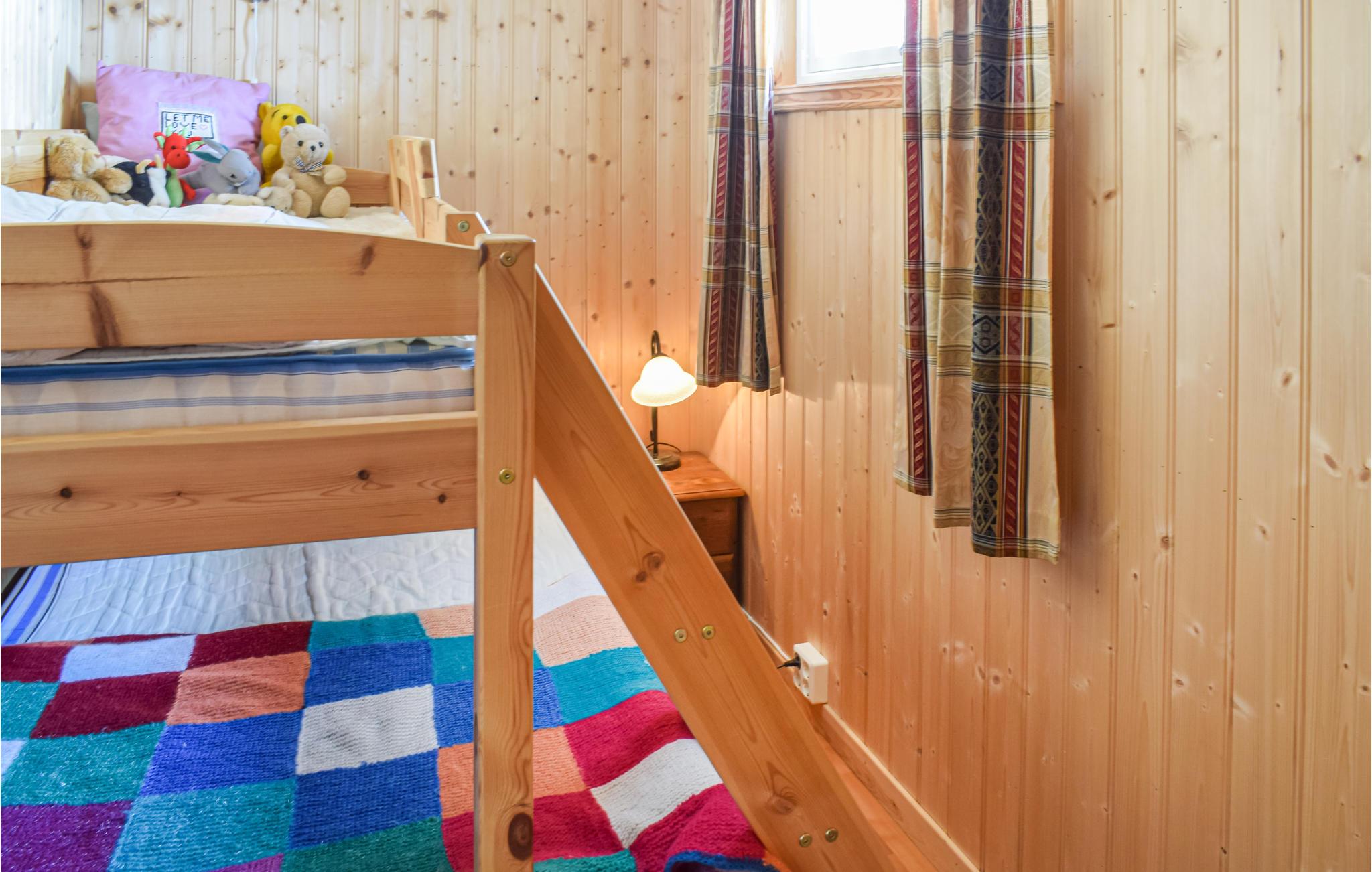 Det hyggelige træhus tilbyder masser af plads til hele familien og er velegnet til en dejlig ferie i enhver sæson. Køkkenet er udstyret med spiseplads, her er også hyggelige soveværelser med dobbelt- og køjesenge, der lover behagelige nætter, og i stuen kan I alle gøre sætte jer godt til rette i sofaen ved pejsen og lytte til den knitrende ild.