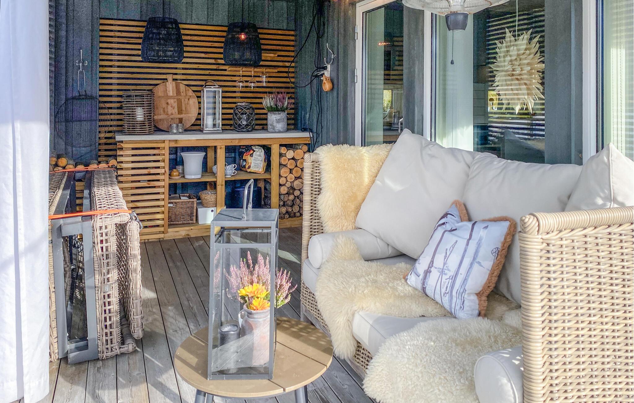 Tilbring aktive dage i naturen og vend tilbage til jeres hyggelige hytte om aftenen for at nyde varmen fra den hyggelige brændeovn. Den kærligt indrettede stue indbyder til afslapning og velvære. Genoplev dagen og glæd jer over den fælles ferieoplevelse med jeres kære. I det praktiske køkken kan I trylle et lækkert aftensmåltid frem og servere det ved det stilfulde spisebord.