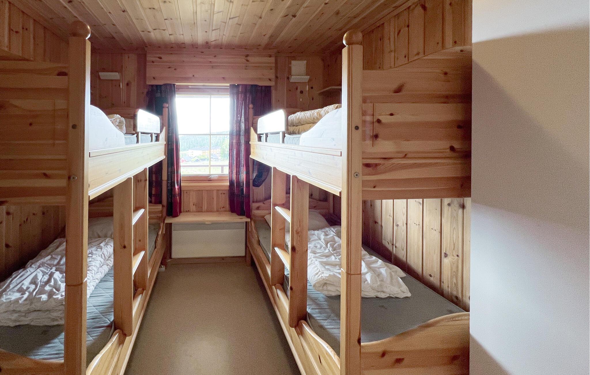 Glæd jer til en afslappende ferie tæt på naturen i dette indbydende feriehus. Dette charmerende, rustikke feriehus i Nordseter indbyder til hyggelige timer foran den knitrende brændeovn. Med sine varme træmøbler og kærlige detaljer udstråler huset familiecharme, ideelt til afslappende dage med dine kære. Efter en aktiv dag kan I nyde den interne sauna, som tilbyder jer behagelig afslapning. Værelserne er lyse og venlige med adskillige vinIer, der bringer det fascinerende bjerglandskab indenfor. I denne oase af velvære finder I fred og tryghed, omgivet af Norges uforlignelige natur. Nordseter er et paradis for natur- og friluftselskere. I kan fiske aborre og søørred i de fiskerige farvande, mens Mellsjøen, regionens bedste badesø, også byder på ideelle forhold for børn. Om vinteren venter et af Norges bedste langrendsløjpenetværk på jer, kun få meter fra dit feriehus. Skiturene er varierede, fra korte ruter til krævende ruter, såsom stigningen til Nevelfjell med en fantastisk udsigt. Om sommeren er vandreture gennem det maleriske landskab fristende - en oplevelse for store og små!