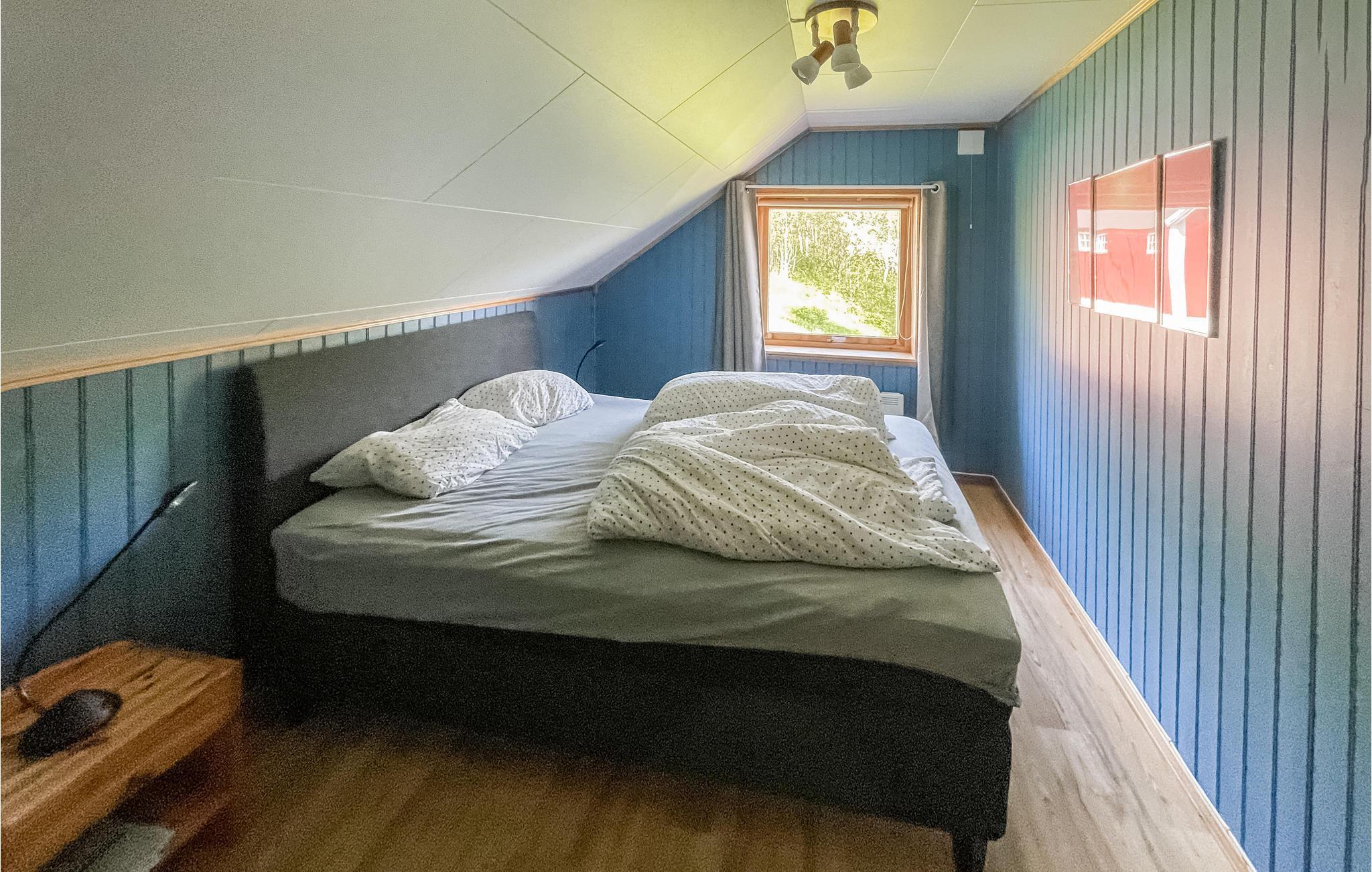 Drømmedestinationen Lofoten byder velkommen med dette rummelige sommerhus tæt på vandet. Glæd dig til dette skønne feriehus i umiddelbar nærhed af hav og ferskvand. Kom her med din familie og føl dig hjemme i huset i familiestil. Brug den åbne stue som et centralt familiemødested og slap af ved pejsen, spil kort ved spisebordet eller nyd udsigten til vandet og bjergene, mens du laver mad. Hver morgen kan du drikke din kaffe eller te på balkonen og forelske dig i udsigten hver morgen. Oplev en uforglemmelig ferie i Lofotens smukke landskab. Ikke langt fra huset er der en ferskvandssø med fiskemuligheder, så du kan begynde at fiske med det samme. Ved huset har du mulighed for at rense fisk og opbevare den i fryseren. Der er også gode bademuligheder, som vil byde på en god oplevelse med denne kulisse. I de koldere måneder kan du være heldig at se nordlyset, som vil blive hos dig i lang tid. Tag på dagsture og vandreture og tilbring en betagende ferie i Nordnorge!
