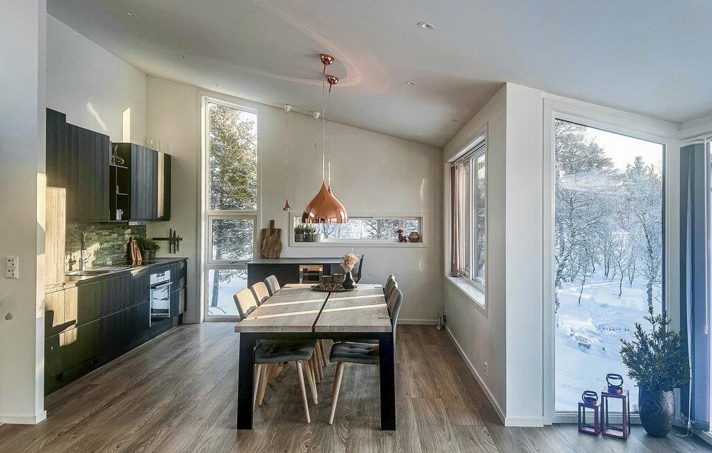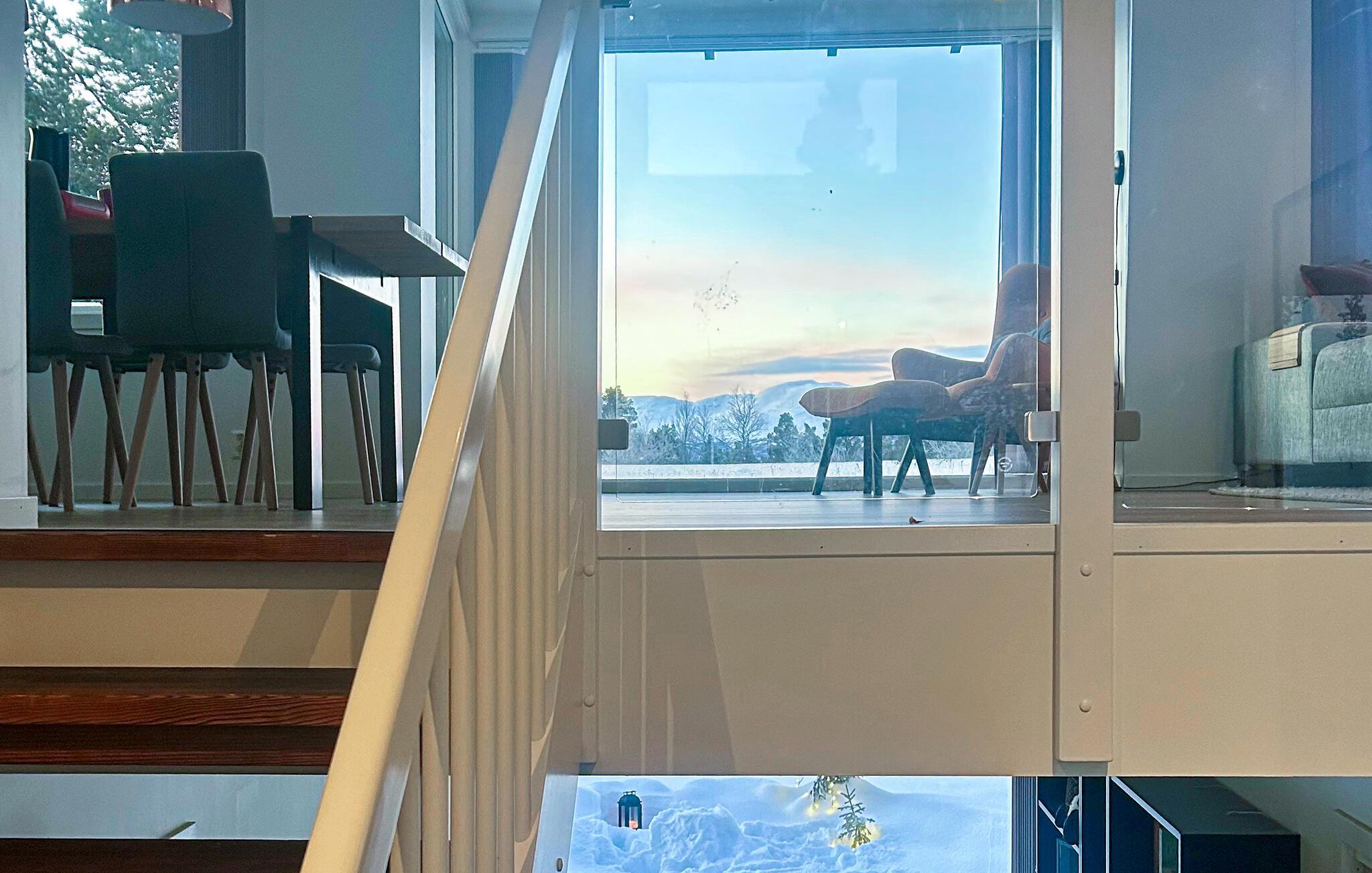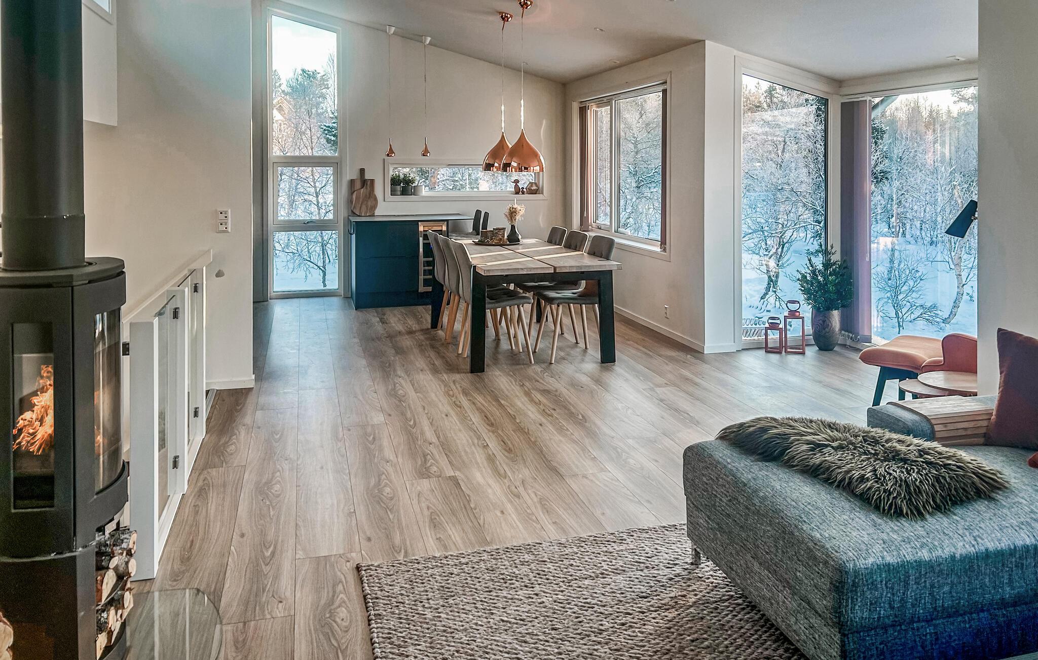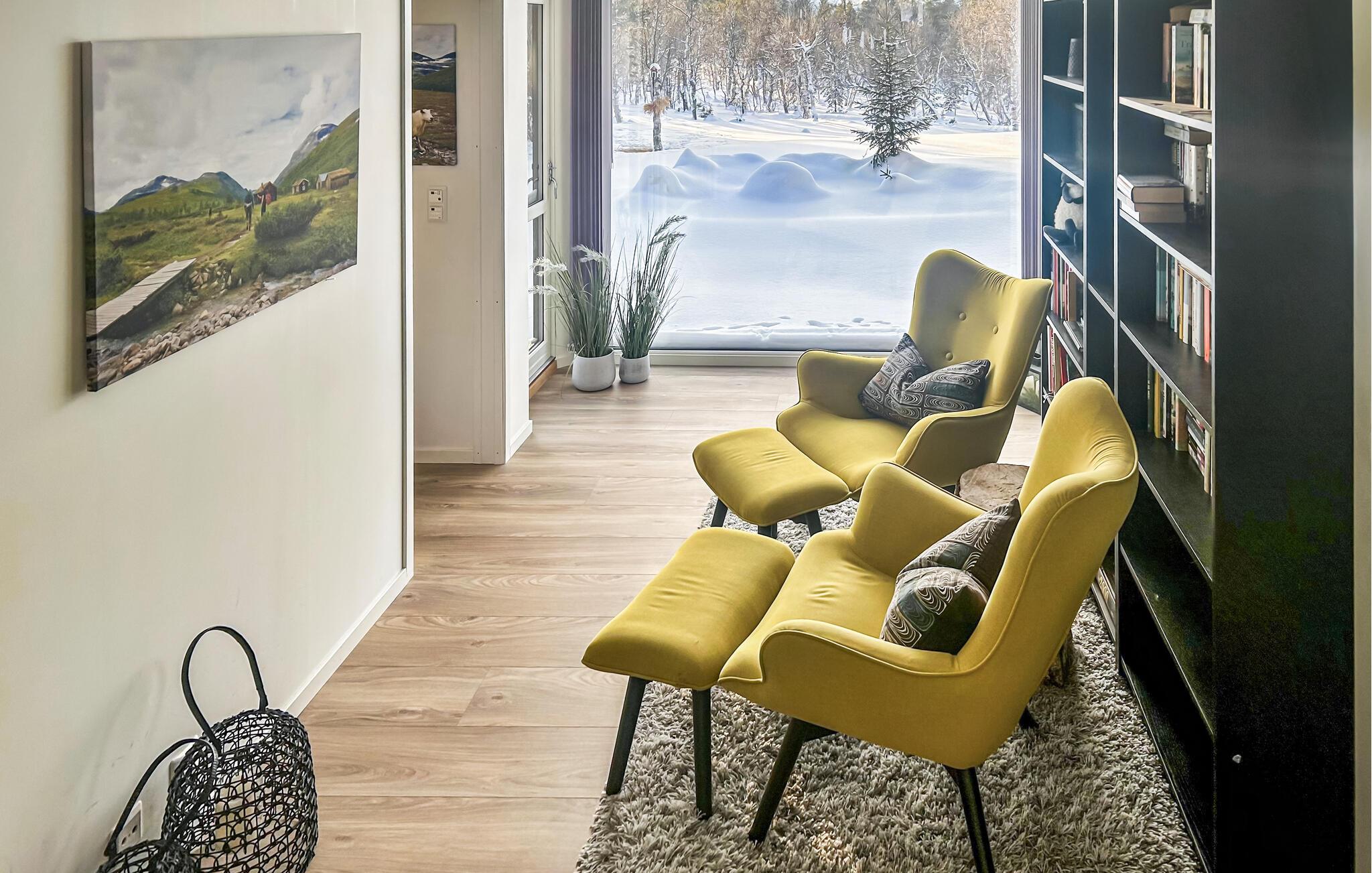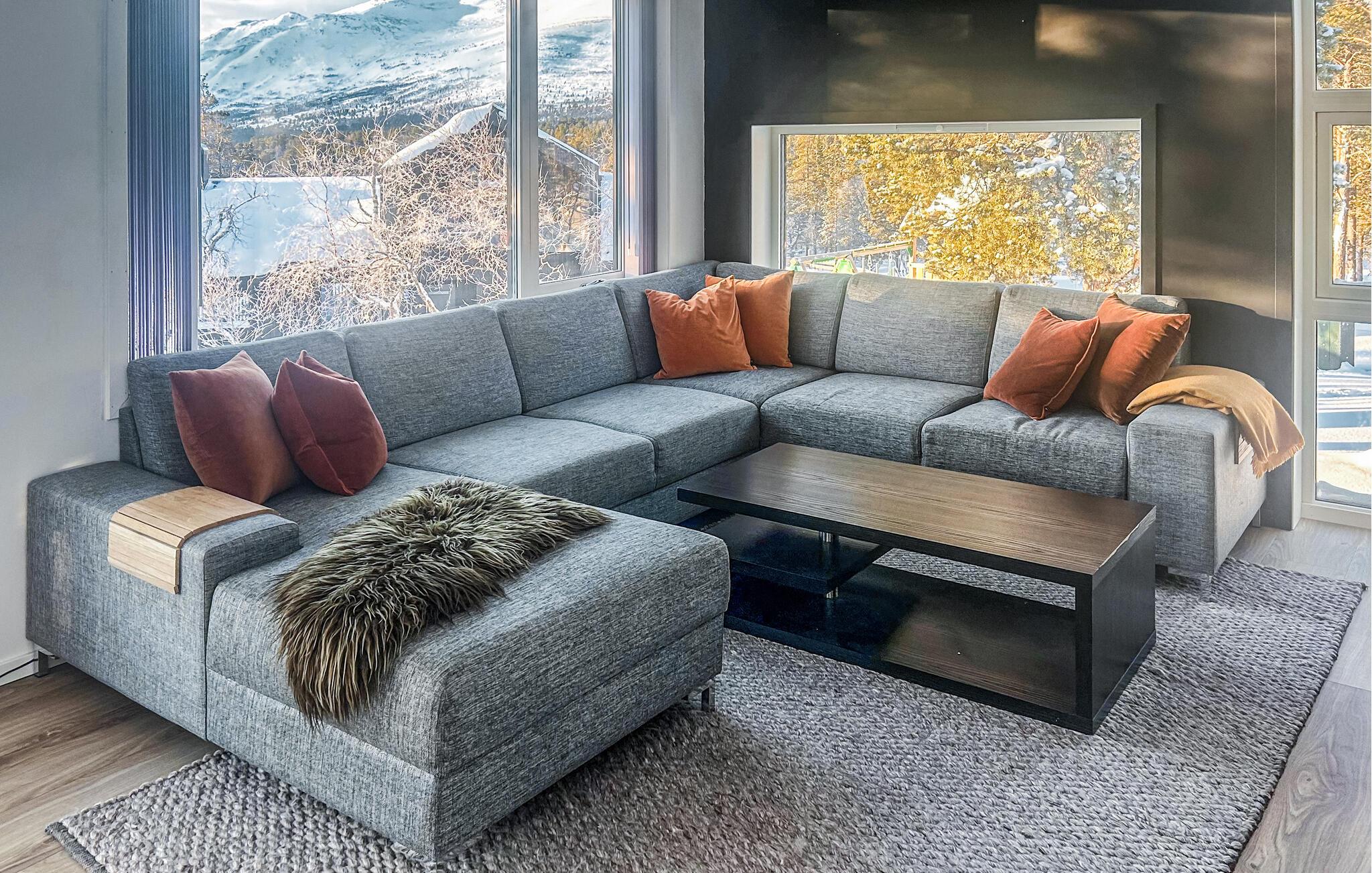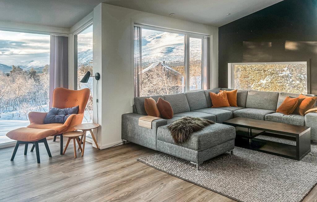 Velkommen til dette smagfuldt indrettede feriehus i Oppdal, hvor rummelige panoramavinduer oversvømmer de elegante rum med masser af naturligt dagslys. Tag plads på de komfortable lænestole, fordyb jer i en bog eller slap af i saunaen efter en lang vandretur. Tilbring tid med familien på det komfortable sofaområde og tilbered jeres yndlingsretter i det moderne, fuldt udstyrede køkken med en indbydende spiseplads.