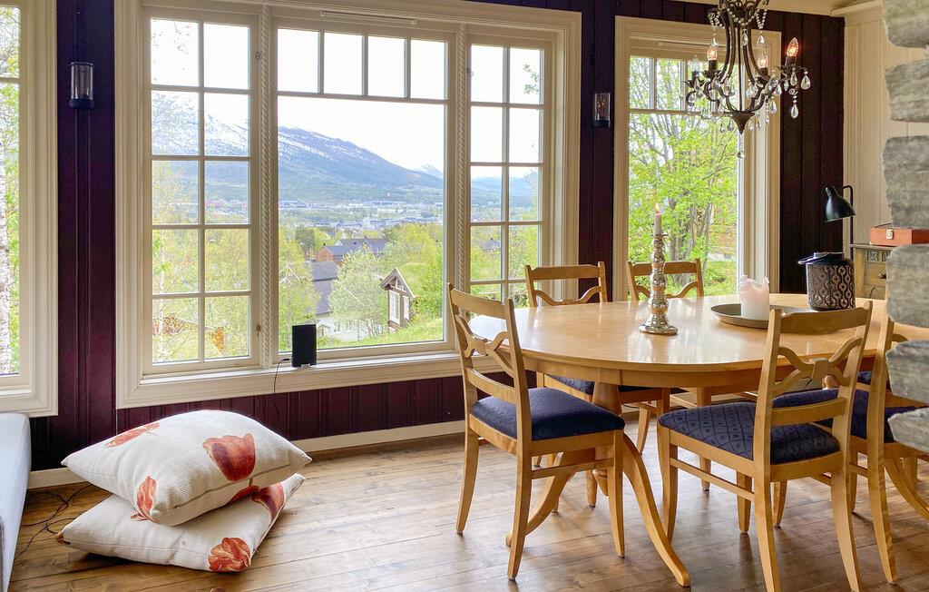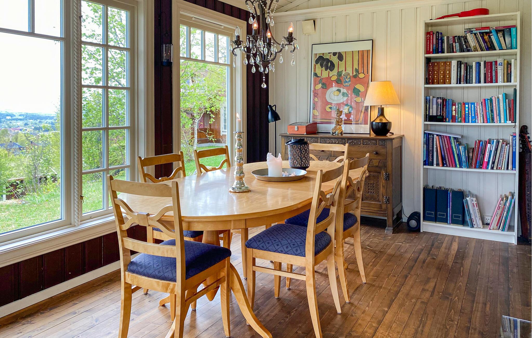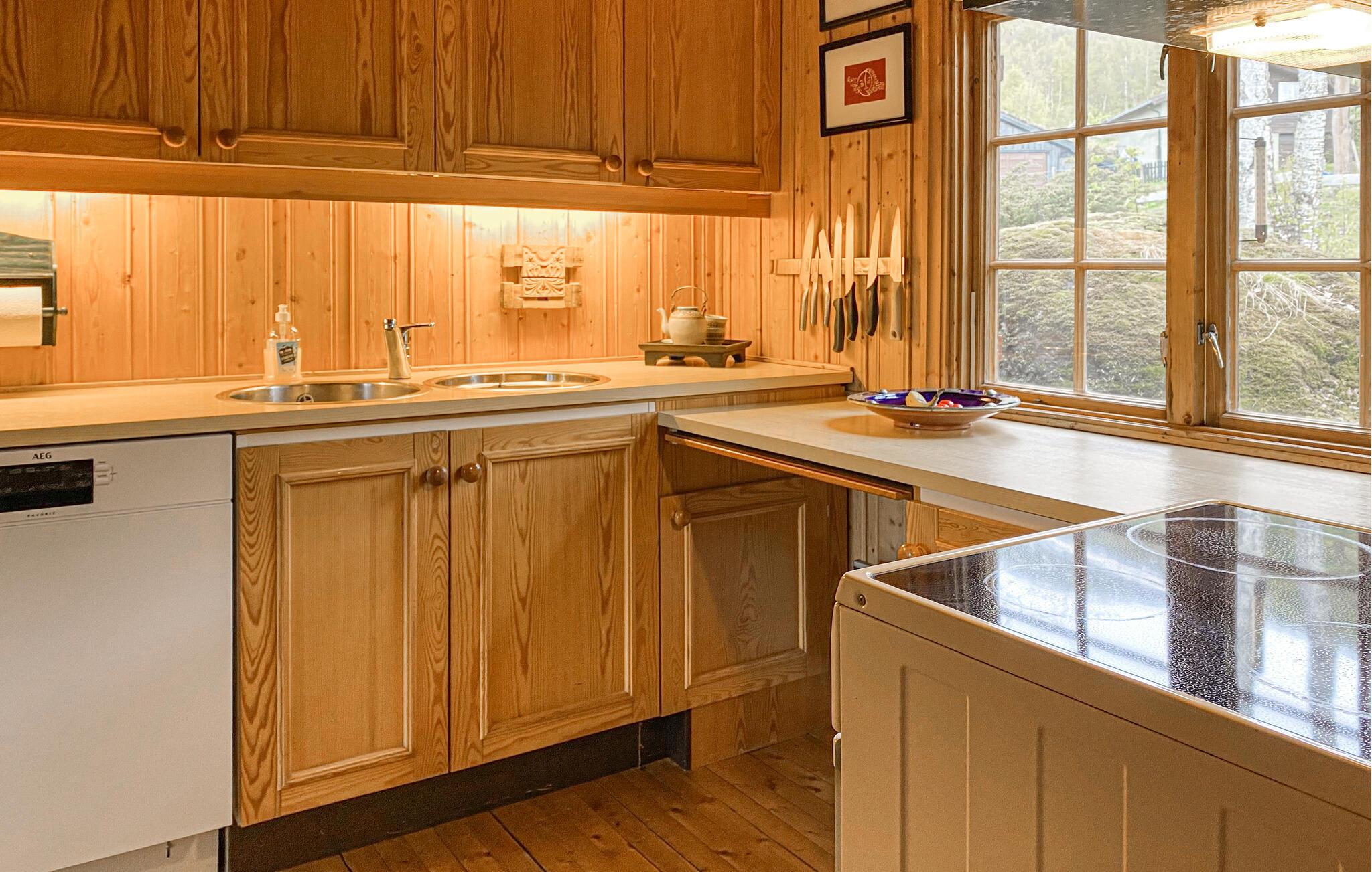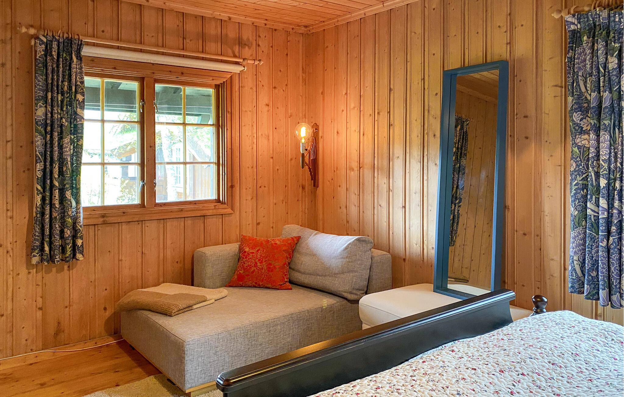 Denne hyggelige bjerghytte lægger op til at forlade hverdagen og opleve naturens ro. Huset ligger højt og har en smuk panoramaudsigt med fantastiske omgivelser til afslappende dage blandt bjerge, skov og himmel året rundt. Slap af i den varme opholdsstue med store vinduer med udsigt over dalen og bjerglandskabet. Slap af i sofaen eller læs en bog ved pejsen, hvilket skaber en hyggelig atmosfære. Køkkenet er traditionelt indrettet og praktisk møbleret. Nyd hvert måltid sammen ved det runde spisebord med udsigt til naturen.