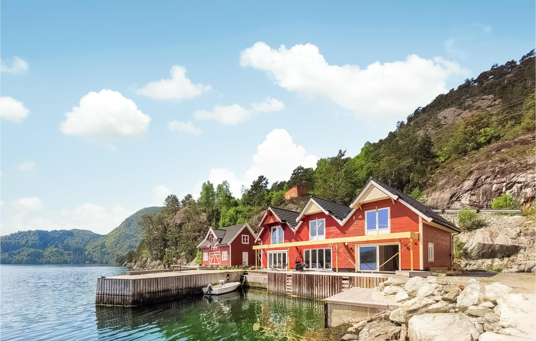 Huset byder velkommen i en smuk beliggenhed direkte ved fjorden midt i et fortryllende landskab og er det ideelle sted at slappe af i hyggelige omgivelser. Den hyggelige indretning gør det nemt for jer at føle jer godt tilpas her fra dag ét. Glæd jer til et fantastisk panorama, som de store vinduer bringer til værks, og lad blikket vandre ud over fjorden under måltiderne sammen.
