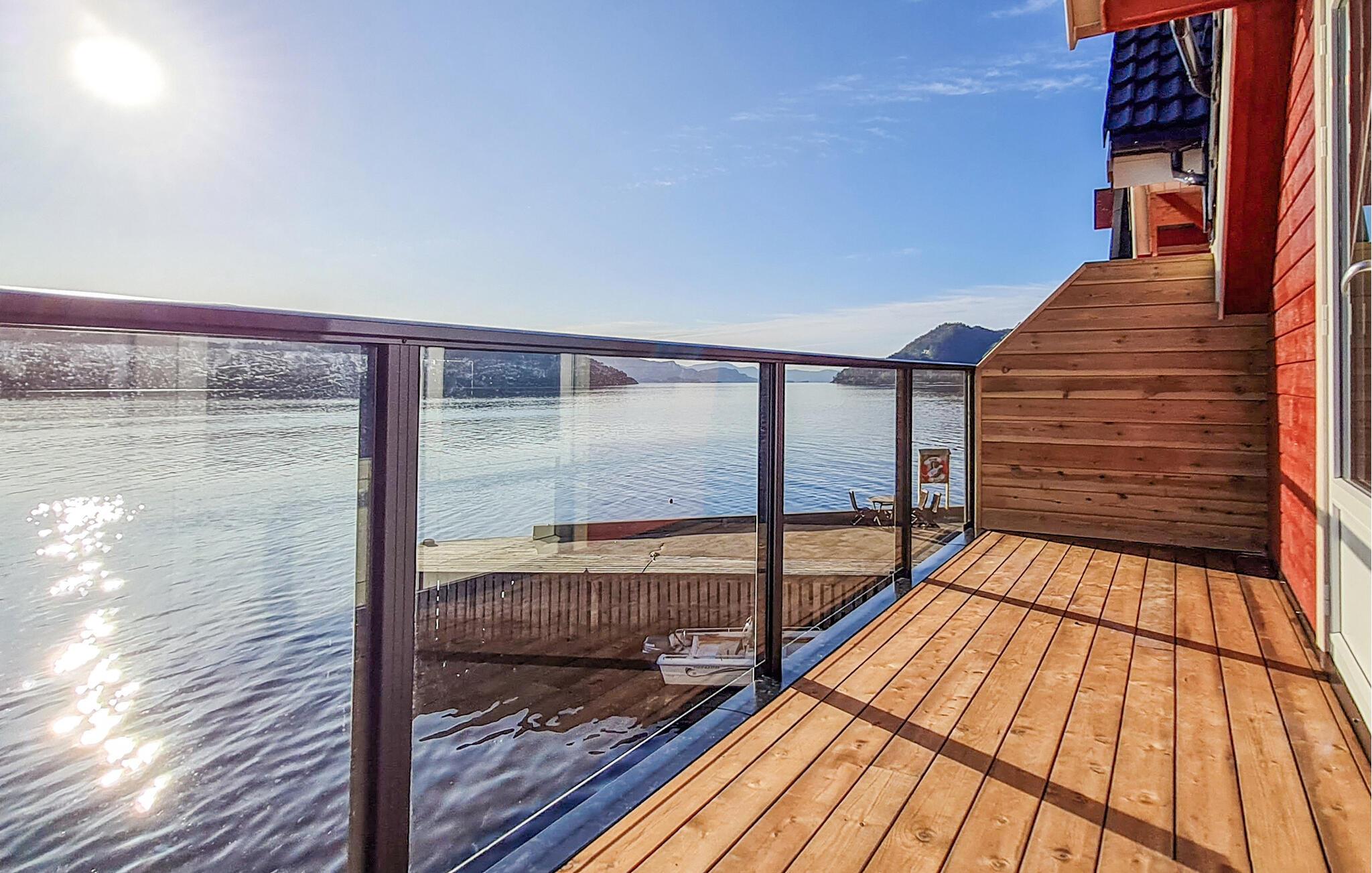 Lej en båd for at udforske kysten eller prøv at fiske. Oplev den omkringliggende natur med imponerende tinder og fortryllende udsigter, mens I vandrer. Oplagte og anbefalelsesværdige destinationer for dagsture er byen Bergen eller den storslåede Hardangerfjord.