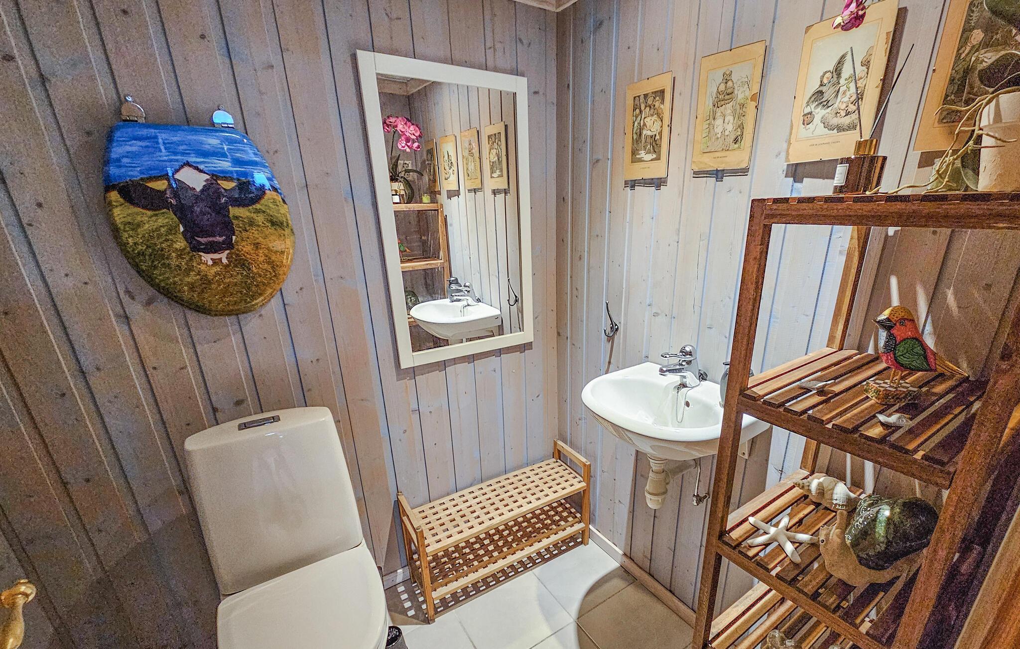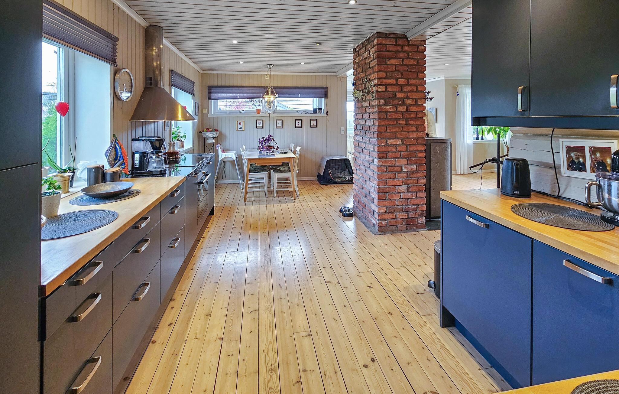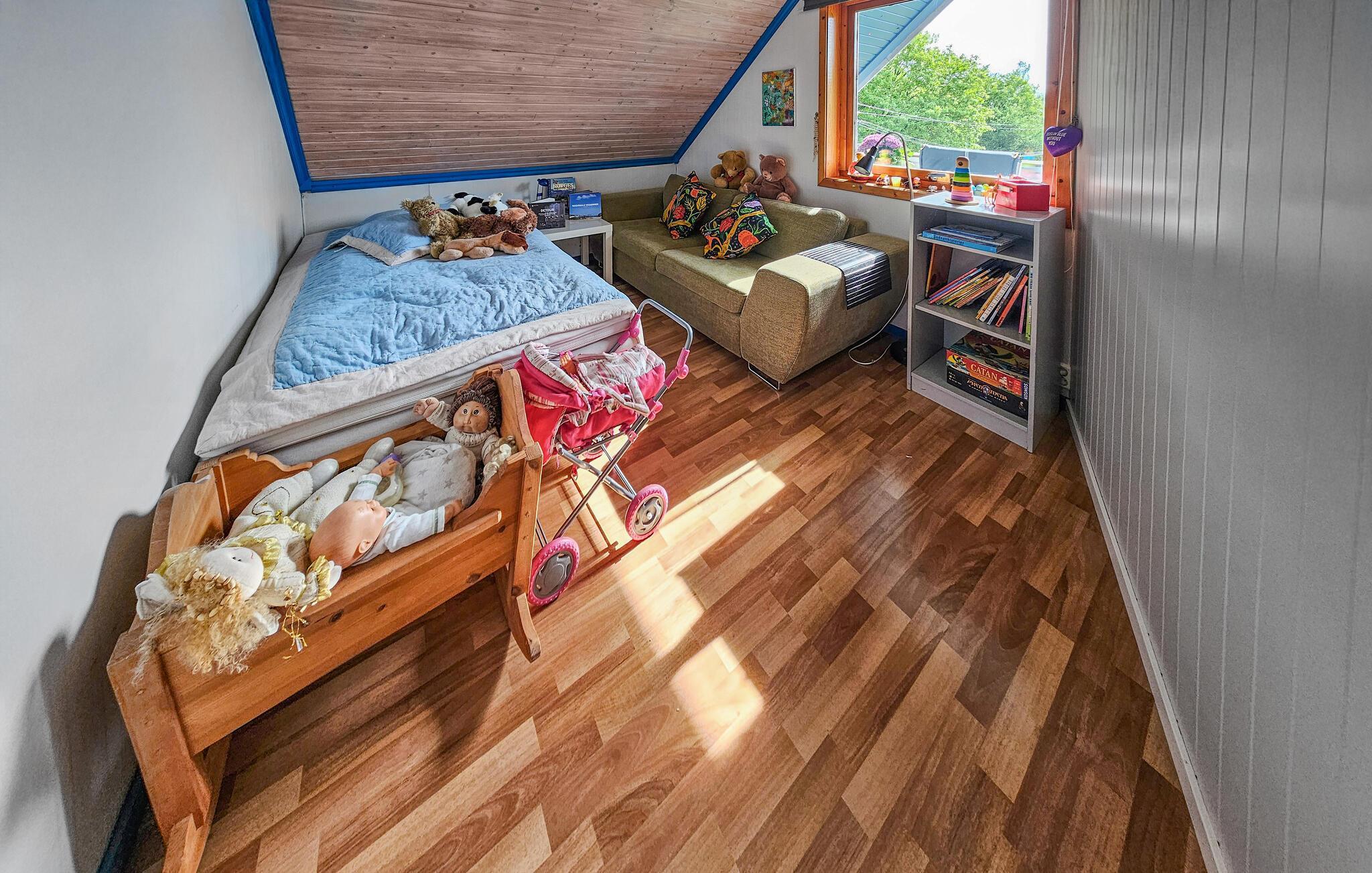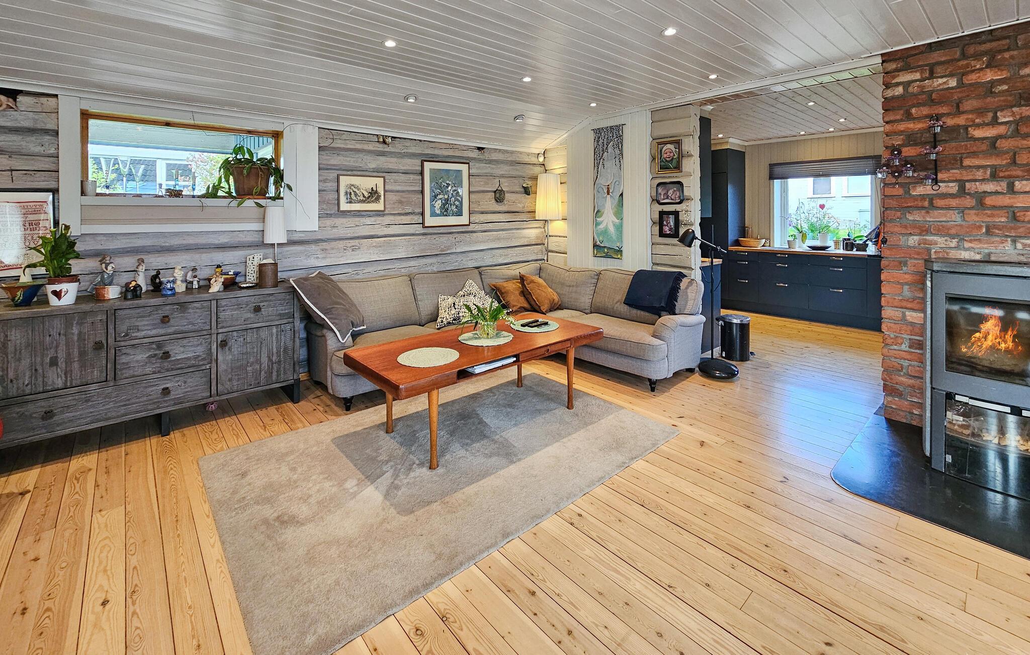 Dette komfortable og rummelige feriehus forkæler jer med adskillige ekstrafunktioner og et smagfuldt møbleret interiør, som hele familien vil nyde. Nyd hyggelige måltider og sjove spilleaftener i den åbne opholdsstue, mens pejsen sørger for hyggelig varme. Stream en film eller sæt jer godt til rette i sofaen til en stille læsestund.