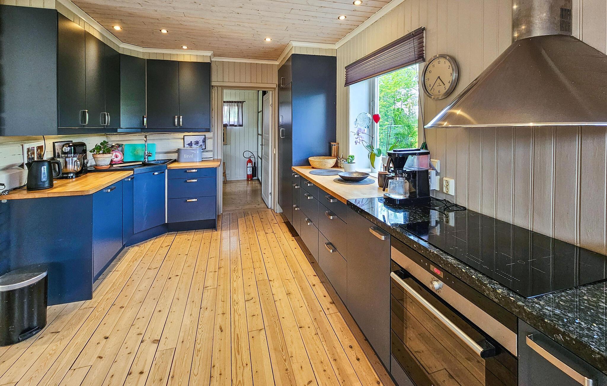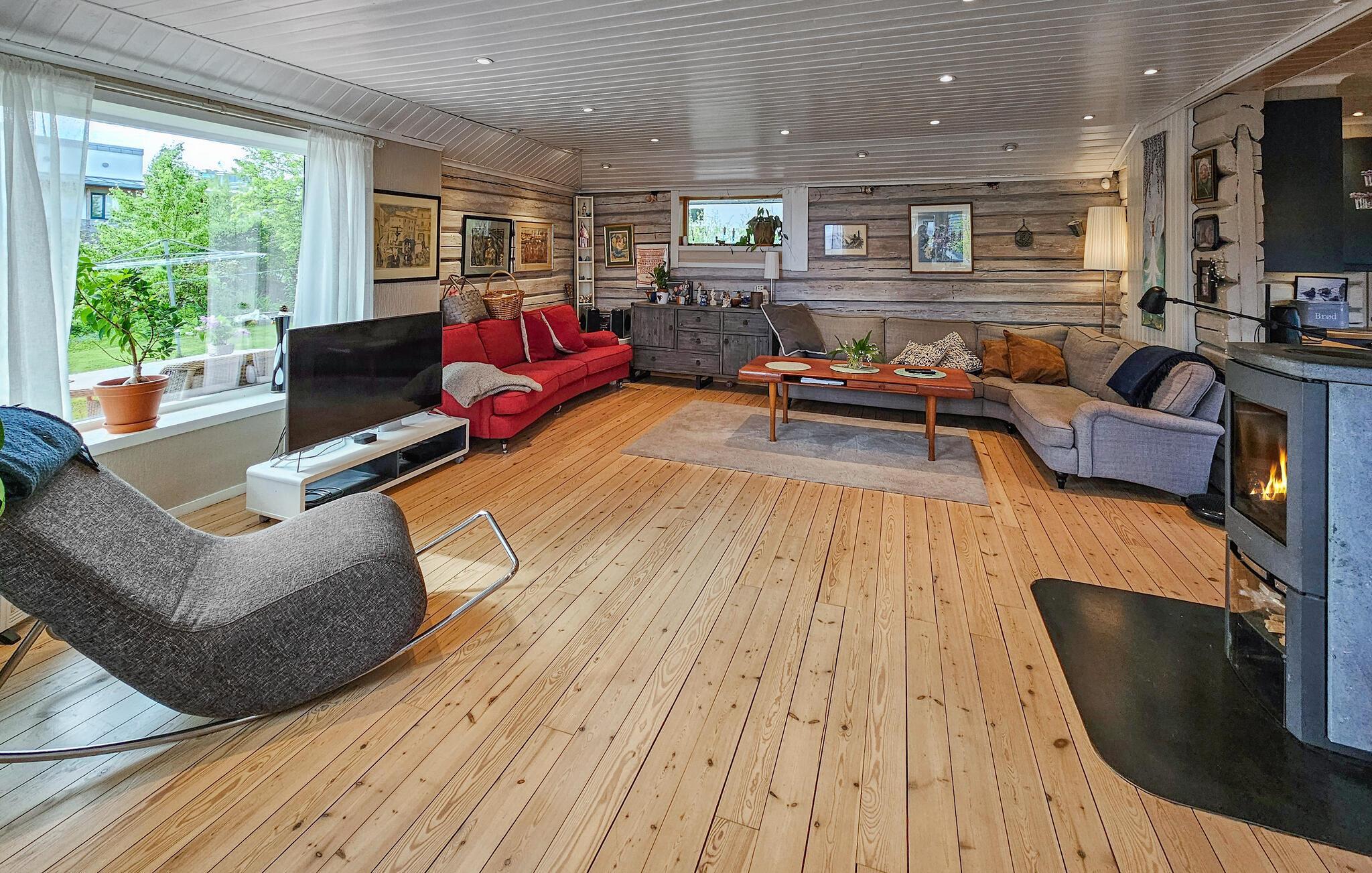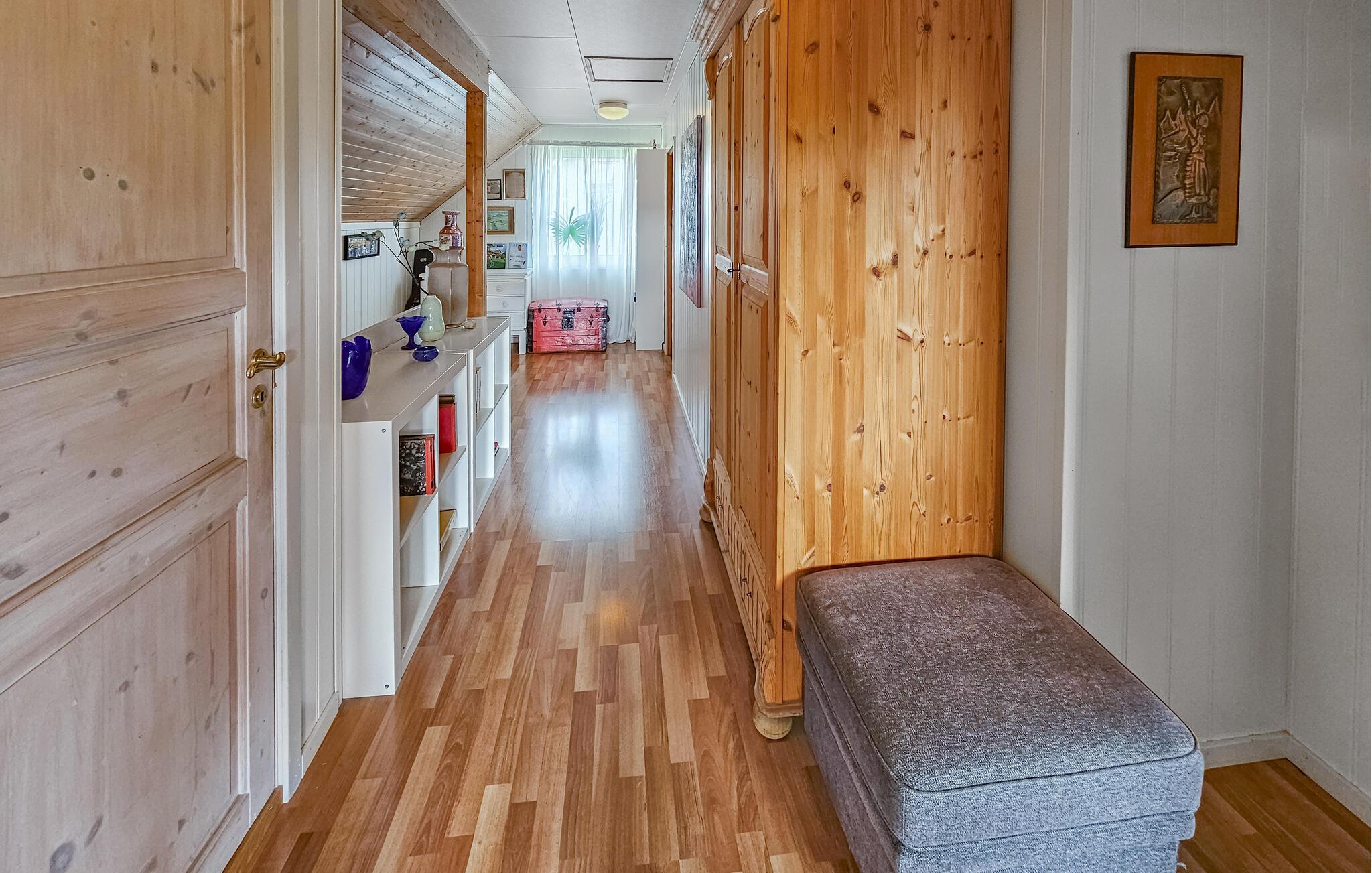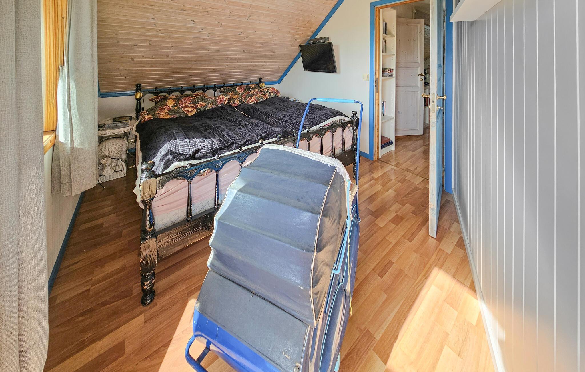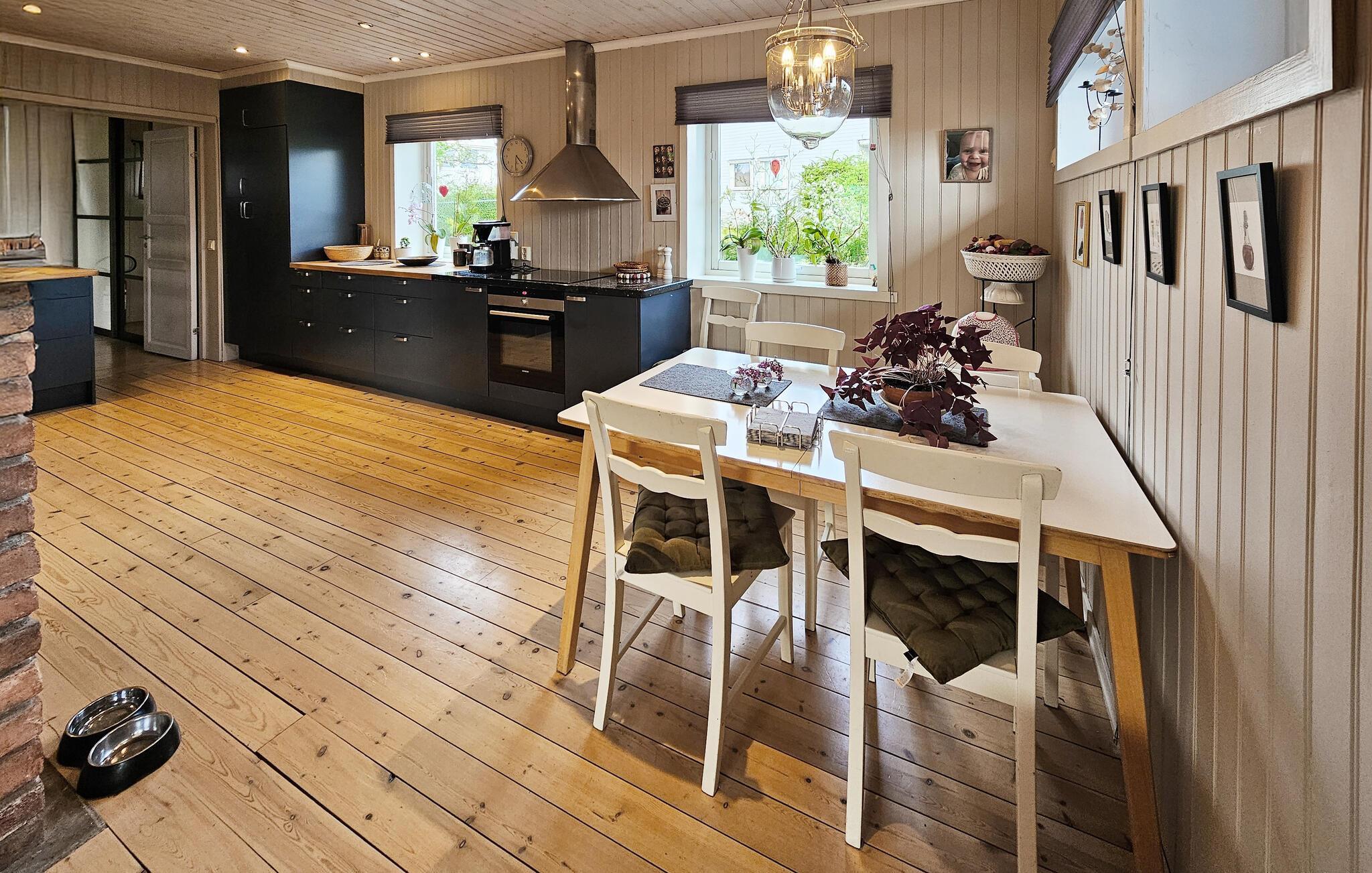 Dette komfortable og rummelige feriehus forkæler jer med adskillige ekstrafunktioner og et smagfuldt møbleret interiør, som hele familien vil nyde. Nyd hyggelige måltider og sjove spilleaftener i den åbne opholdsstue, mens pejsen sørger for hyggelig varme. Stream en film eller sæt jer godt til rette i sofaen til en stille læsestund.
