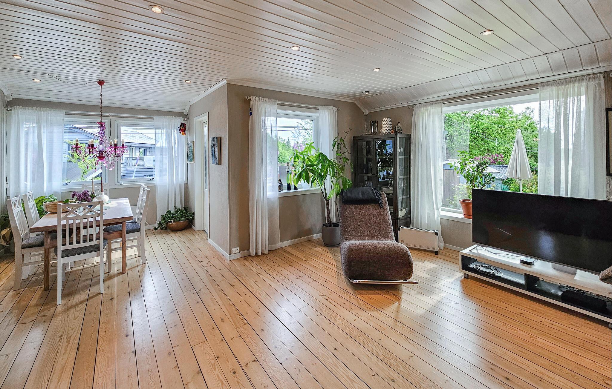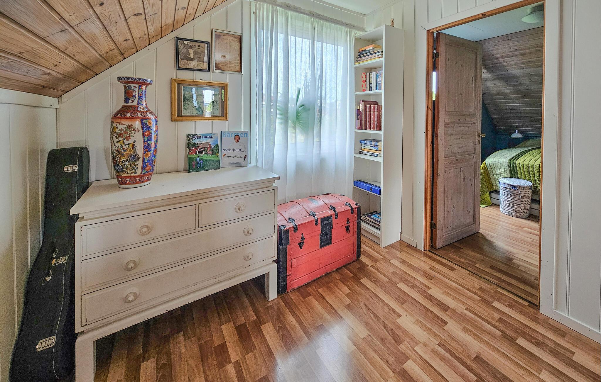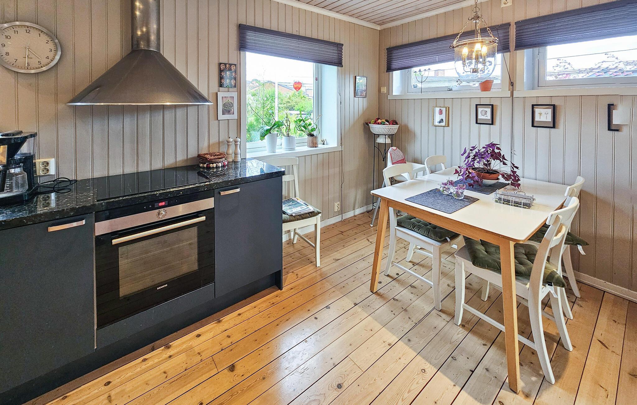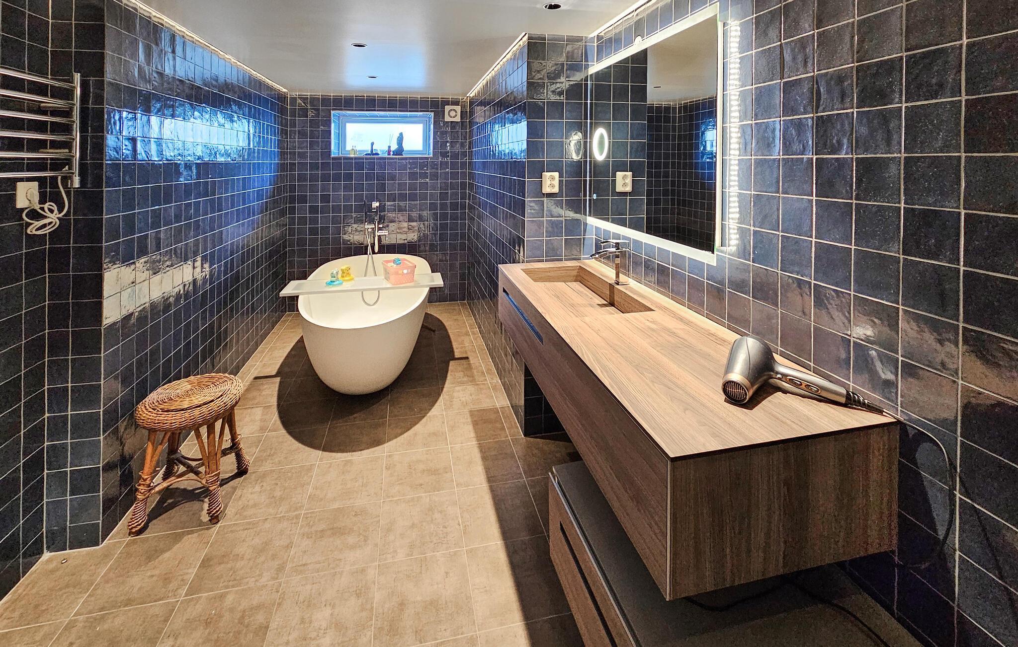 Dette komfortable og rummelige feriehus forkæler jer med adskillige ekstrafunktioner og et smagfuldt møbleret interiør, som hele familien vil nyde. Nyd hyggelige måltider og sjove spilleaftener i den åbne opholdsstue, mens pejsen sørger for hyggelig varme. Stream en film eller sæt jer godt til rette i sofaen til en stille læsestund.
