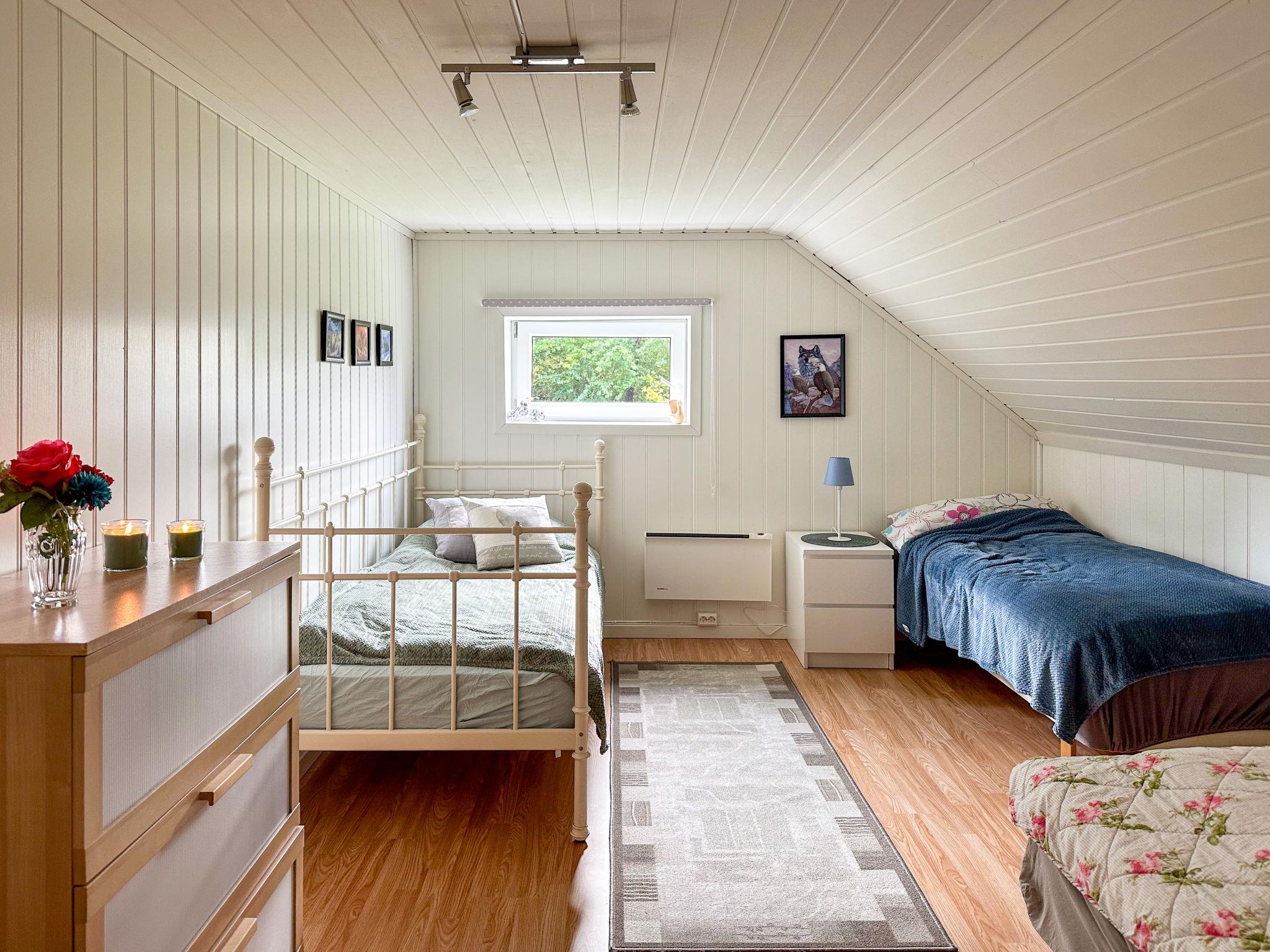 "Rødehuset", 3-room house 100 m2, on the ground floor. Cosy and wooden furniture furnishings: living/dining room with dining table, satellite TV, DVD and wood-burning stove. 1 room with 1 double bed (150 cm, length 200 cm). 1 room with 3 beds (90 cm, length 200 cm). Kitchen (oven, dishwasher, 4 ceramic glass hob hotplates, toaster, kettle, microwave, freezer, electric coffee machine). Shower/WC. Electric heating, underfloor heating. Patio. Terrace furniture, barbecue (portable). Facilities: Internet (WiFi, extra). Please note: non-smoking house. Private entrance, smoke alarm, fire extinguisher. Freezer approx. 80 l. 924531169