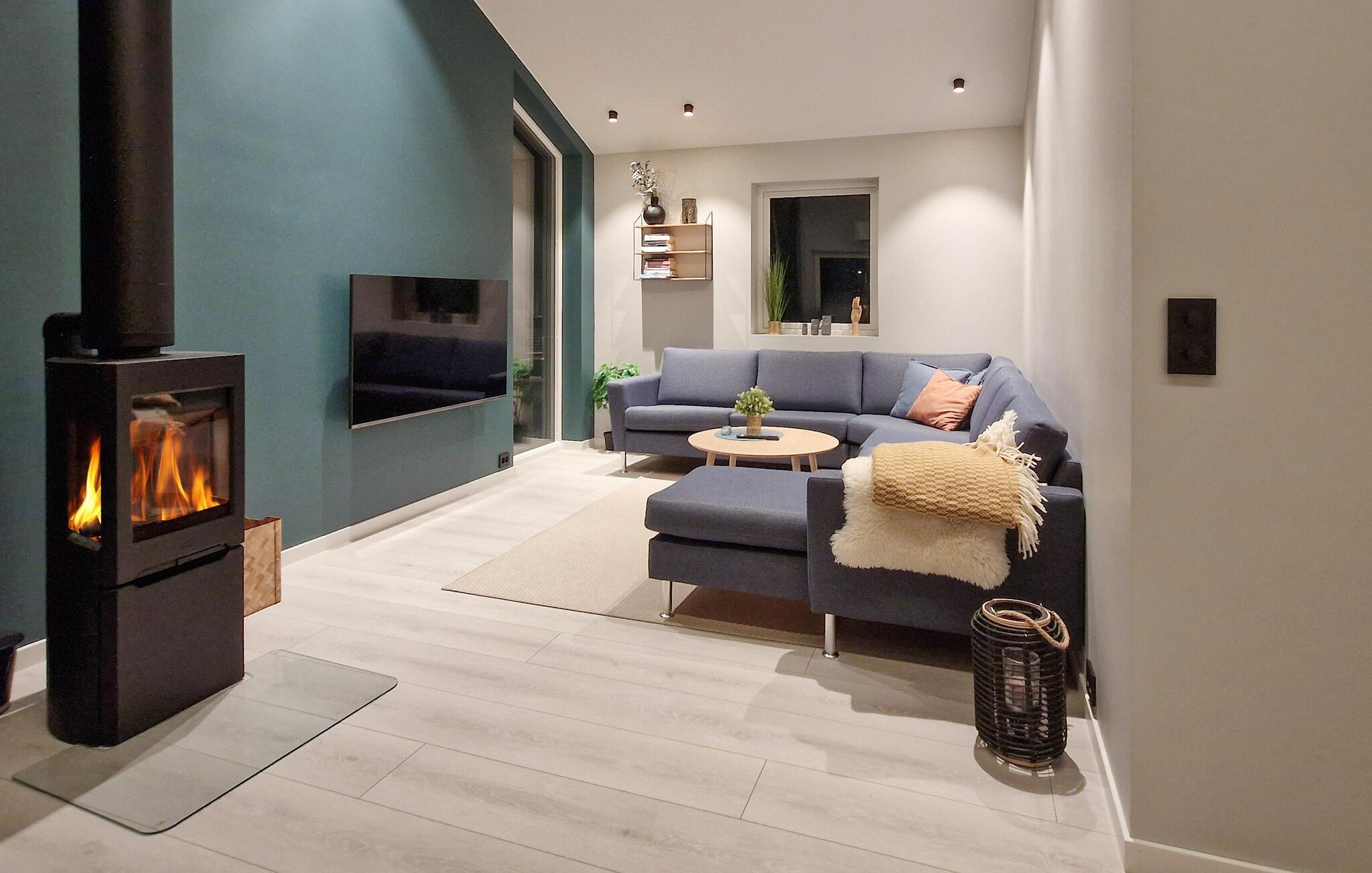 Glæd jer til hyggelige madlavningsaftener i designerkøkkenet og harmoniske måltider ved det stilfulde spisebord. Slap af på det hyggelige sofaområde ved den knitrende ild eller nyd en filmaften på det store fjernsyn.