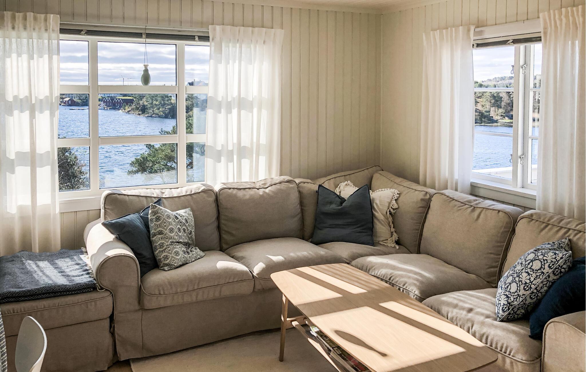 Dette lyse og hyggelige tilflugtssted byder jer velkommen ved bredden af ??den maleriske Ytre Kilen og forkæler jer med en behagelig boligatmosfære og en fortryllende udsigt over vandet. Tænd pejsen og glæd jer til hyggelige måltider og hyggelige spilleaftener i den hyggelige stue. Hyg jer i den behagelige sofa til en filmaften eller fordyb jer i en god bog, som I ikke har tid til i hverdagen.
