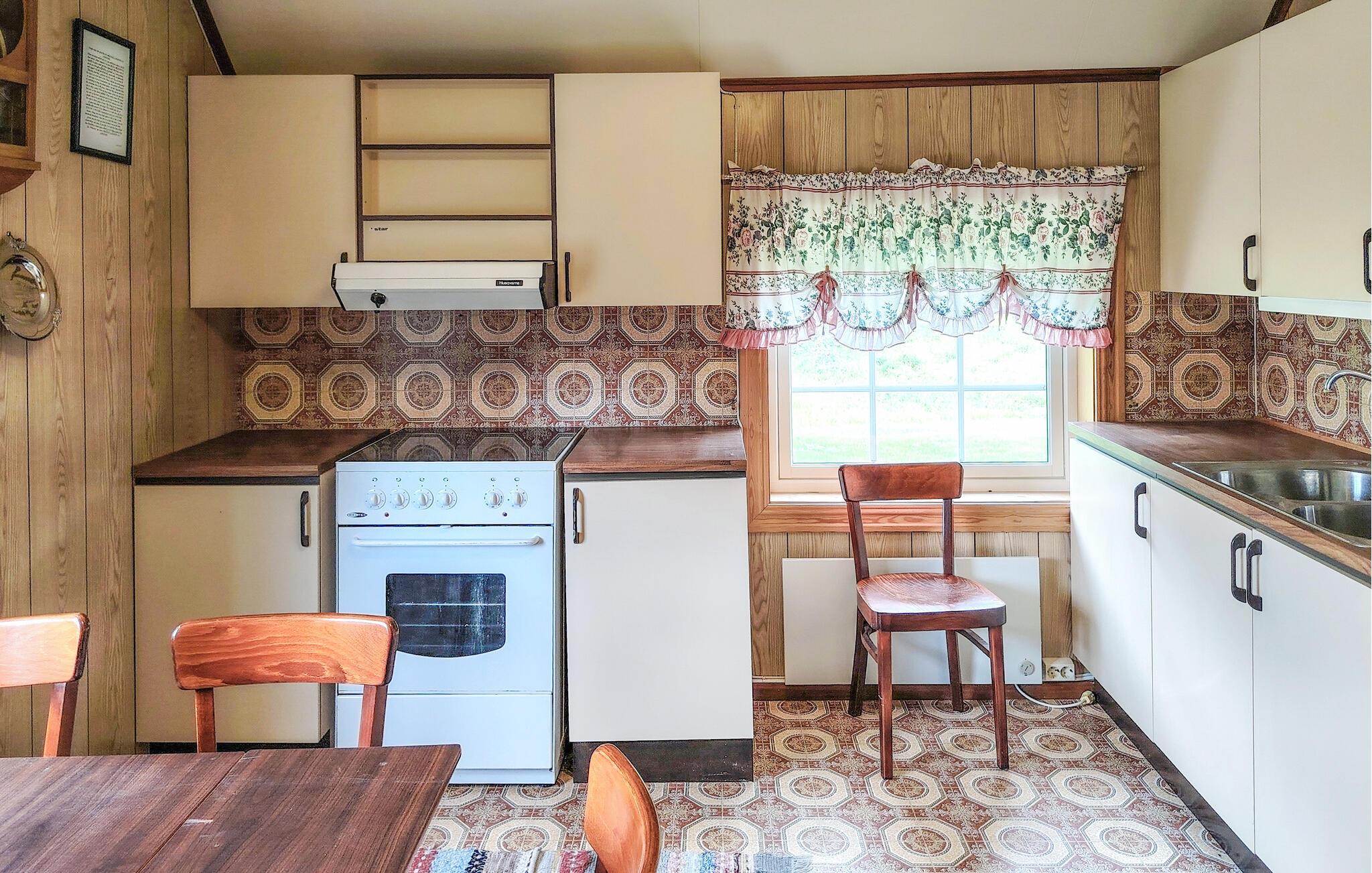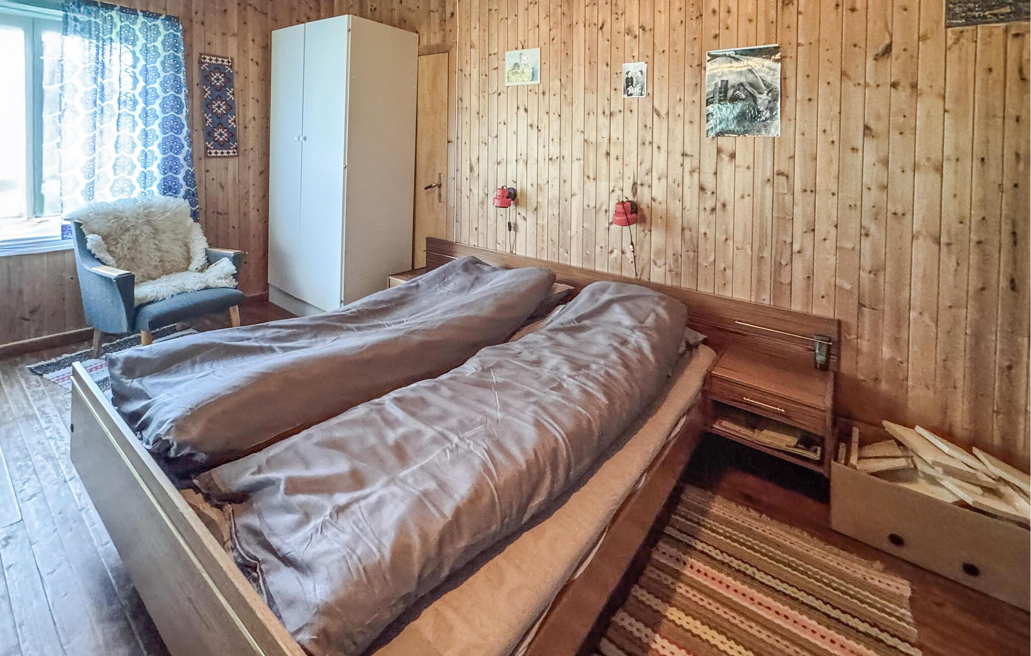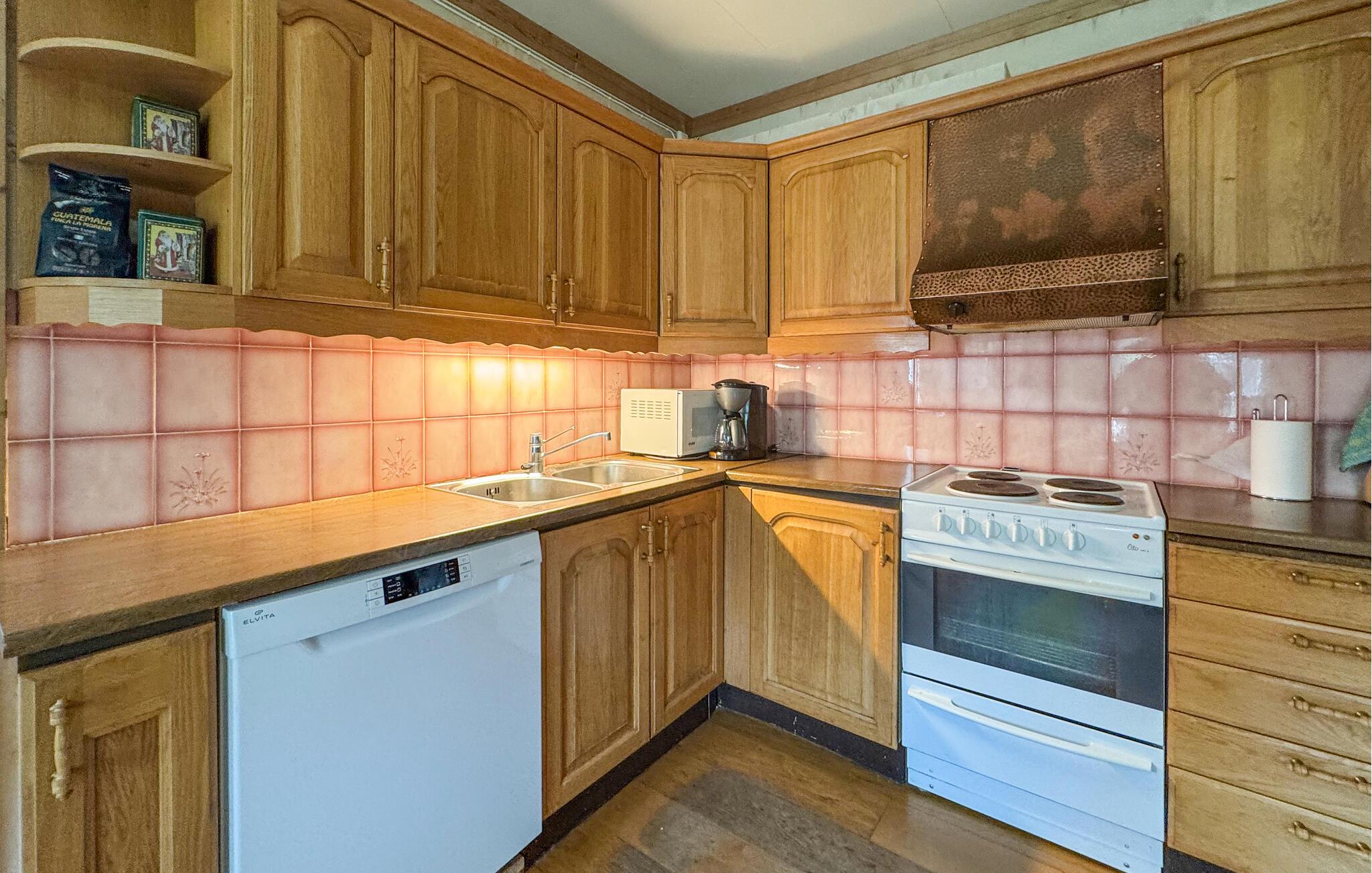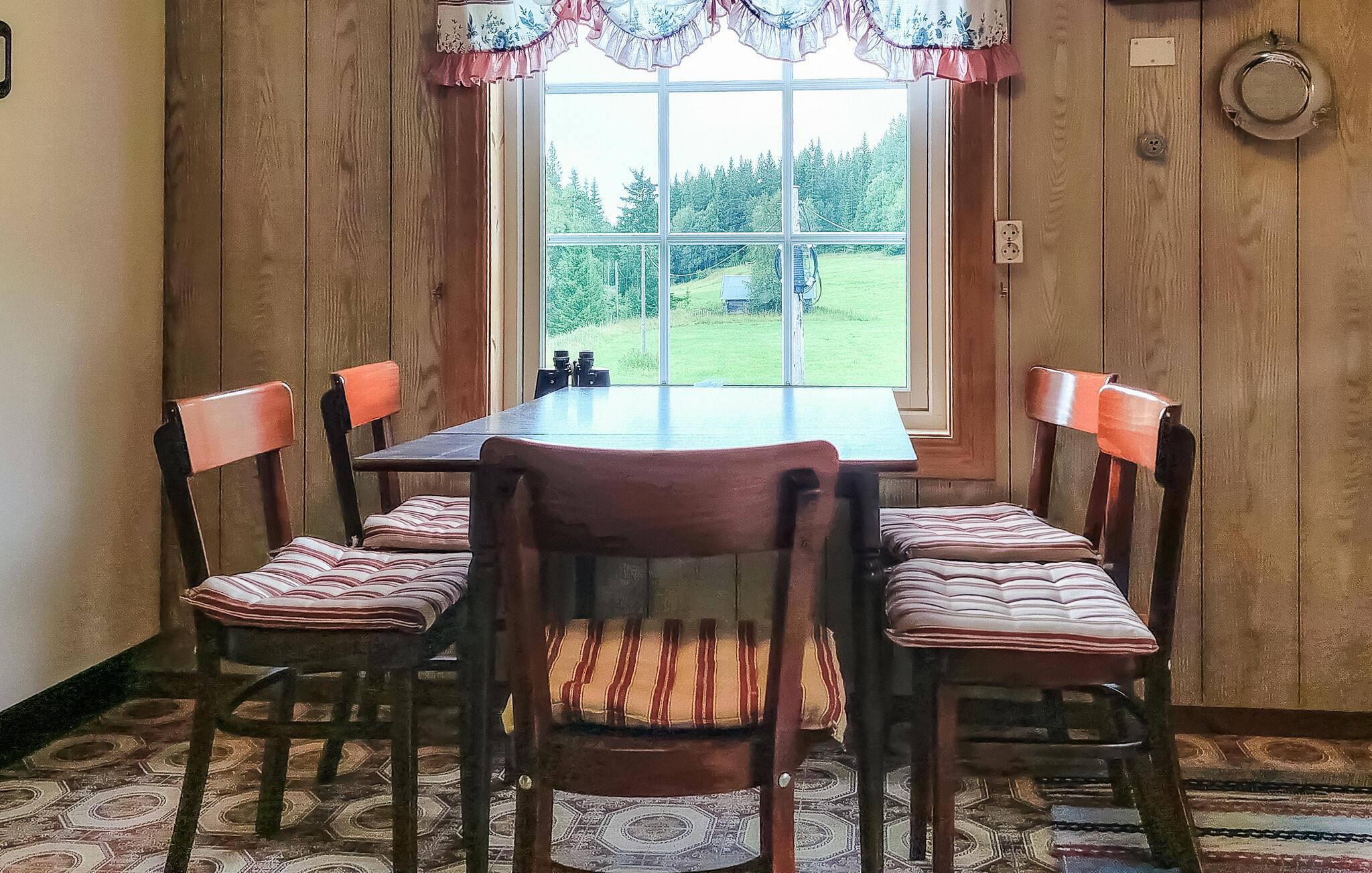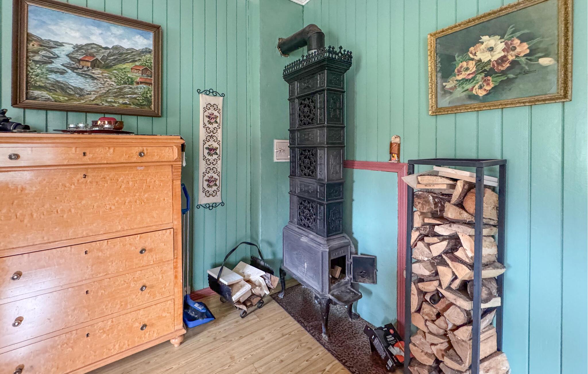Glæd jer til afslappede dage i dette rummelige hus, der giver jer en hyggelig ramme for en afslappende pause. Træbeklædte vægge i forskellige nuancer, komfortable sofaer, rustikke møbler og brændeovne skaber en behagelig atmosfære, hvor I straks føler jer hjemme. Start dagen med en duftende kop kaffe, lyt til jeres yndlingsmusik, eller tryl i fællesskab lækre retter frem til hele familien.