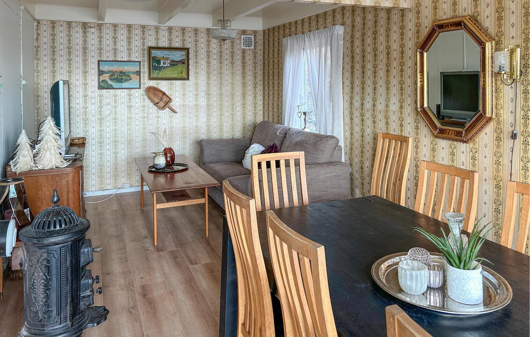 Dette charmerende feriehus på spidsen af ??Kvalsvik på øen Nerlandsøya lægger op til et afslappende ophold midt i naturen. Nyd den autentiske stemning og den hyggelige indretning, der giver jer en følelse af hjem. Sæt jer på de stilfulde siddepladser ved de store vinduer og nyd den smukke udsigt, mens I drikker te.