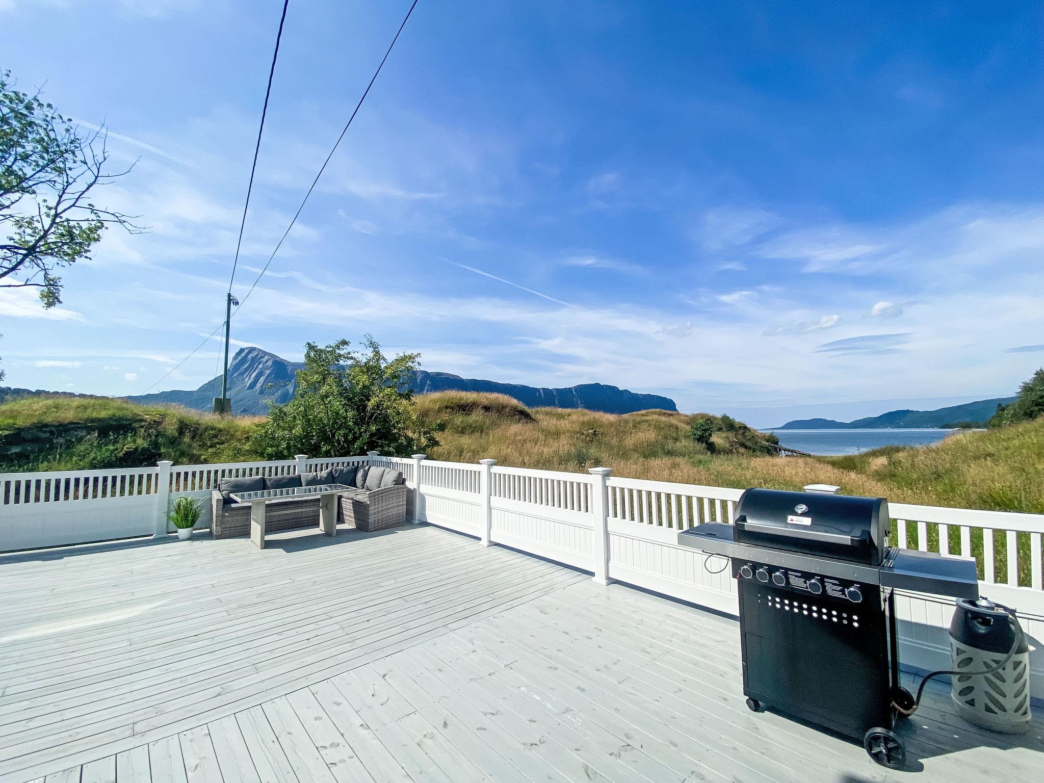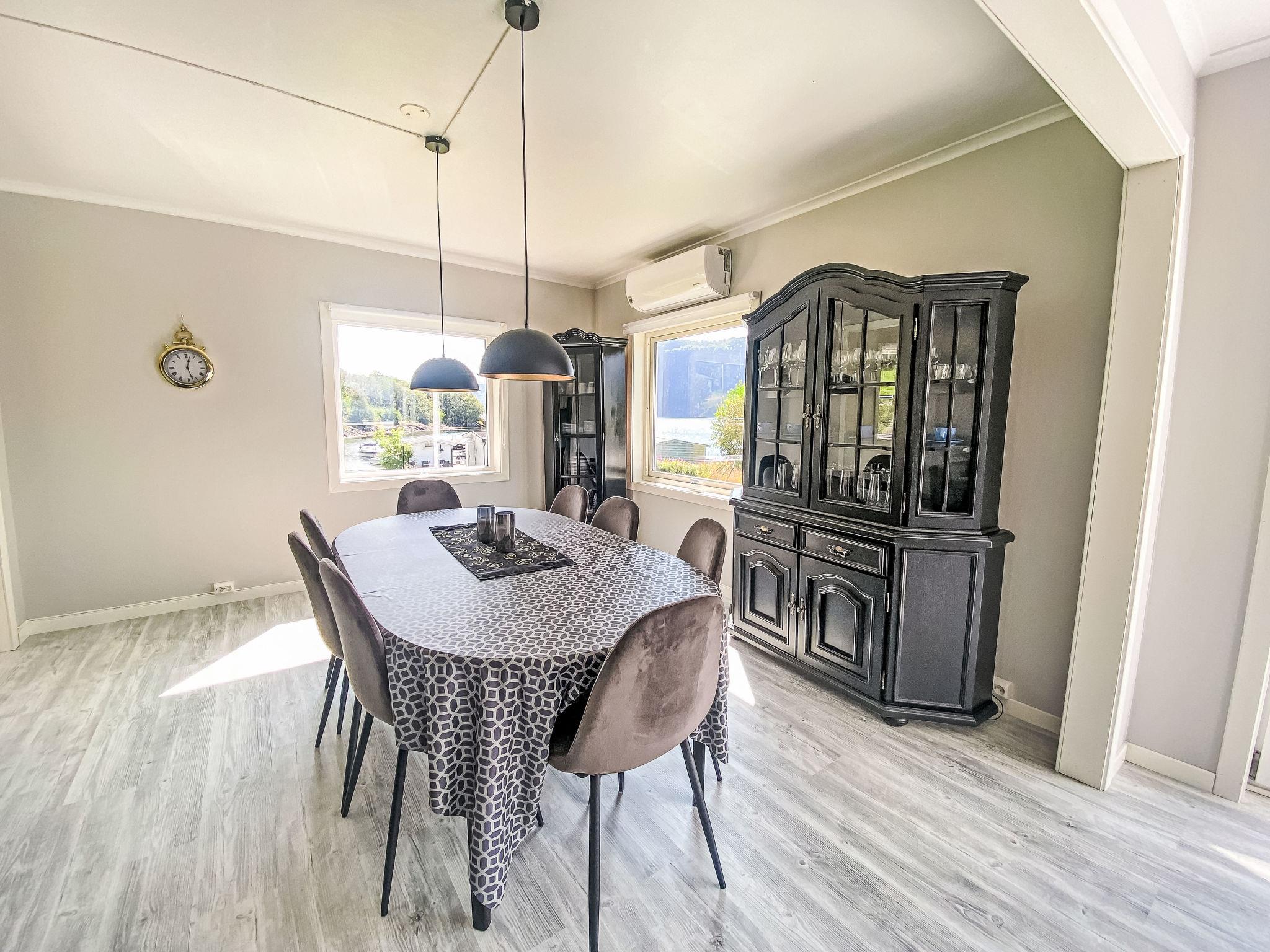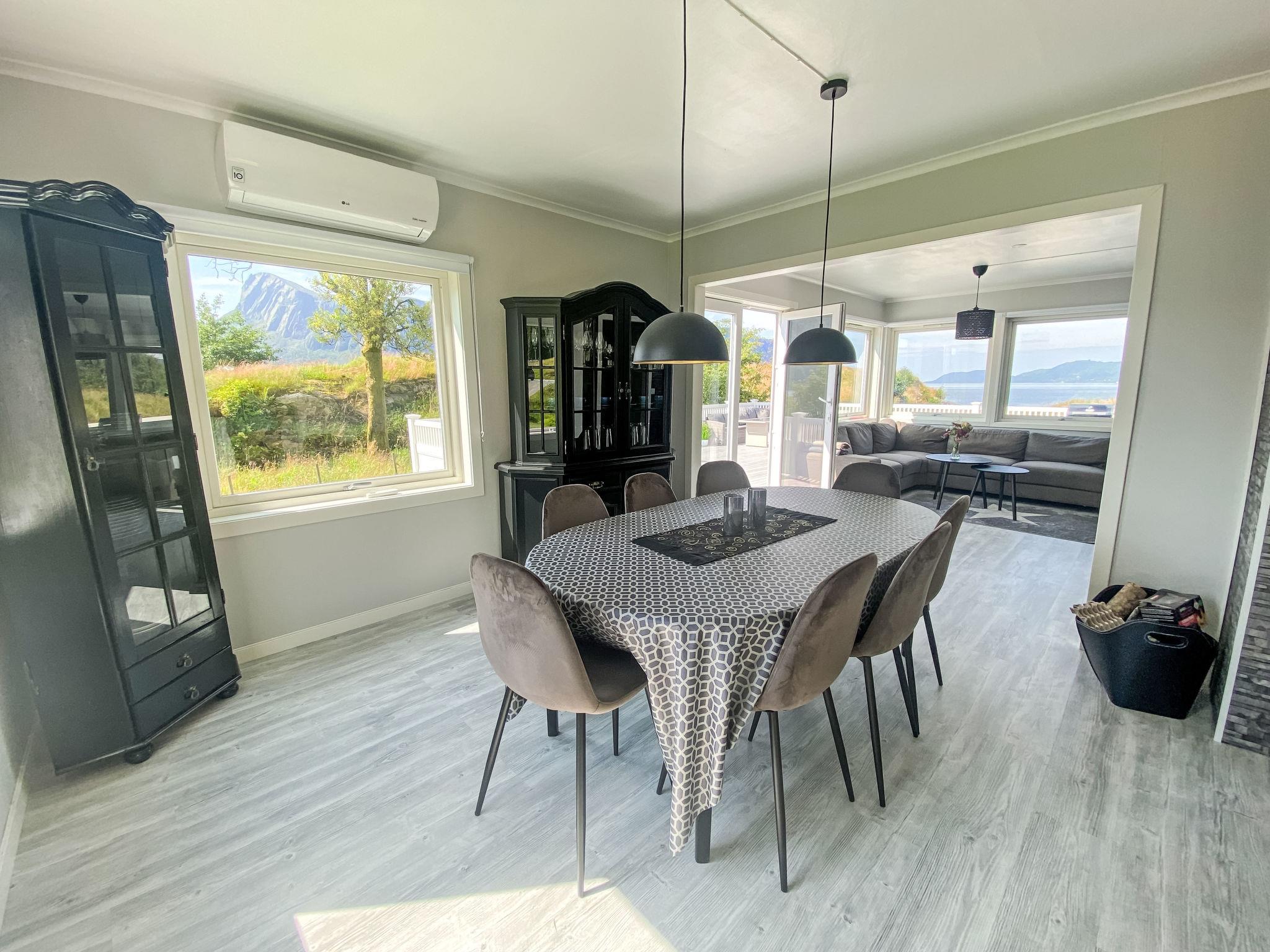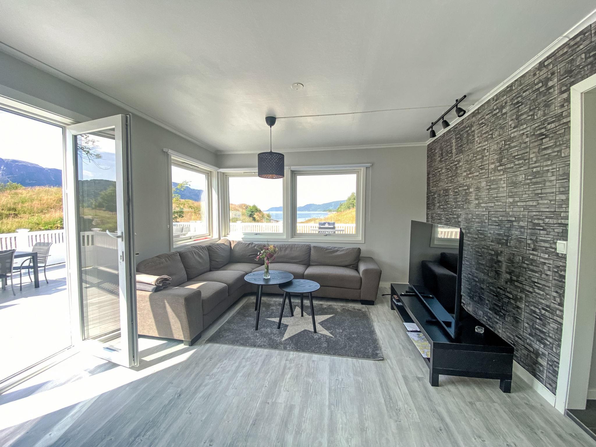 "Sjøtun", 5-room house 116 m2 on 2 levels. Bright, comfortable and beautiful furnishings: living/dining room with Scandinavian wood stove, dining table and TV. Exit to the terrace. Open kitchen (oven, dishwasher, 4 ceramic glass hob hotplates, microwave, freezer, electric coffee machine). Exit to the terrace. Shower/WC. Forced-air heating, underfloor heating. Upper floor: (steep stair), 1 open room with 1 double bed (180 cm, length 200 cm). 2 rooms, each room with 1 bed (90 cm, length 200 cm). 1 room with 2 beds (90 cm, length 200 cm). Sleeping alcove with 1 sleeping facility. Sep. WC. Large terrace 100 m2. Terrace furniture, barbecue. Beautiful panoramic view of the sea, the mountains and fjord. Facilities: washing machine, baby cot. Internet (WiFi, free). Please note: non-smoking house. TV via WIFI. Freeze approx. 300 l. Instead of an enclosed bedroom, some sleeping areas are located in an open-plan area (gallery, alcove, etc.). 924531169