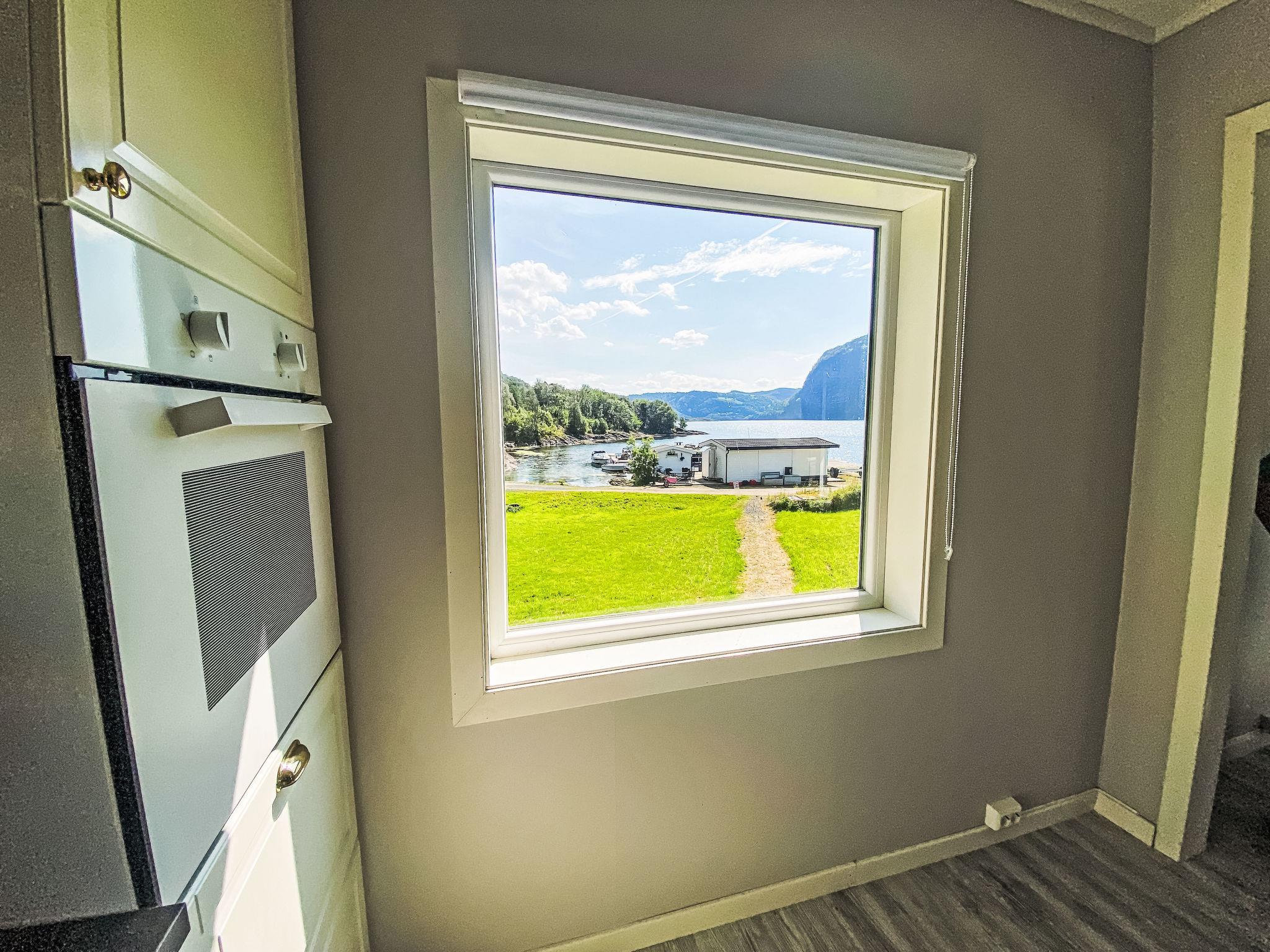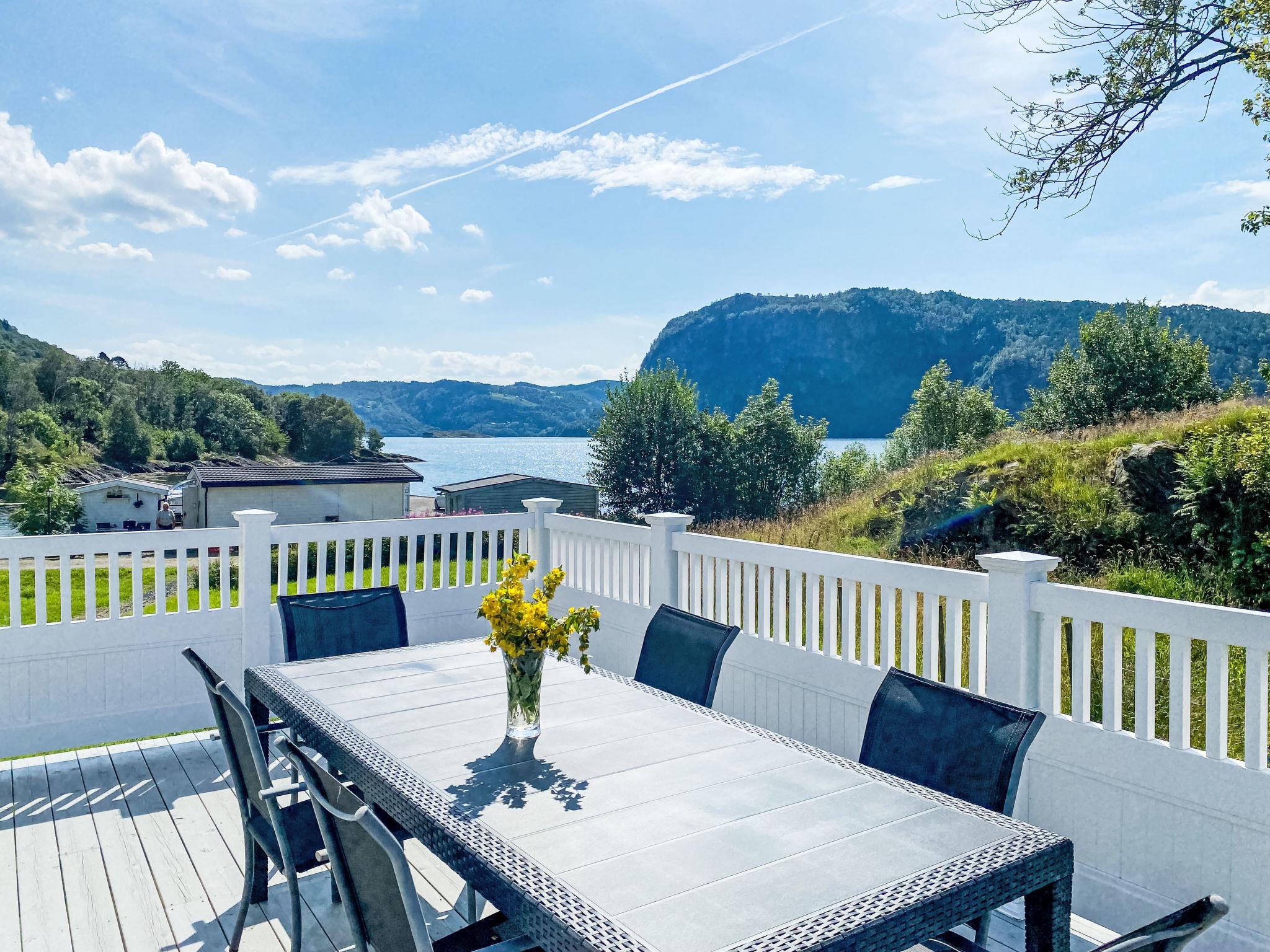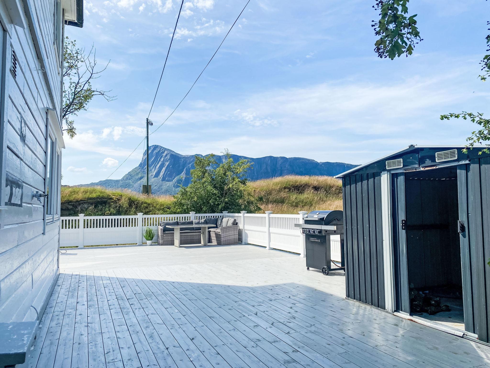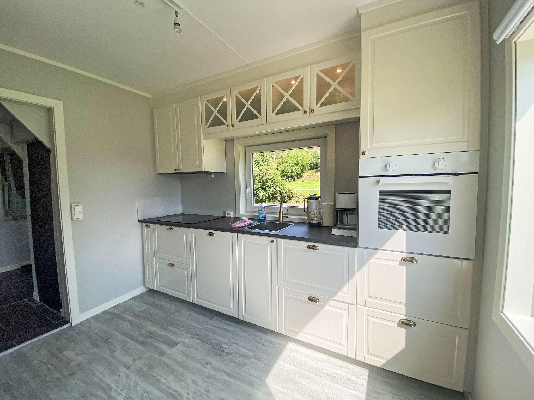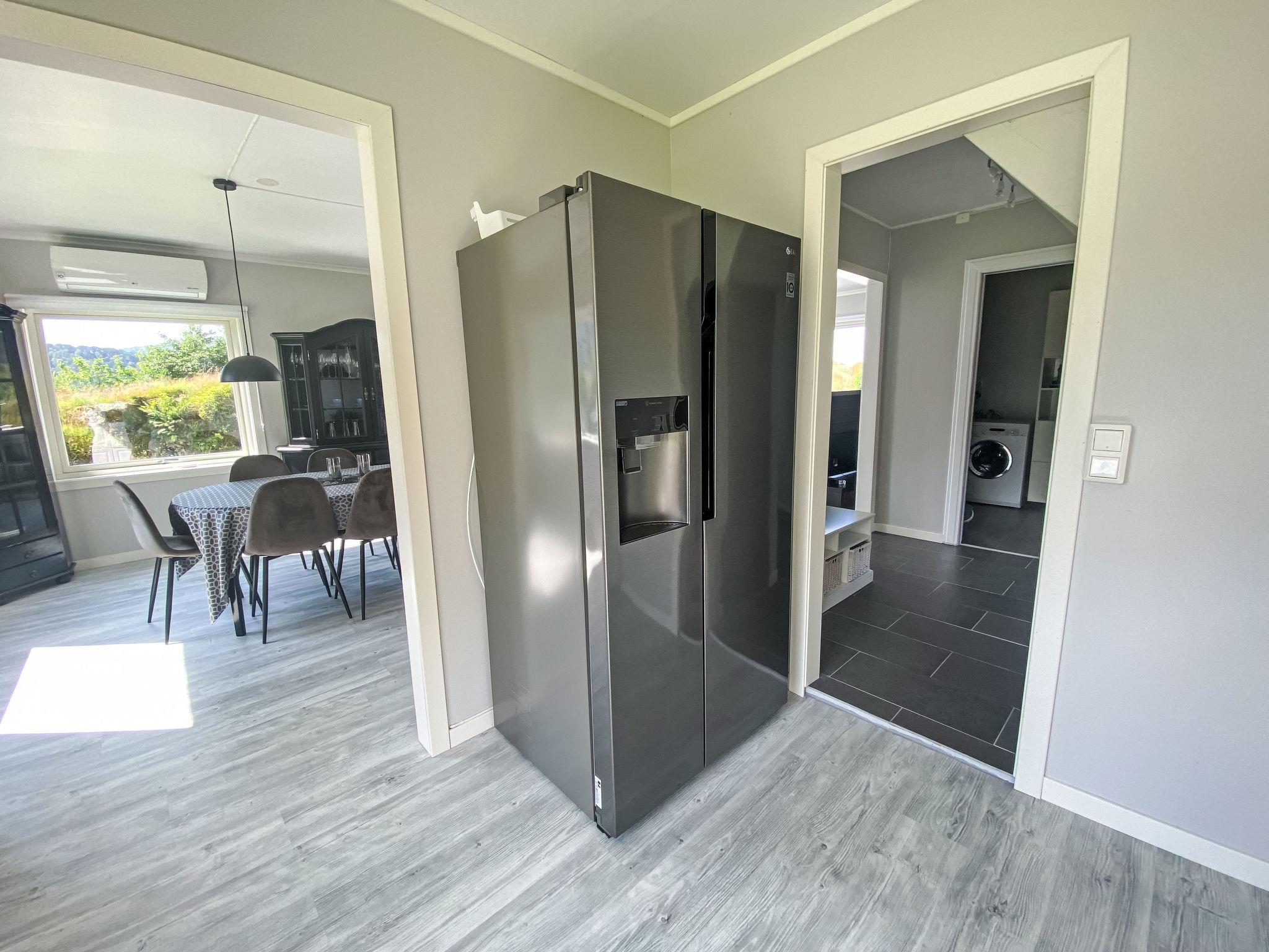 "Sjøtun", 5-room house 116 m2 on 2 levels. Bright, comfortable and beautiful furnishings: living/dining room with Scandinavian wood stove, dining table and TV. Exit to the terrace. Open kitchen (oven, dishwasher, 4 ceramic glass hob hotplates, microwave, freezer, electric coffee machine). Exit to the terrace. Shower/WC. Forced-air heating, underfloor heating. Upper floor: (steep stair), 1 open room with 1 double bed (180 cm, length 200 cm). 2 rooms, each room with 1 bed (90 cm, length 200 cm). 1 room with 2 beds (90 cm, length 200 cm). Sleeping alcove with 1 sleeping facility. Sep. WC. Large terrace 100 m2. Terrace furniture, barbecue. Beautiful panoramic view of the sea, the mountains and fjord. Facilities: washing machine, baby cot. Internet (WiFi, free). Please note: non-smoking house. TV via WIFI. Freeze approx. 300 l. Instead of an enclosed bedroom, some sleeping areas are located in an open-plan area (gallery, alcove, etc.). 924531169