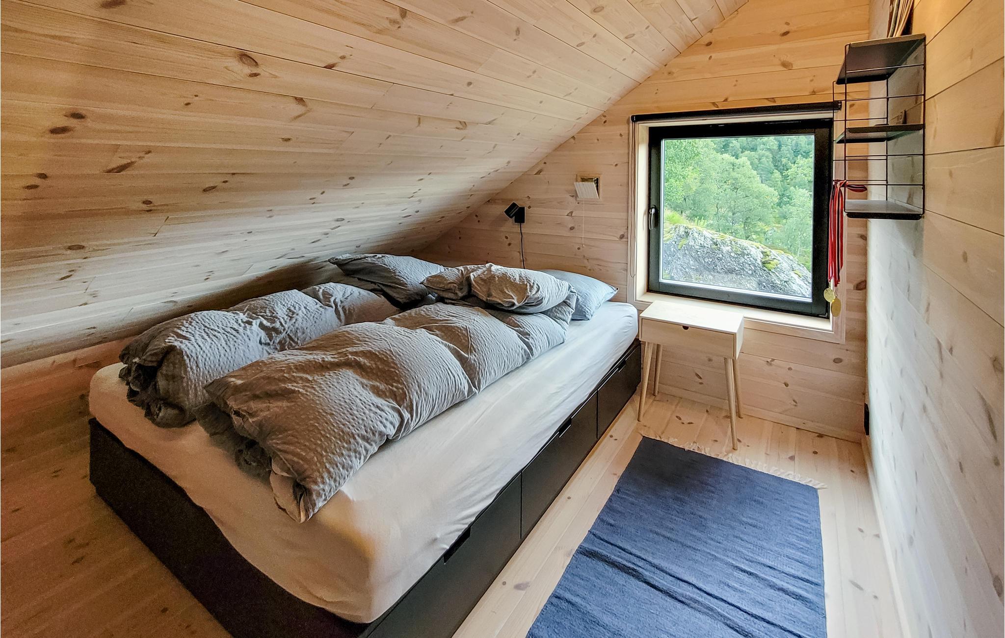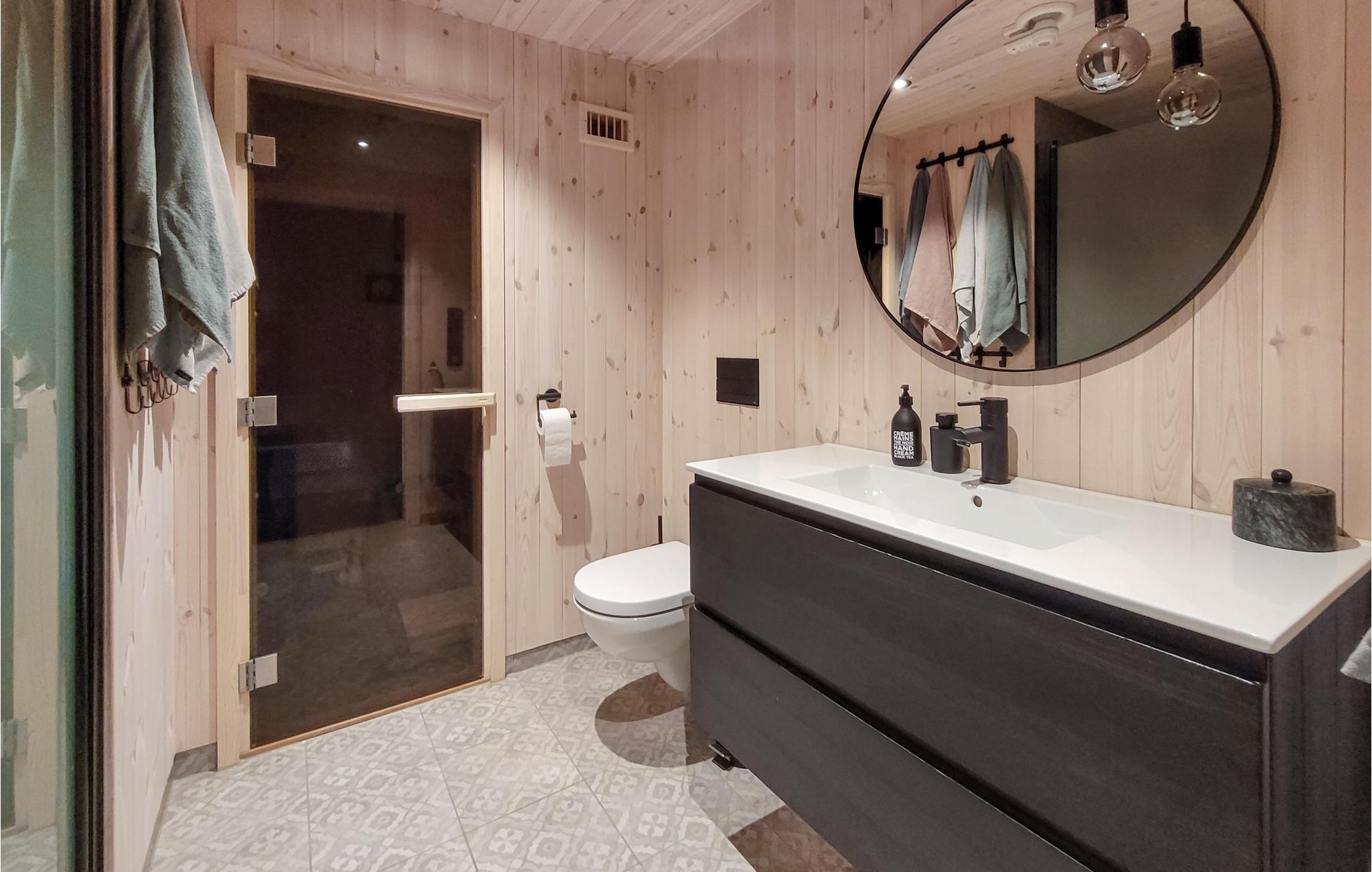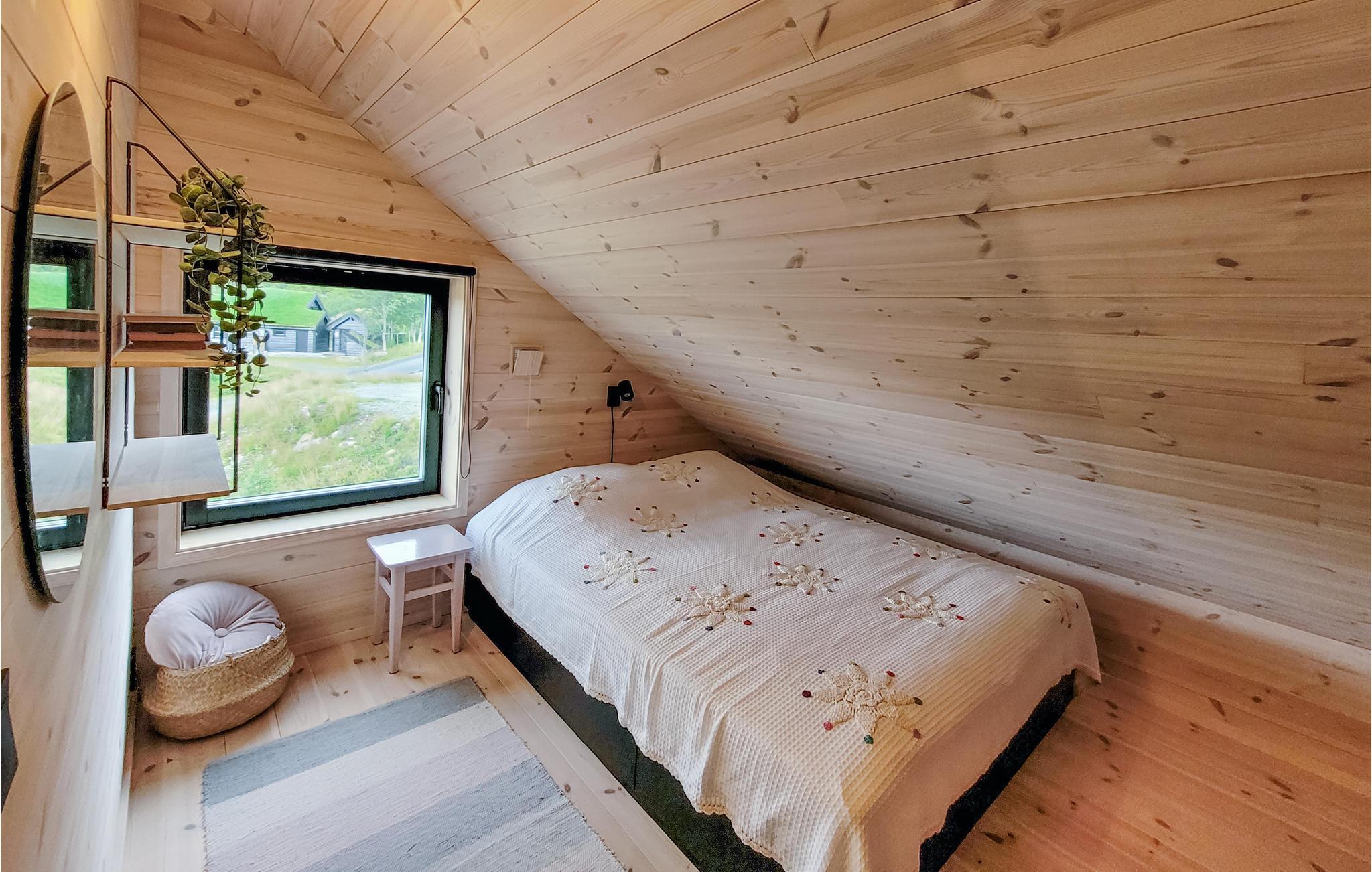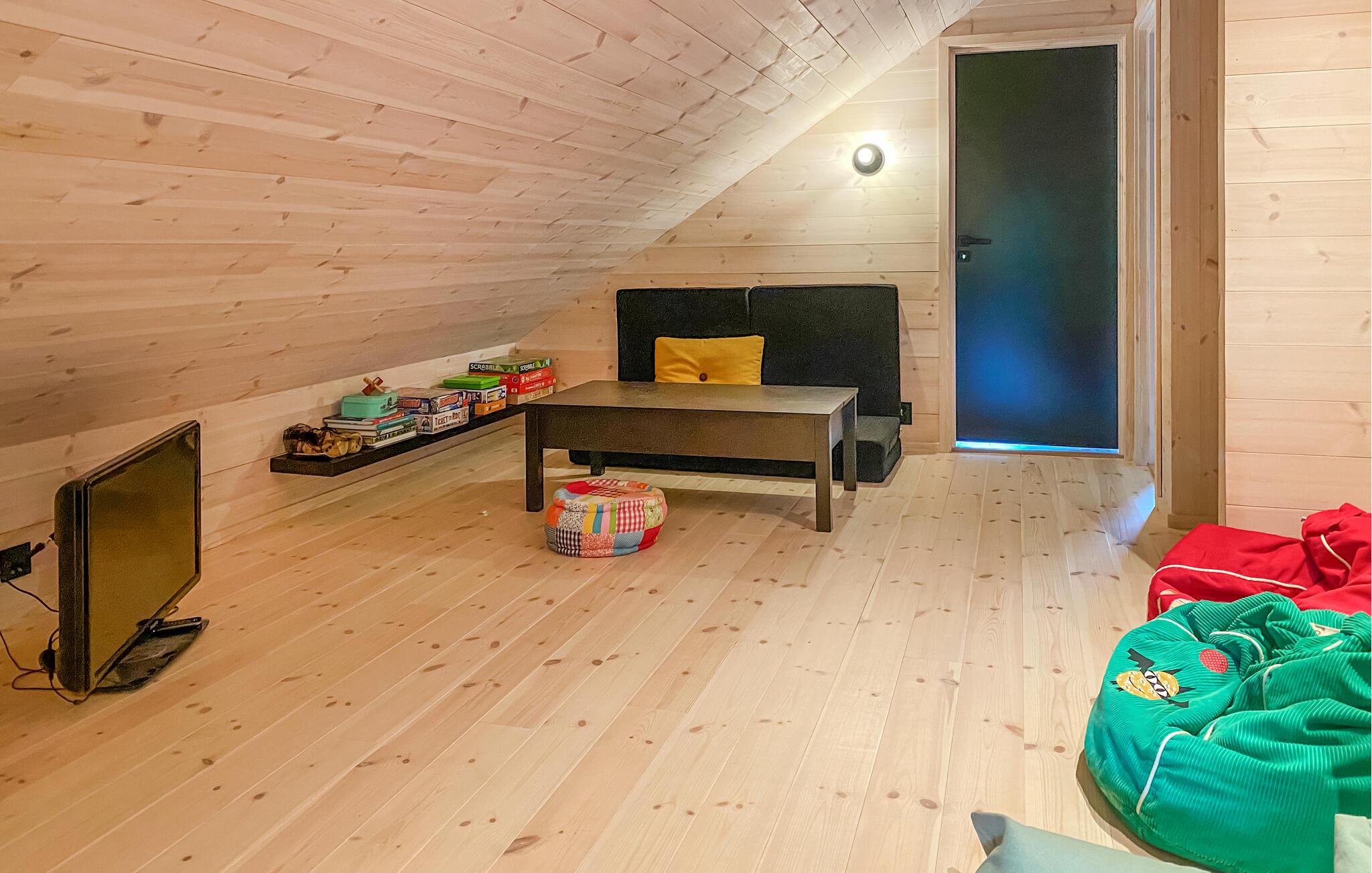 Moderne, rustik og minimalistisk. Det er tre ord, der bedst beskriver denne dejlige feriehytte. Det første, I vil bemærke, er panoramavinduerne og den atypiske indretning, som giver huset sin helt egen unikke charme. Her kan I forberede en lækker morgenmad sammen og nyde den smukke udsigt over området med morgenkaffen i hånden. De store glaspartier gør, at I nærmest føler jer udenfor, når I stidder i stuen. Om aftenen kan I finde jer behageligt til rette med gode brætspil, mens brændeovnen giver jer både hygge og varme i de kolde måneder. I sommermånederne kan I nyde jeres måltider på terrassen med bålplads. I kan bade i en dam tæt på hytten. Om vinteren kan I se frem til langrendsløjperne, der starter lige ved huset.