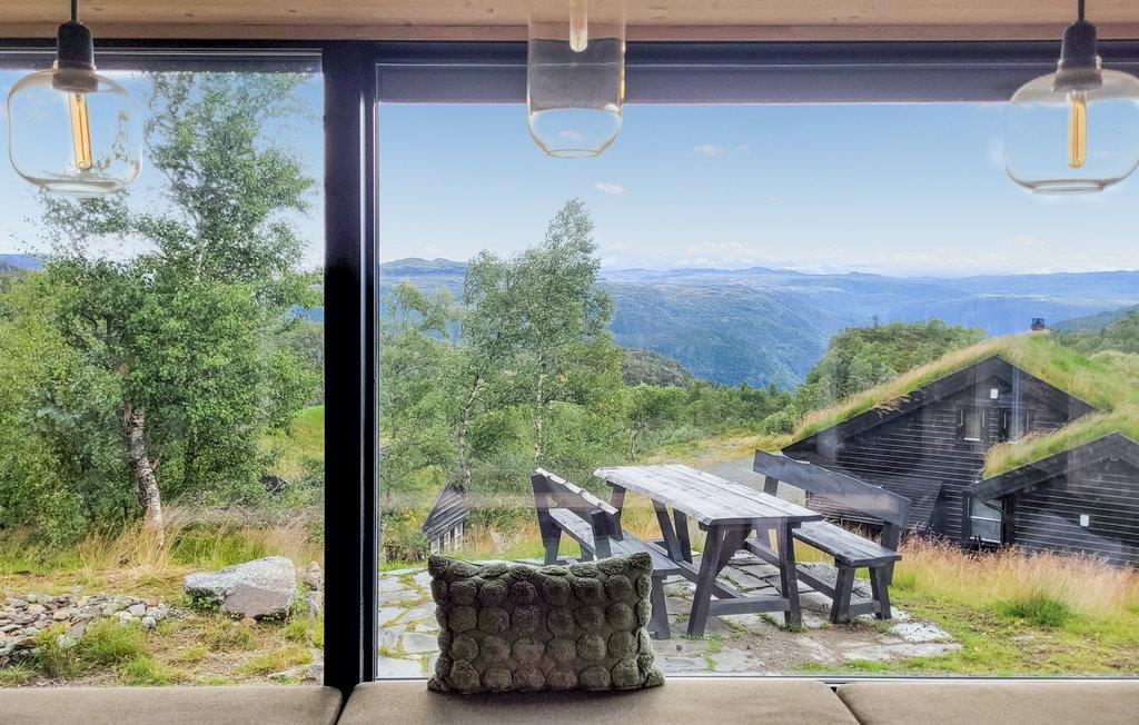 Lad jer overraske af denne moderne hytte med bjergpanorama.