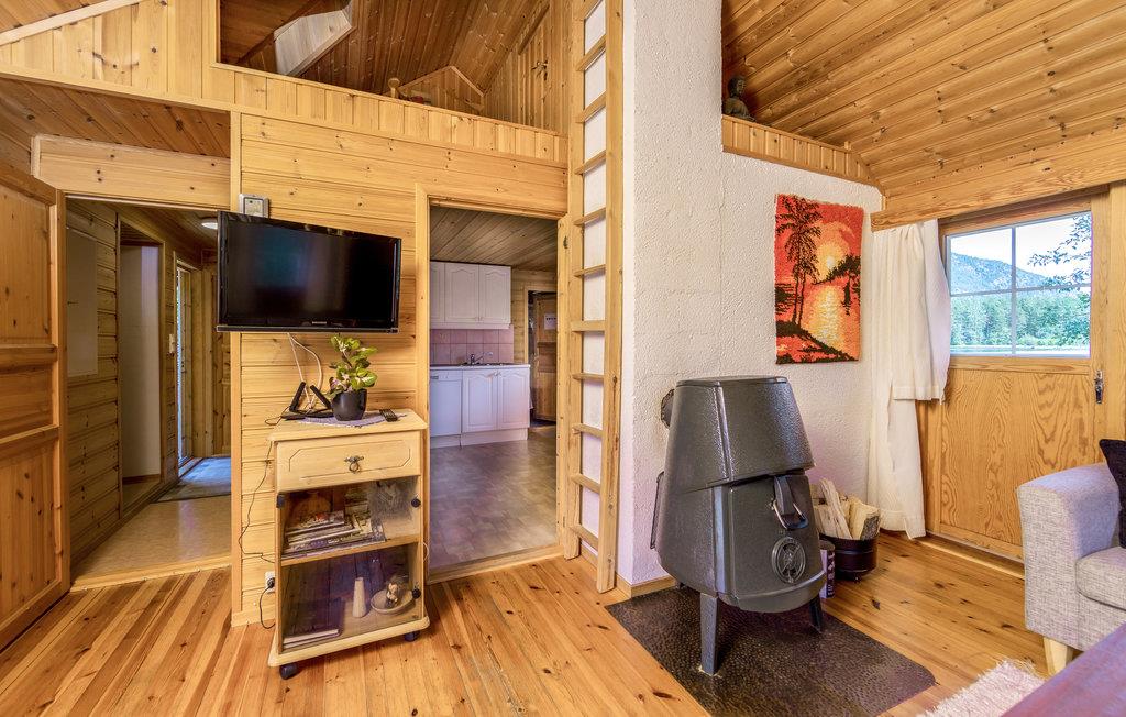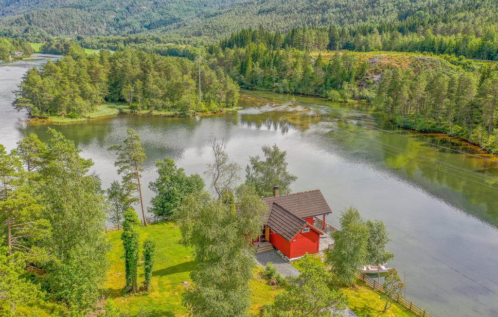 En rigtig fin feriehytte på en ugenert skovgrund ved Gloppeelven. Med hyttens beliggenhed praktisk talt ude i elven, er alt perfekt for lystfiskere, der kan kaste snøren ud fra terrassen og fange store ørreder.