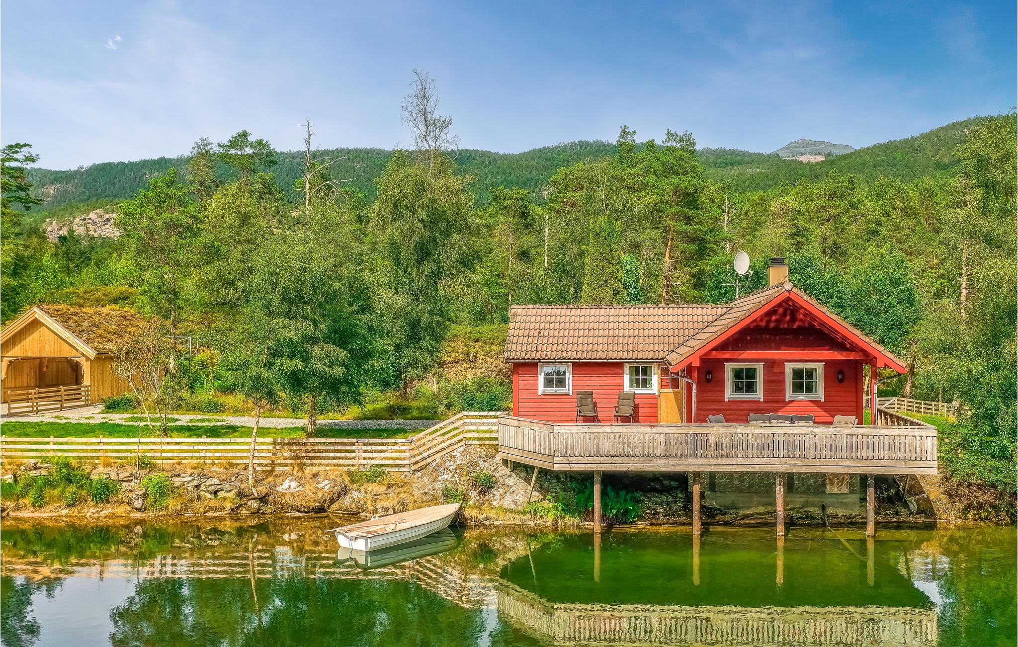 Naturen rundt om hytten byder på spændende skovture med børnene, på jakt efter kogler og kviste, så I kan lave de fineste figurer. Om aftenen kan I slappe af og nyde nystegt fisk på den store terrasse, mens I planlægger morgendagens aktiviteter. Måske vil I en tur til gletsjeren Briksdalsbreen eller på vandretur i Jostedalsbreen Nationalpark?