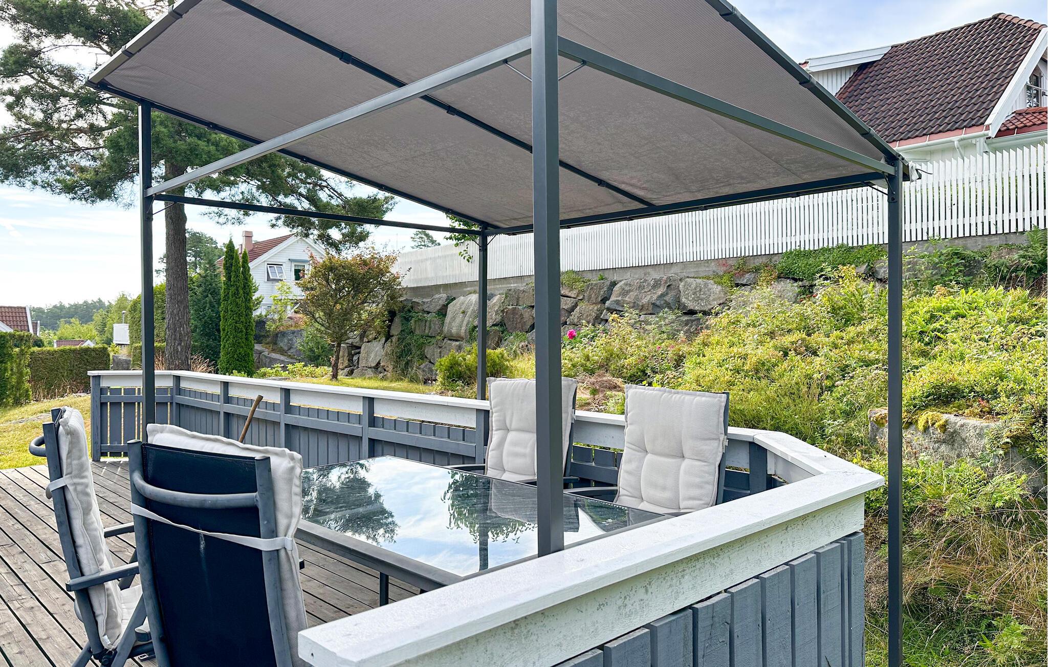 Dette charmerende feriehus, lige syd for Sandefjord, tilbyder jer en ideel blanding af komfort, natur og afslapning. Uanset om I planlægger en badeferie, udforsker kystlandskabet eller bare vil slappe af, er I kommet til det rette sted. Husets indretning er hyggeligt og stilfuldt indrettet. Den lyse opholdsstue lægger op til gode hyggestunder med komfortable sofaer, et stort fjernsyn og kærlige detaljer. Nyd den varme atmosfære ved brændeovnen i spisepladsen, og tilbring hyggelige aftener sammen med familien eller venner. Det veludstyrede køkken med en generøs arbejdsflade byder på alt, hvad I behøver for at tilberede lækre måltider. I den rummelige spisestue er der plads til fælles måltider.