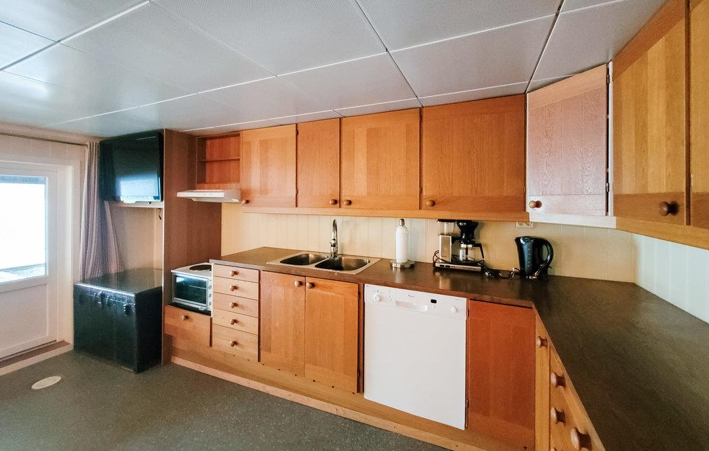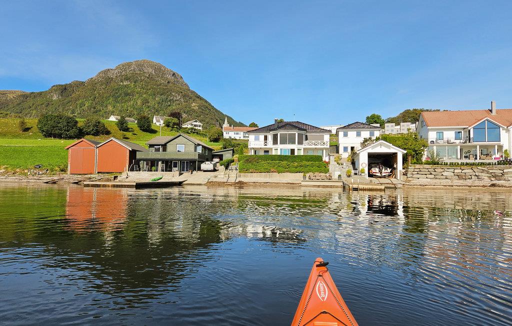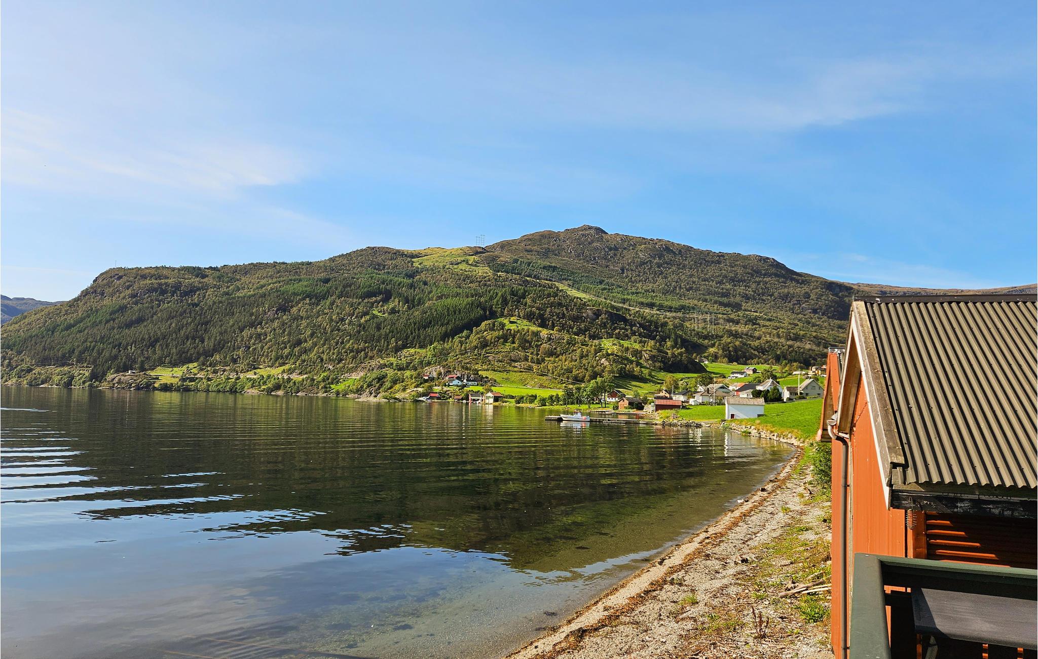 Glæd jer til denne praktiske ferielejlighed med betagende udsigt direkte over fjorden. Bliv budt velkommen af de varme træmøbler i opholdsstuen. Slap af i den rummelige sofa eller åbn glasdørene for at nyde fjordudsigten direkte fra jeres siddeområde. Det åbne tekøkken gør det nemt at tilberede måltider. Sid udenfor ved Vindafjordens bred og se de blide bølger. Omgivelserne med bådhuse, små moler og en åben kystlinje skaber en rolig atmosfære. Tag en kajaktur eller nyd en picnic ved vandet. De omkringliggende bjerge indrammer ejendommen og danner en imponerende kulisse for jeres ophold. Besøg den lille landsbykirke Sandeid, eller kør til udsigtspunktet Vikedalsneset, og beundr fjordlandskabet. Vandr op ad Ørnafjellet, eller udforsk vandfaldene i dalen nær Vikedal. Fortsæt til Sauda for at opleve den berømte Ryfylkerute, eller besøg Sauda Savværksmuseum. Udnyt de store vandveje til fiskeri, eller udforsk regionen på en bådtur.