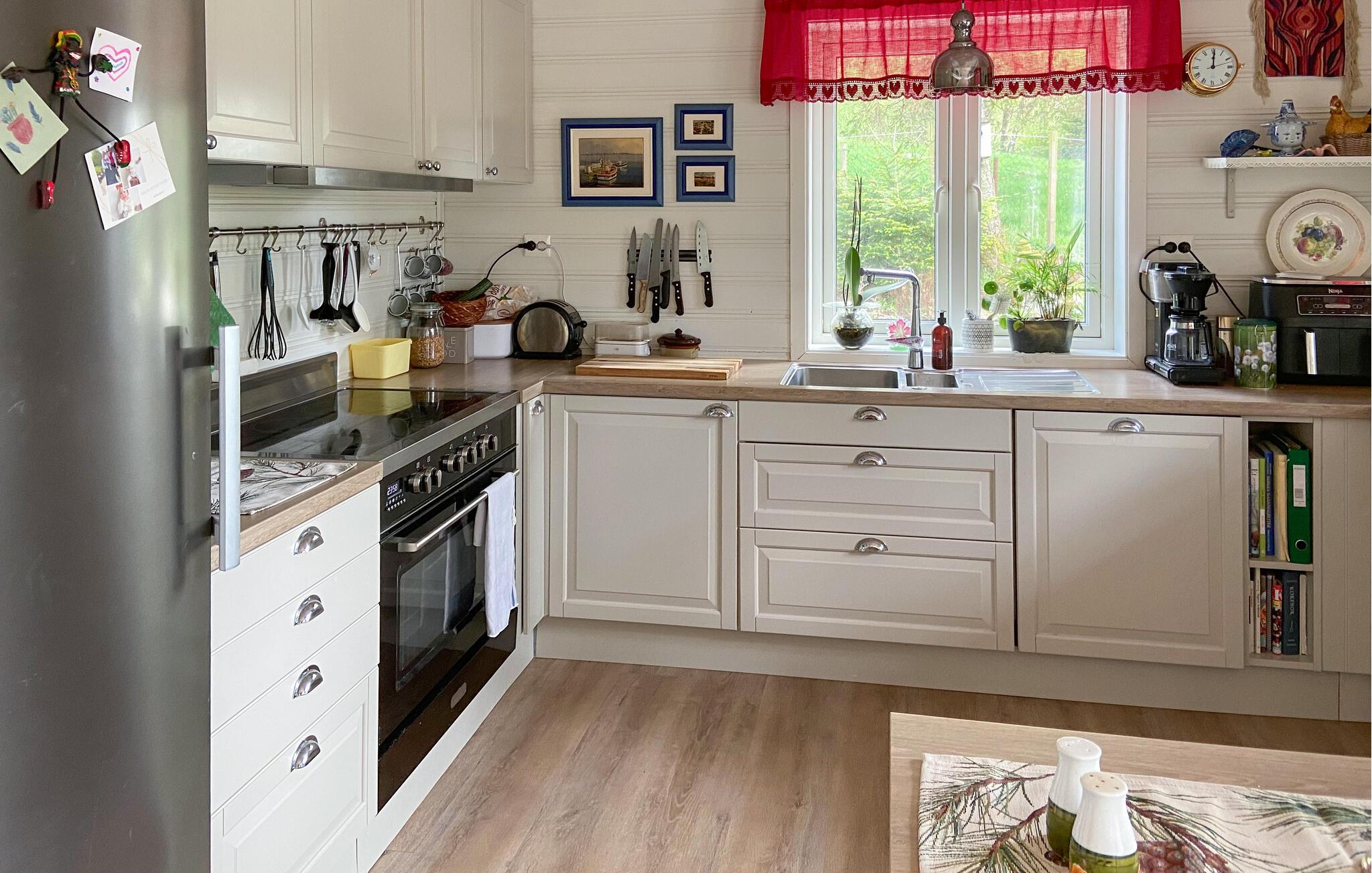 Velkommen til dette hyggelige træhus, hvor I får en fremragende ramme om en ferie, hvor I kan lade hverdagen blive derhjemme, nyde naturen og komme helt ned i tempo. Huset er nydeligt indrettet over to etager med dejlige lysindfald og udsigt gennem gulv-til-loft-vinduerne og en brændeovn, der gør det ekstra hyggeligt, hvis vejret skulle bide lidt fra sig. Tilbered en lækker aftensmad i det veludstyrede køkken og flad ud i sofaerne og lænestolene om aftenen med brætspil eller en god film, mens I lægger planer for de kommende dage.