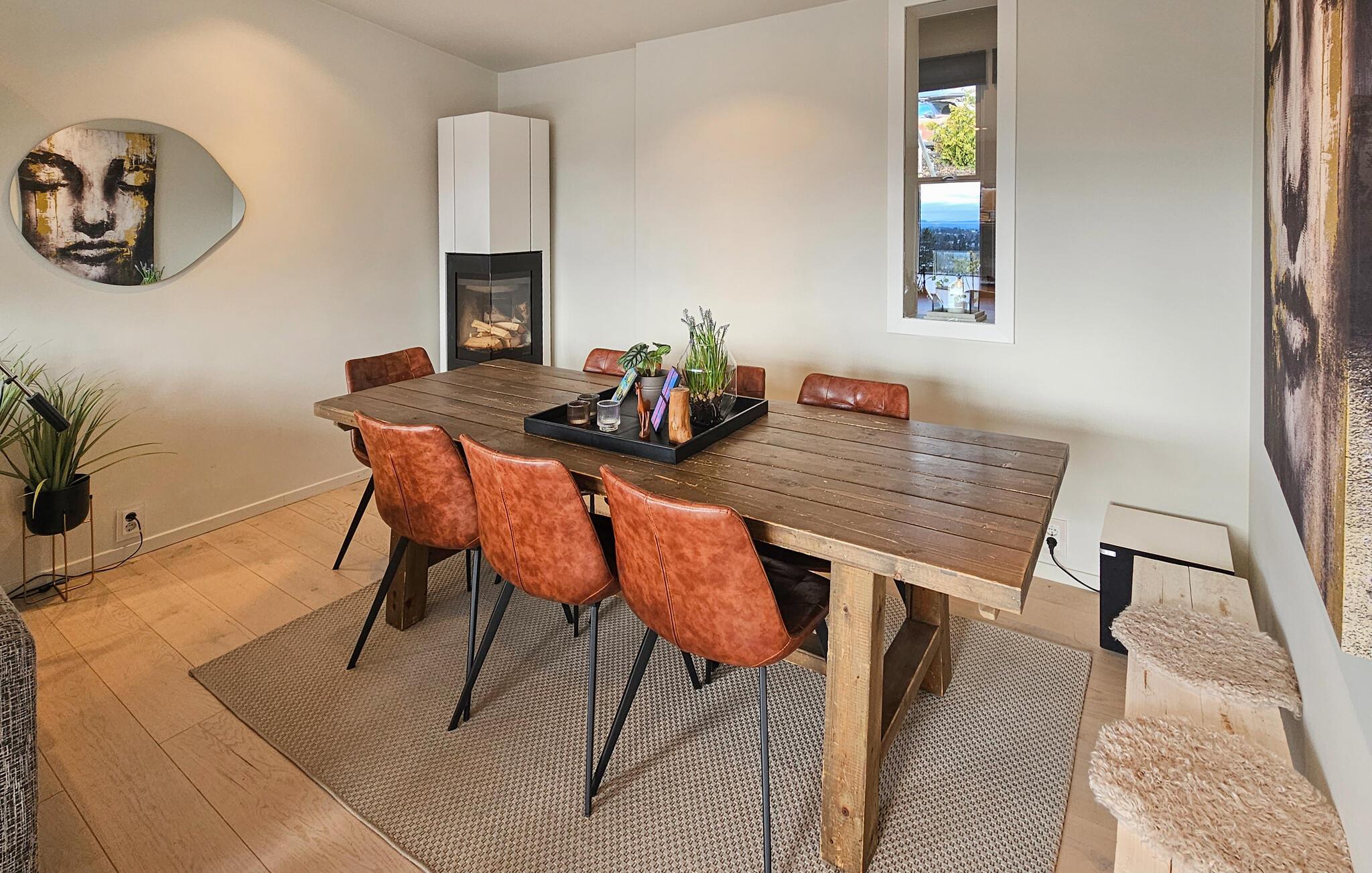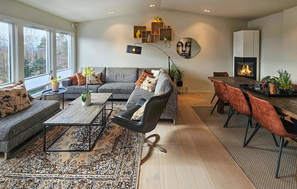 Huset ligger lidt uden for Sandvik og kun en kort køretur fra Oslo, så her får I en dejlig, fredelig oase til mange gode udflugter. Huset er yderst rummeligt og virkelig flot indrettet med masser af komfort, der gør det særdeles velegnet til en ferie med den større familie. Interiøret fremtræder virkelig lækkert med forskellige farveaccenter, komfortable møbler og moderne faciliteter med alt, I kunne drømme for at slappe af og bare sænke skuldrene. Lad amatørkokkene tage sig god til at kreere livretterne i det moderne køkken, mens andre dækker op til det store festmåltid ved spisebordet. Efter aftensmaden kan I trække over i sofaen og tænde op i pejsen, der giver varme og stemning til hyggelige aftener med brætspil, film og gode snacks. Skal I gøre det ekstra godt for jer selv, kan I sætte jer godt til rette i spabadet og nyde roen, mens I lægger planer for de kommende dage.